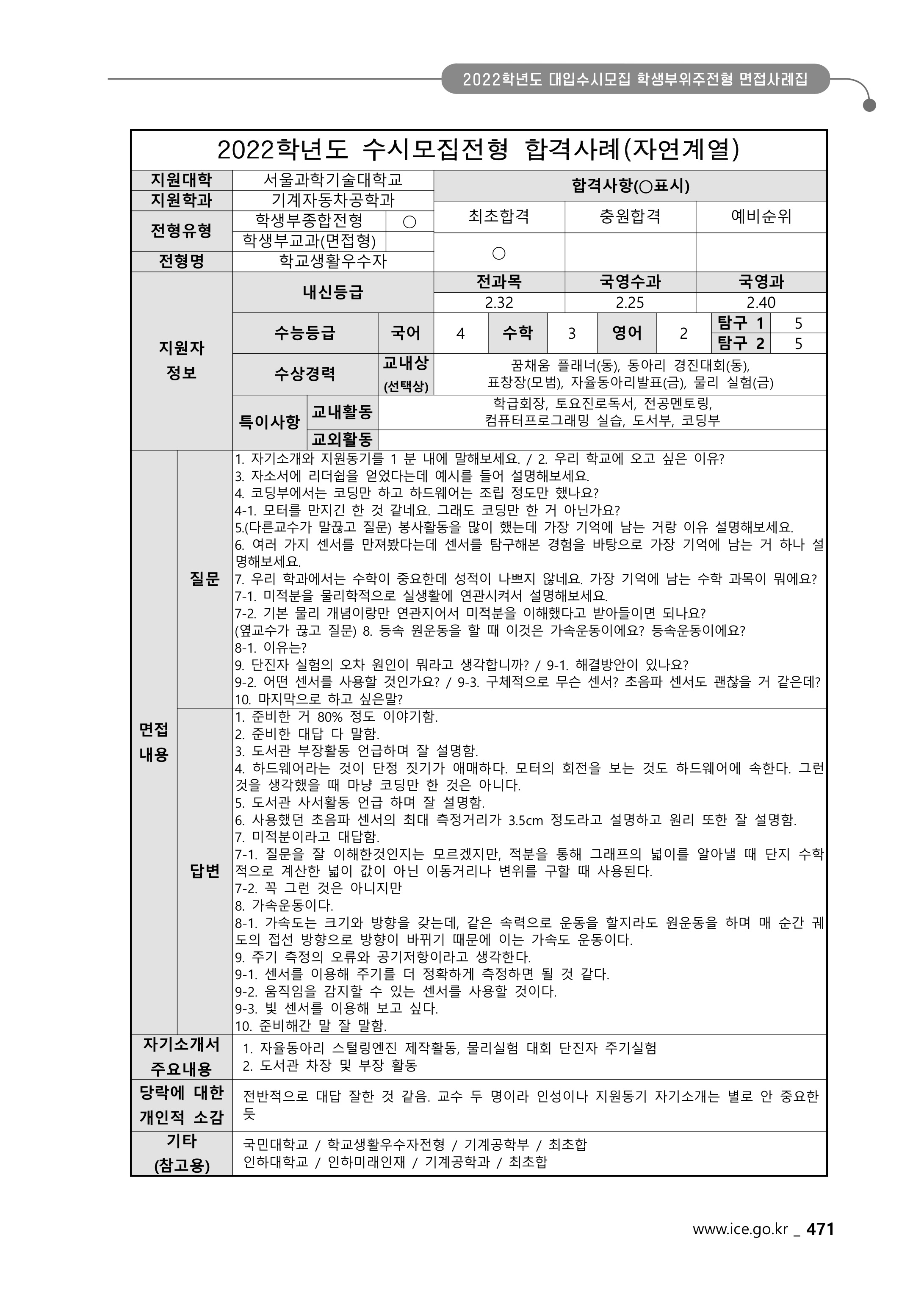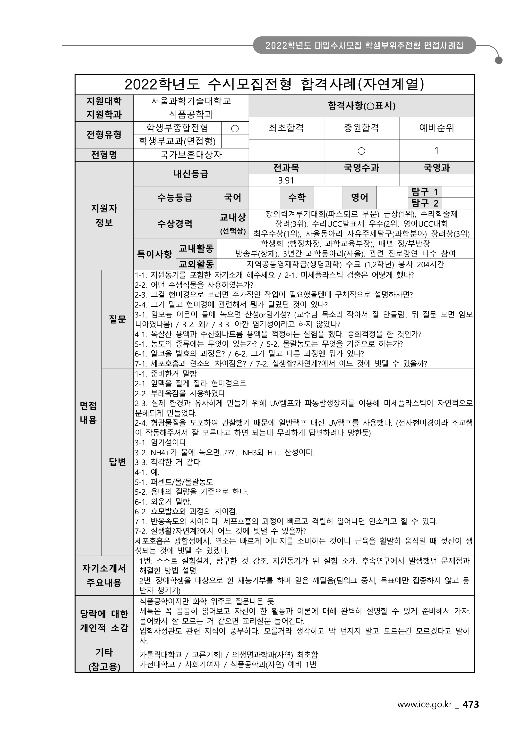 2022학년도 서울과학기술대학교 면접 질문입시 정보/면접 2022. 9. 29. 13:33