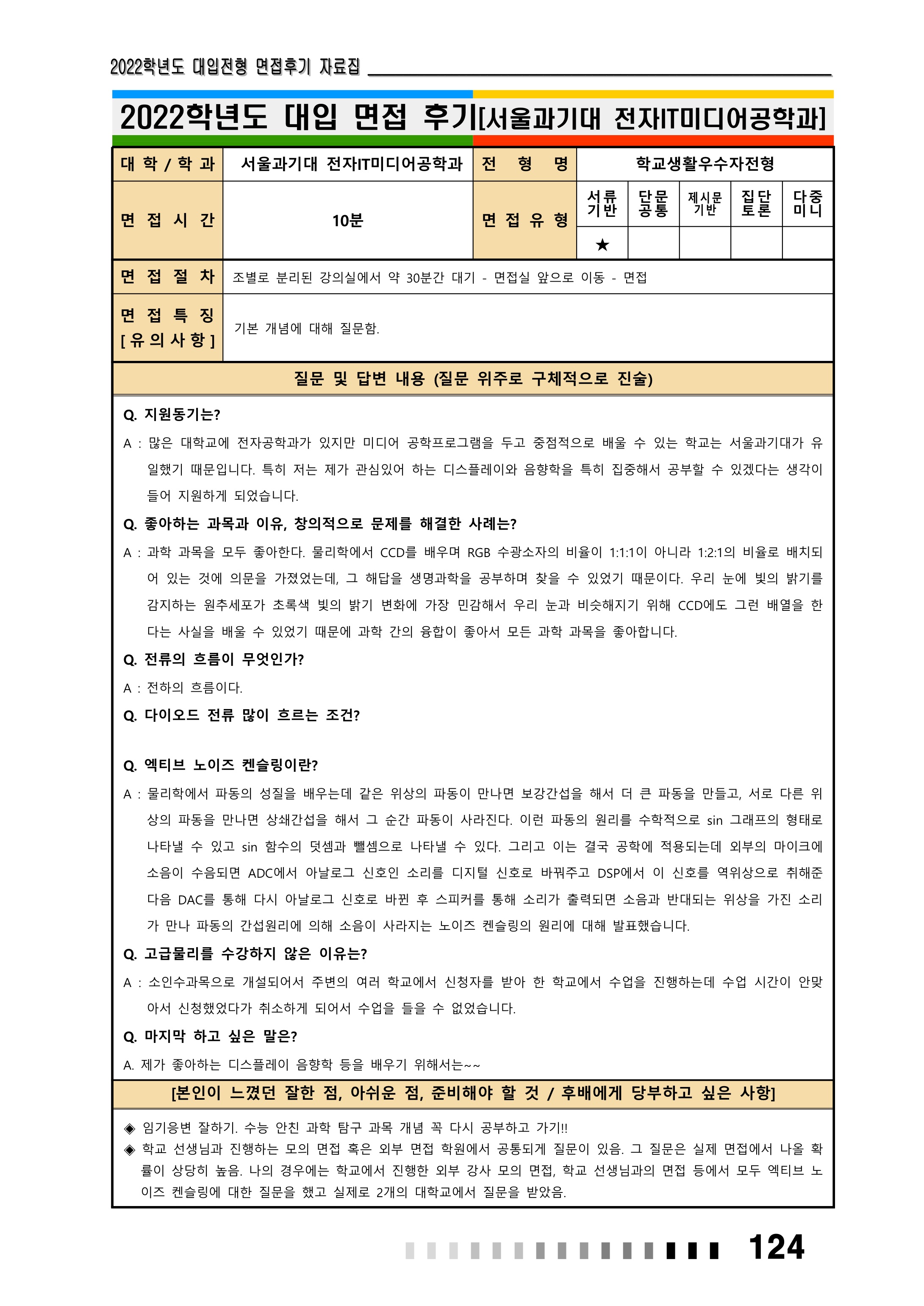 2022학년도 서울과학기술대학교 면접 후기14 - 전자IT미디어공학과 2022학년도 서울과학기술대학교 면접 후기15 - 지능형반도체학과