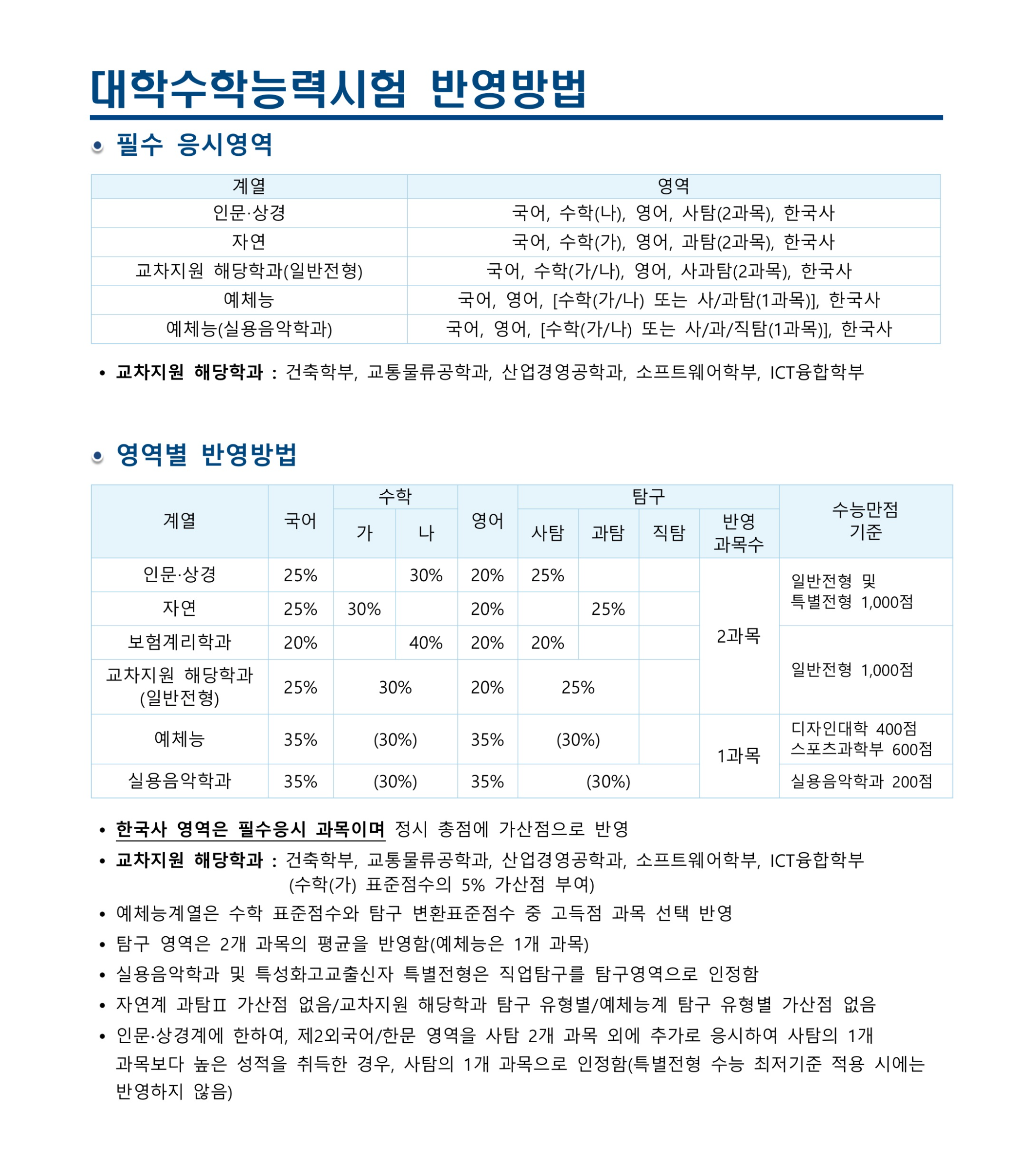 ※ 예체능계열은 수학 및 탐구 중 고득점 과목 선택 반영