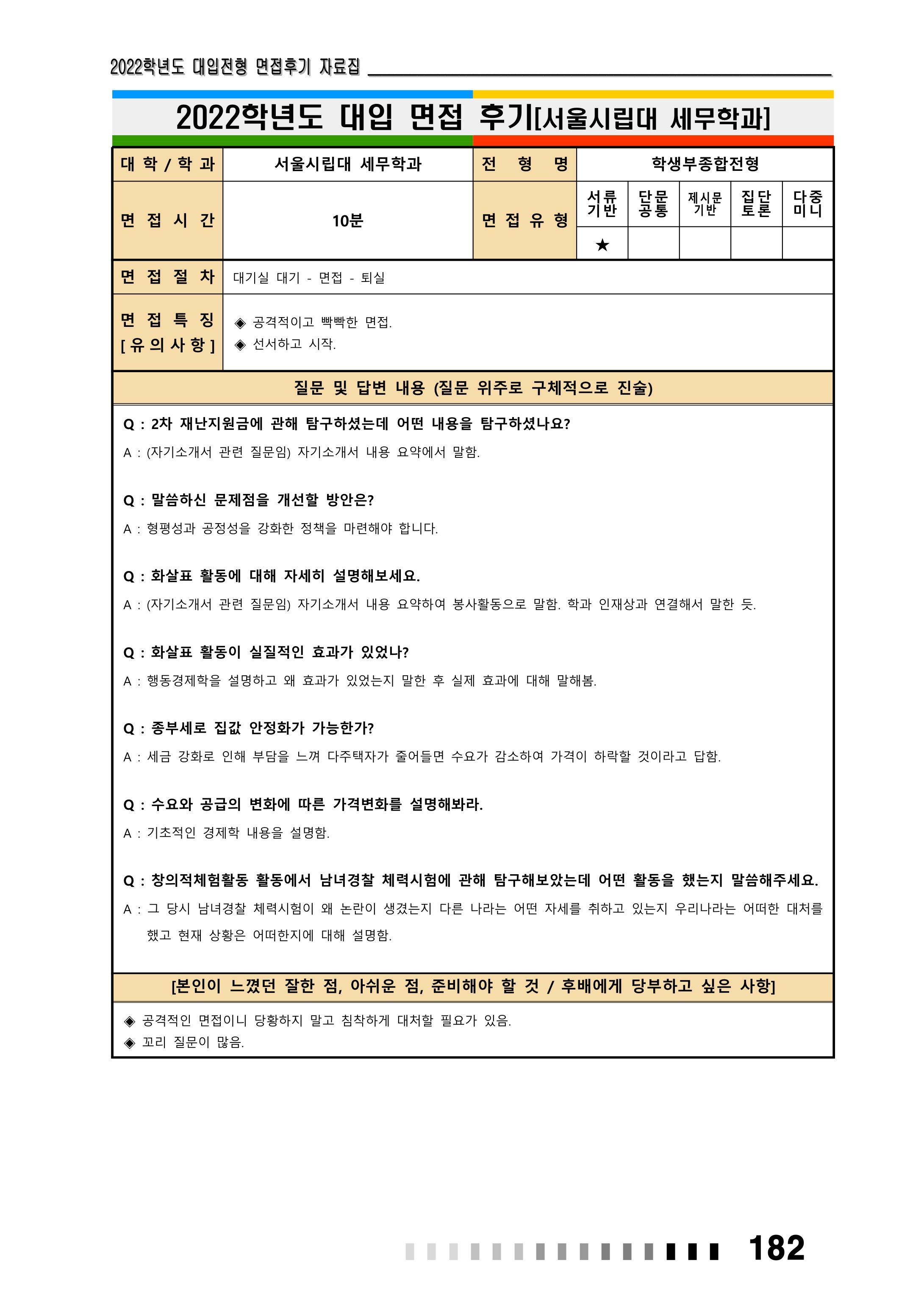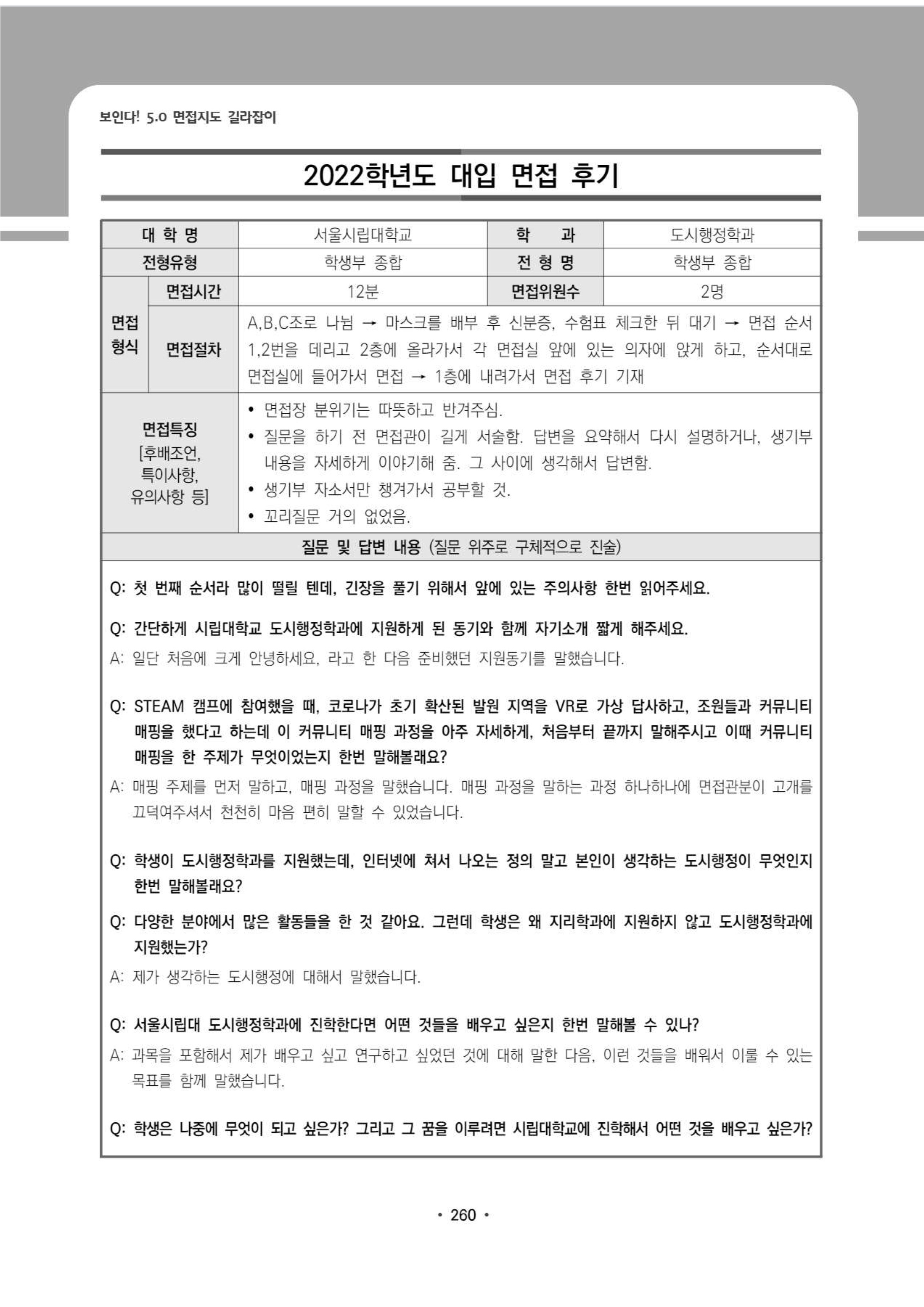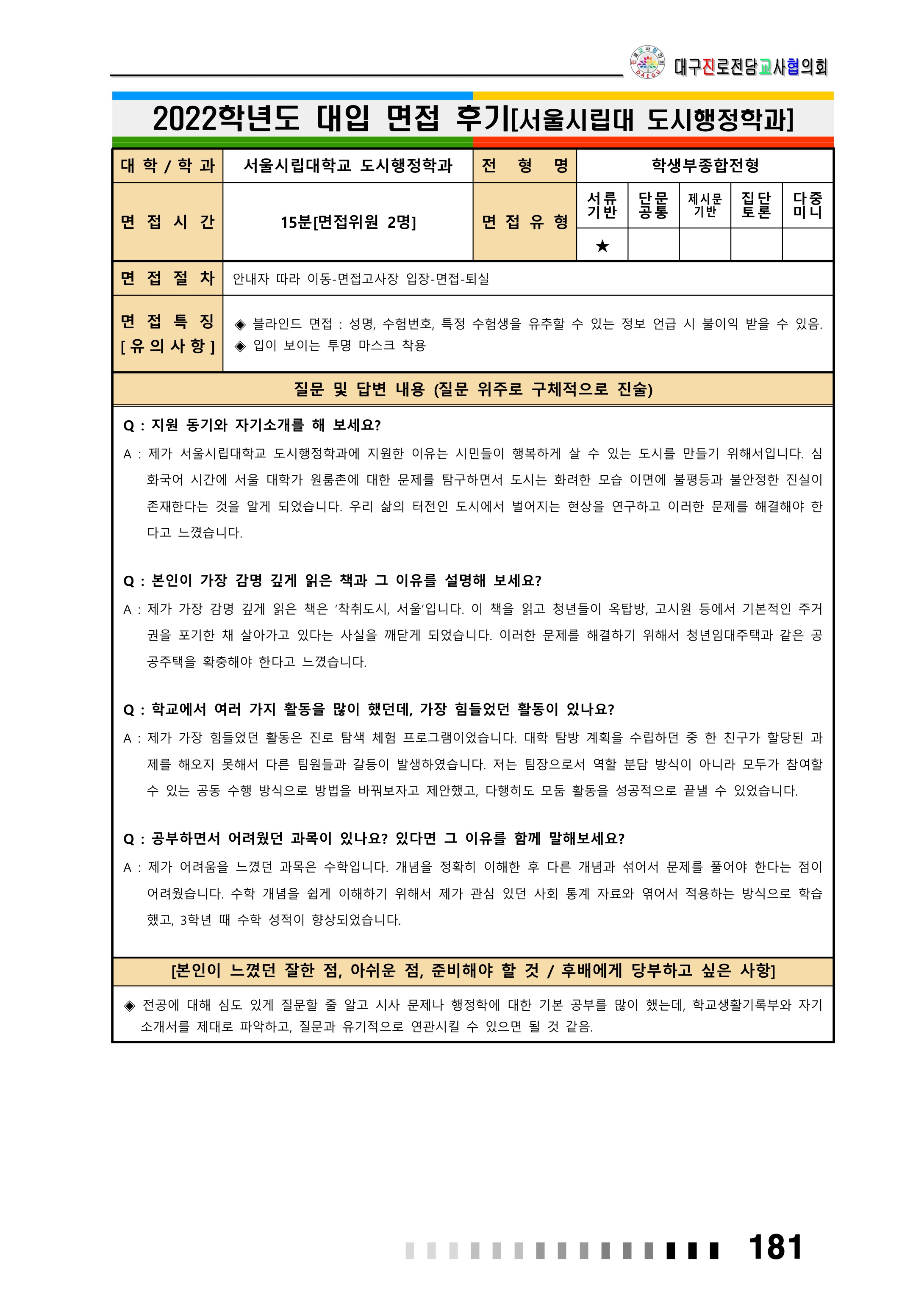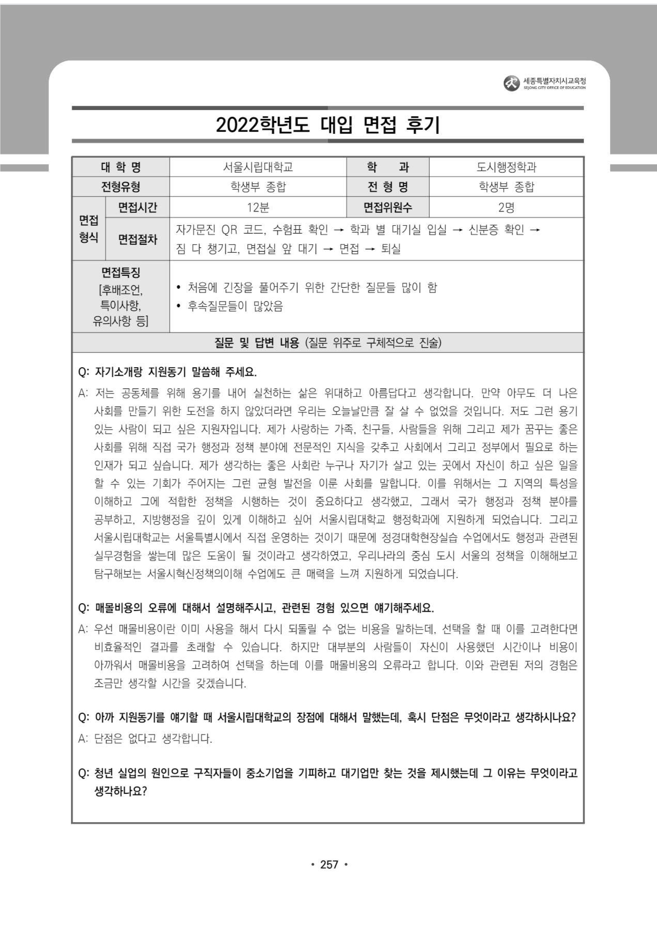 2022학년도 서울시립대학교 면접 후기15 - 도시행정학과