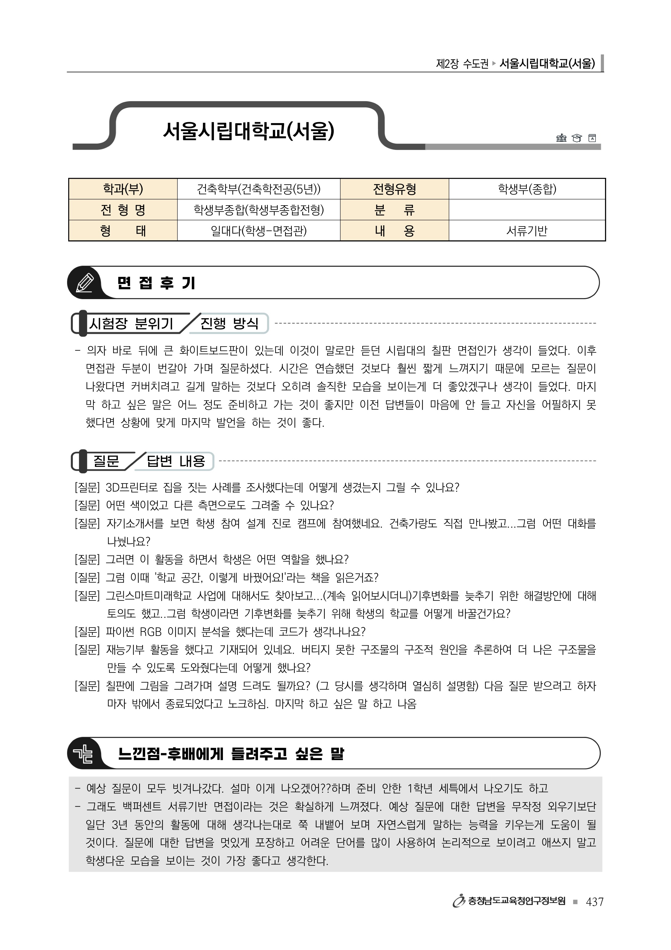 서울시립대학교 환경원예학과2022학년도 서울시립대학교 면접 후기1 - 건축학부