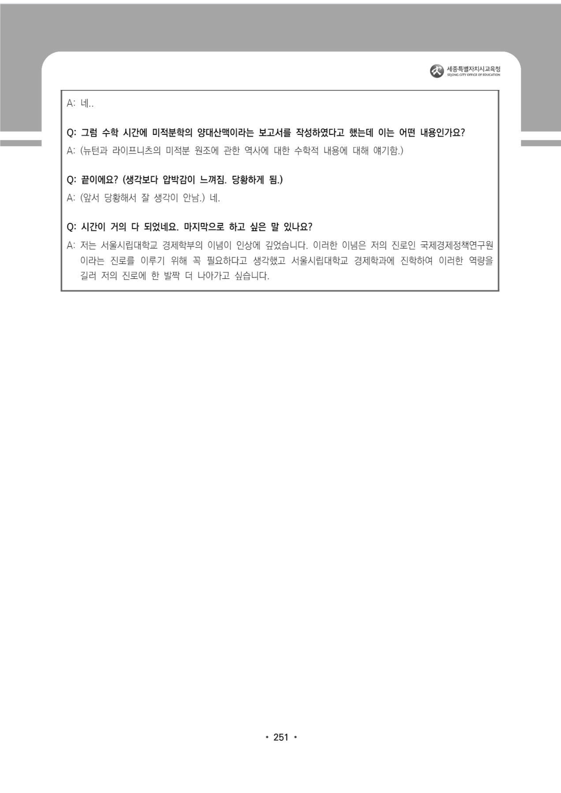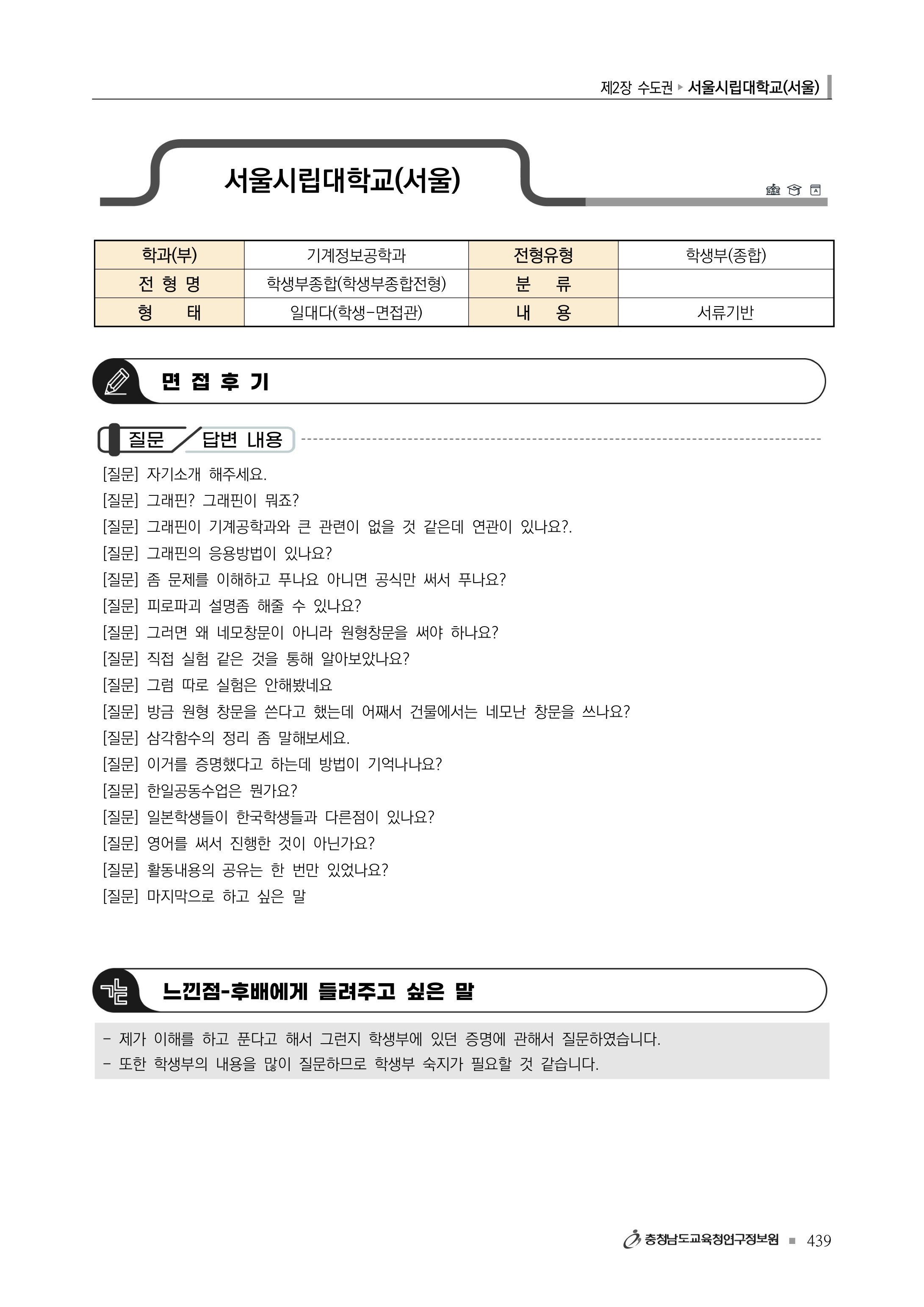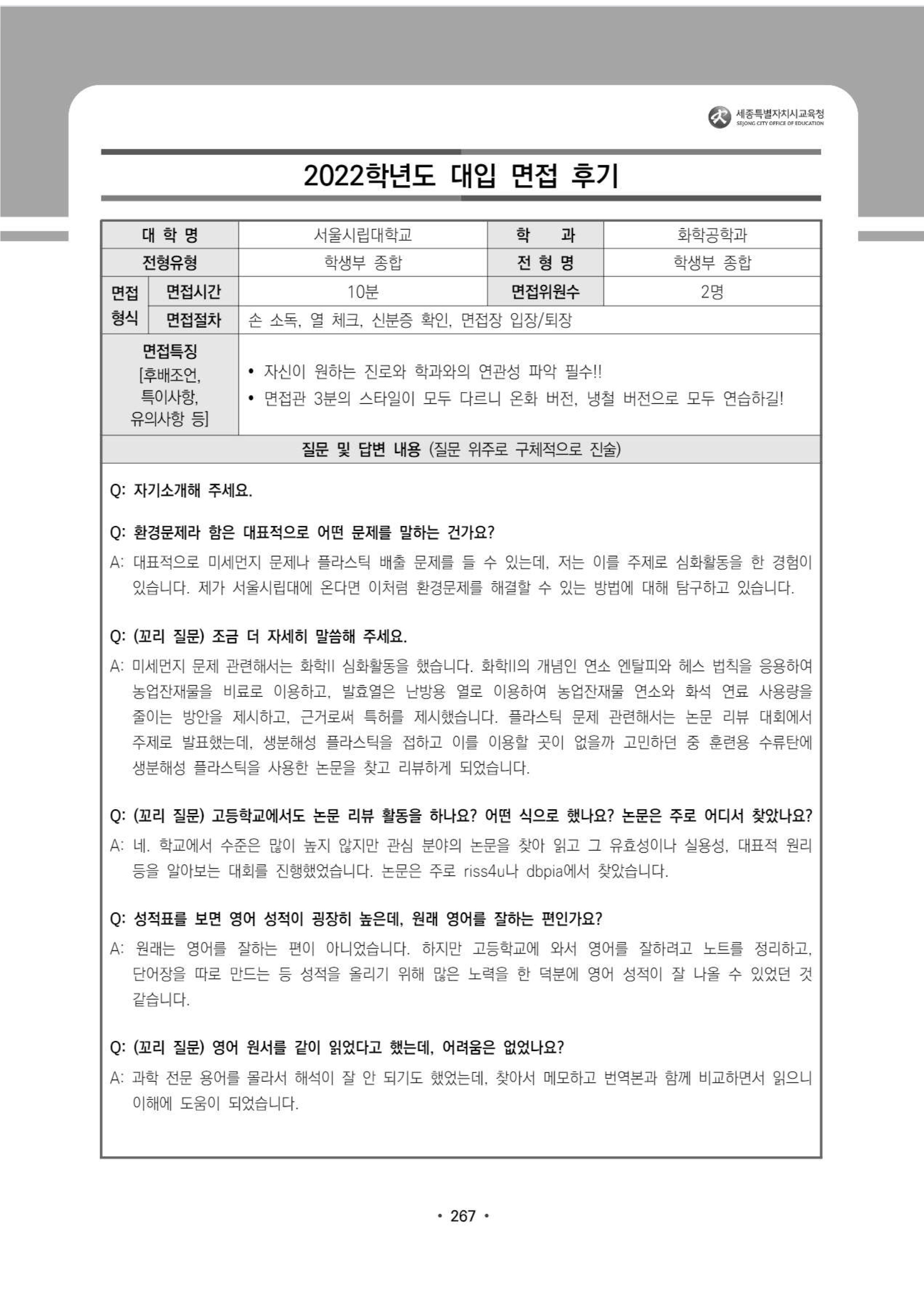 2023학년도 서울시립대학교 면접 질문