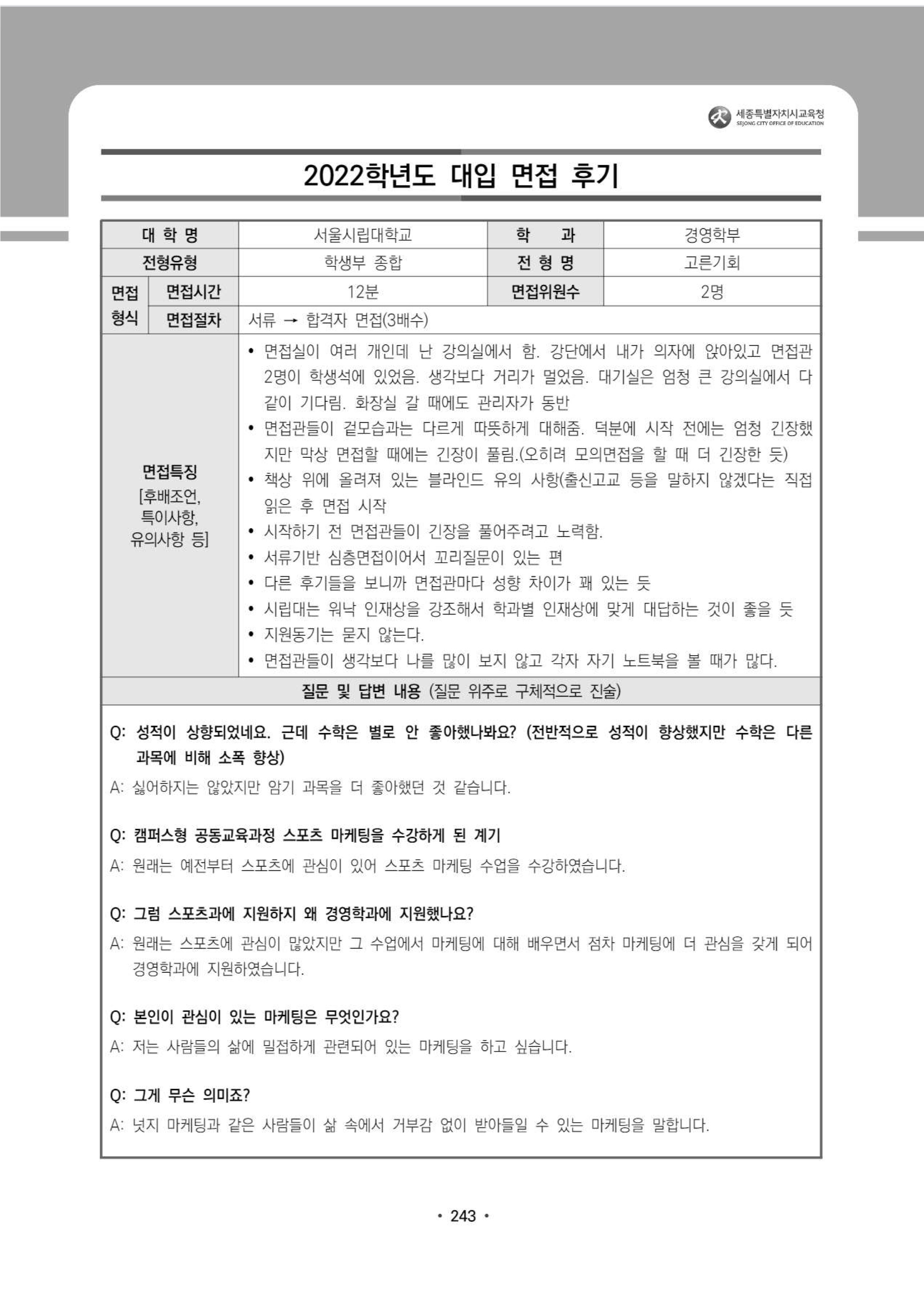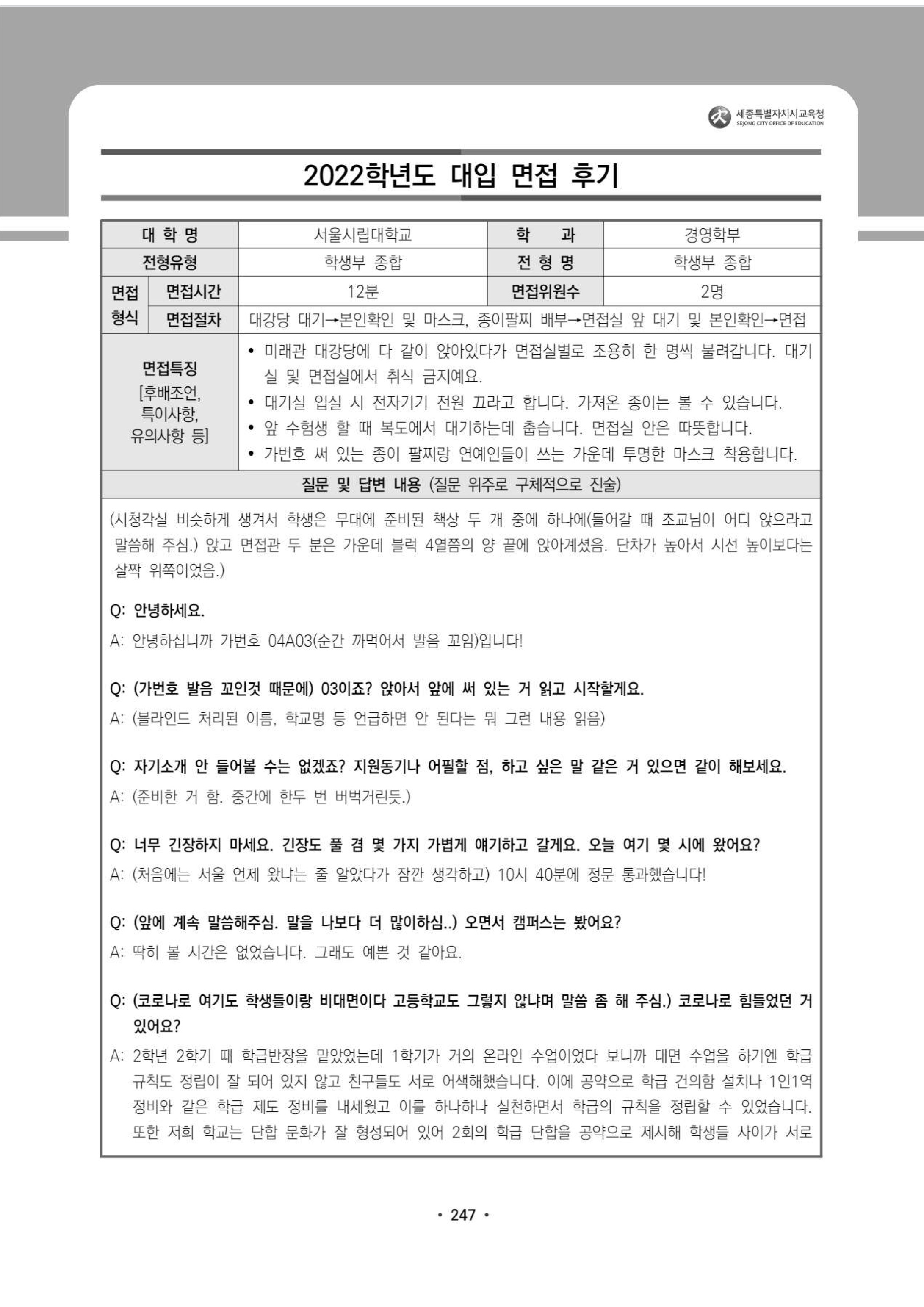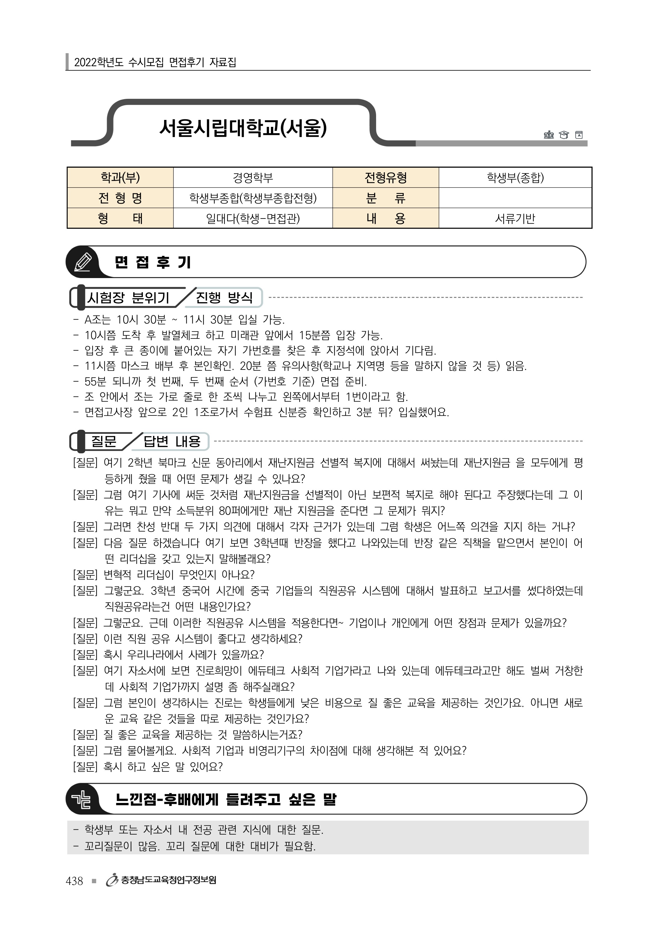 2022학년도 서울시립대학교 면접 후기3 - 경영학부