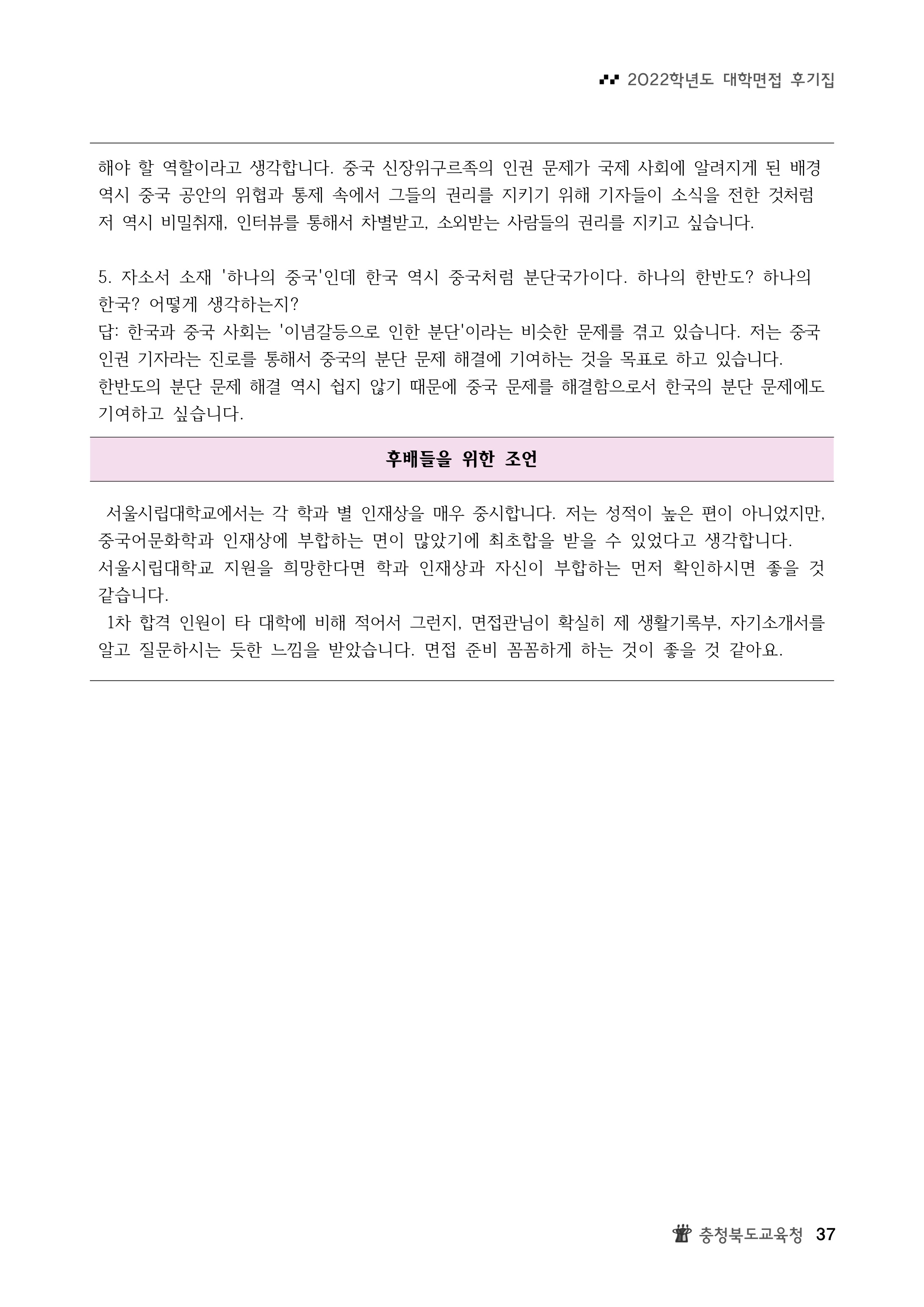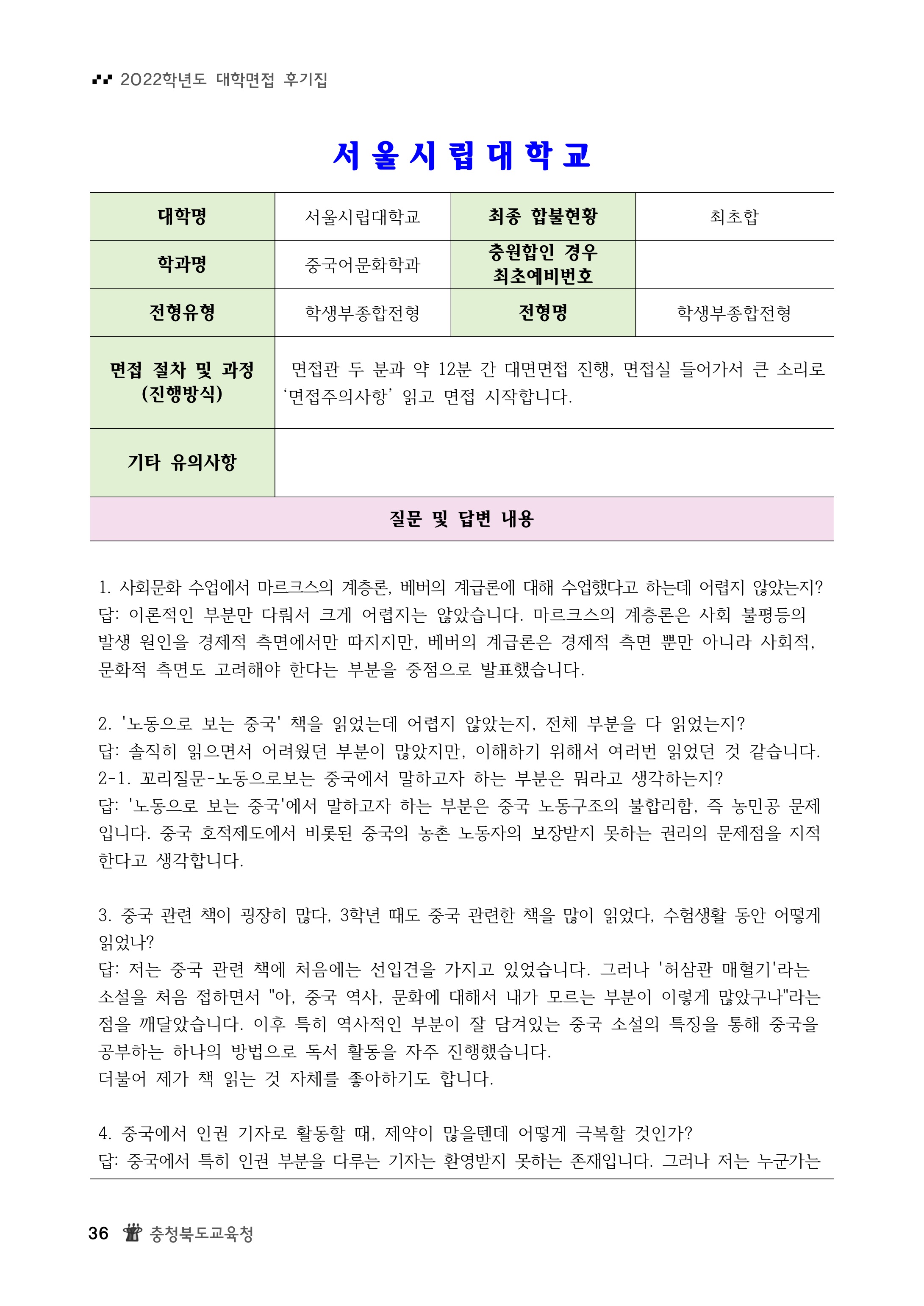 2022학년도 서울시립대학교 면접 후기23 - 중국어문화학과
