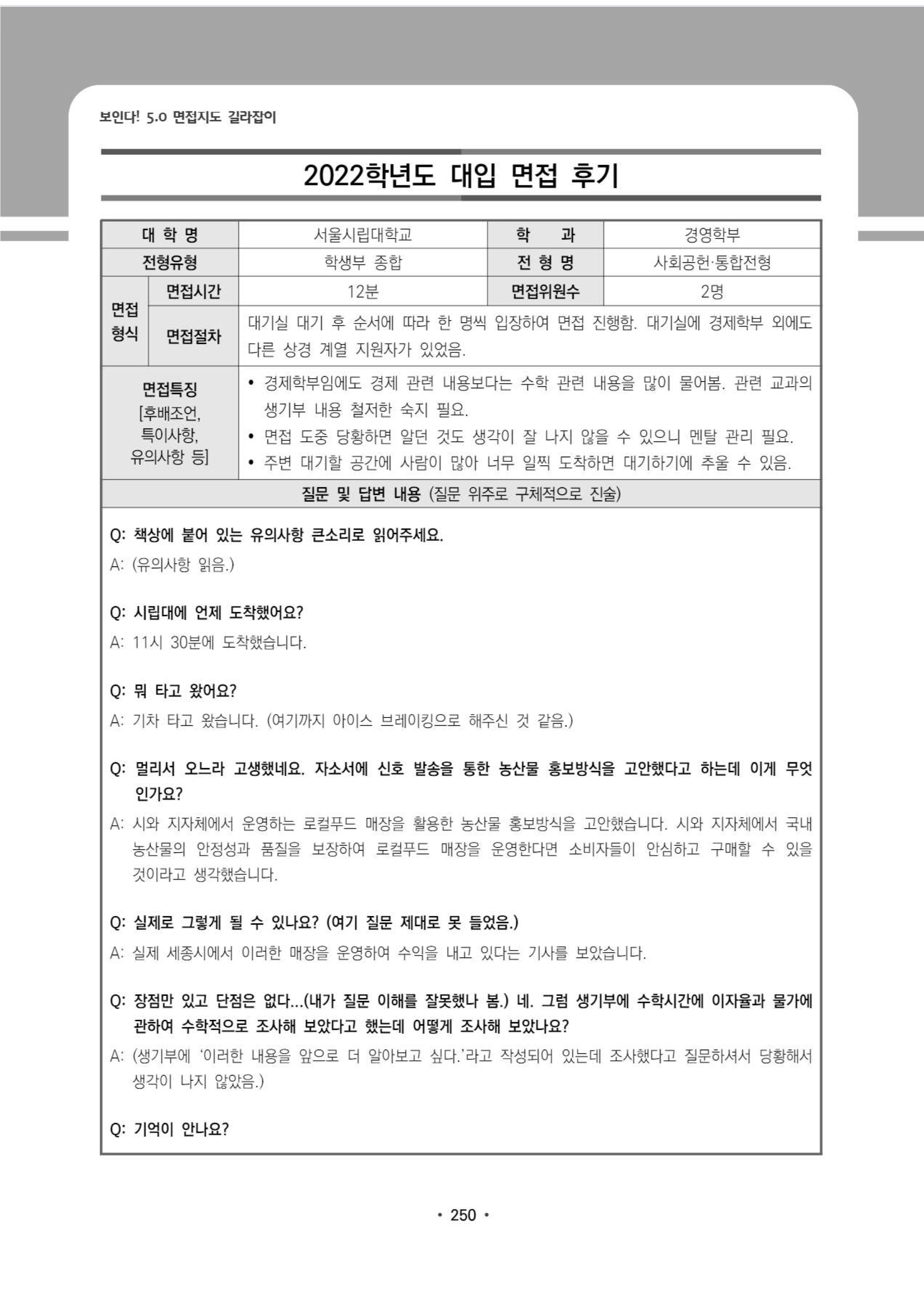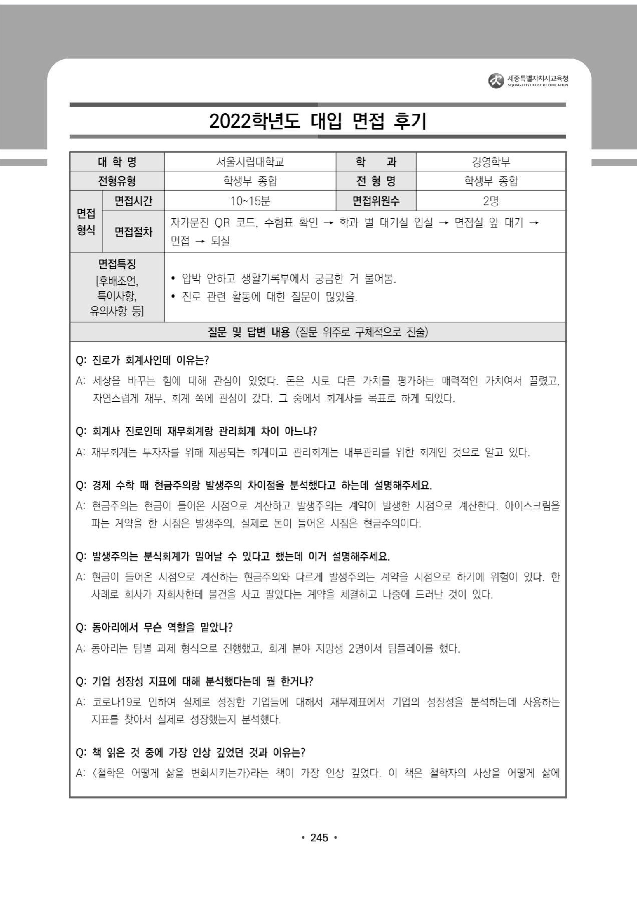 2022학년도 서울시립대학교 면접 후기8 - 경영학부