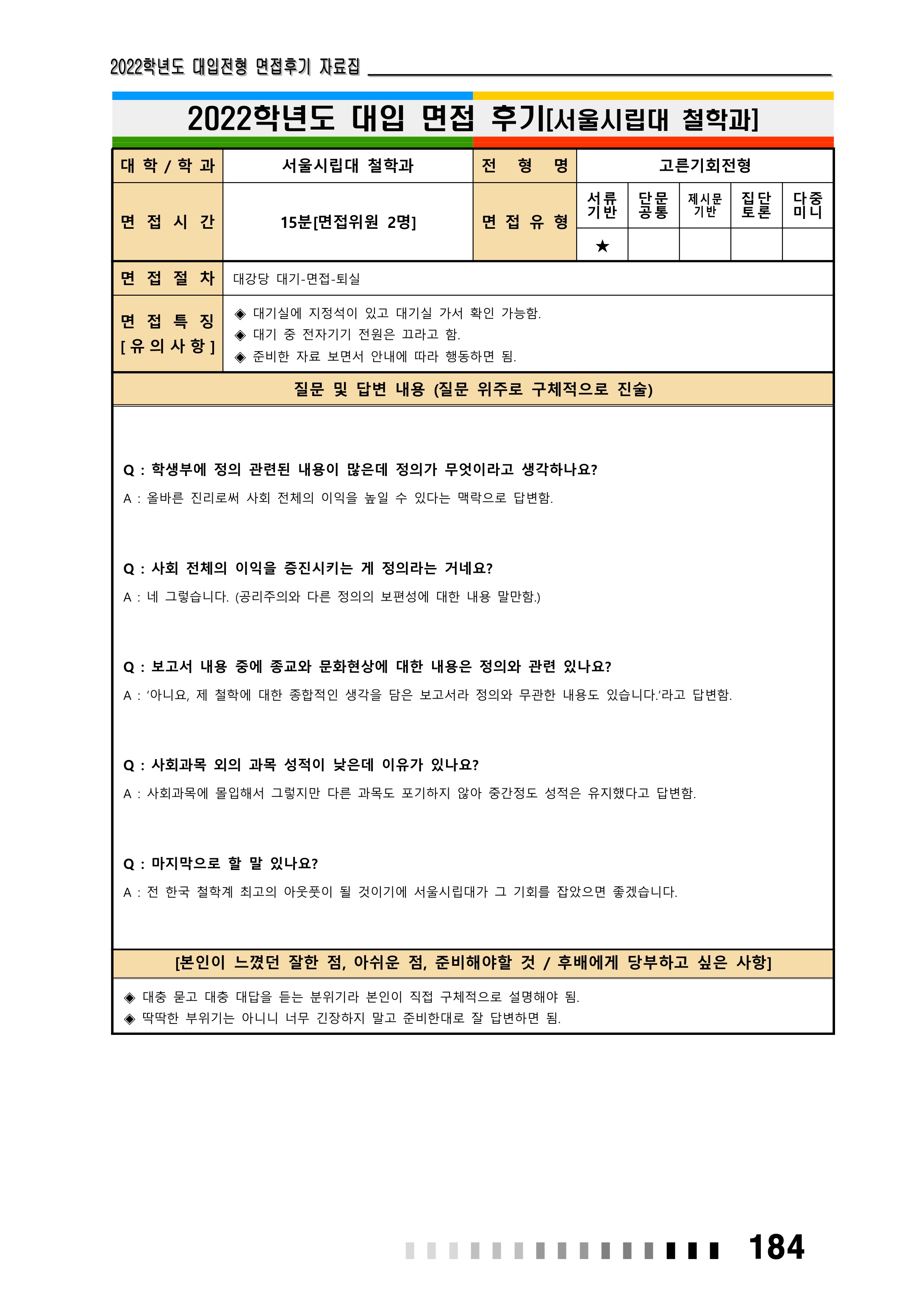 2022학년도 서울시립대학교 면접 후기24 - 철학과 2022학년도 서울시립대학교 면접 후기25 - 컴퓨터과학부