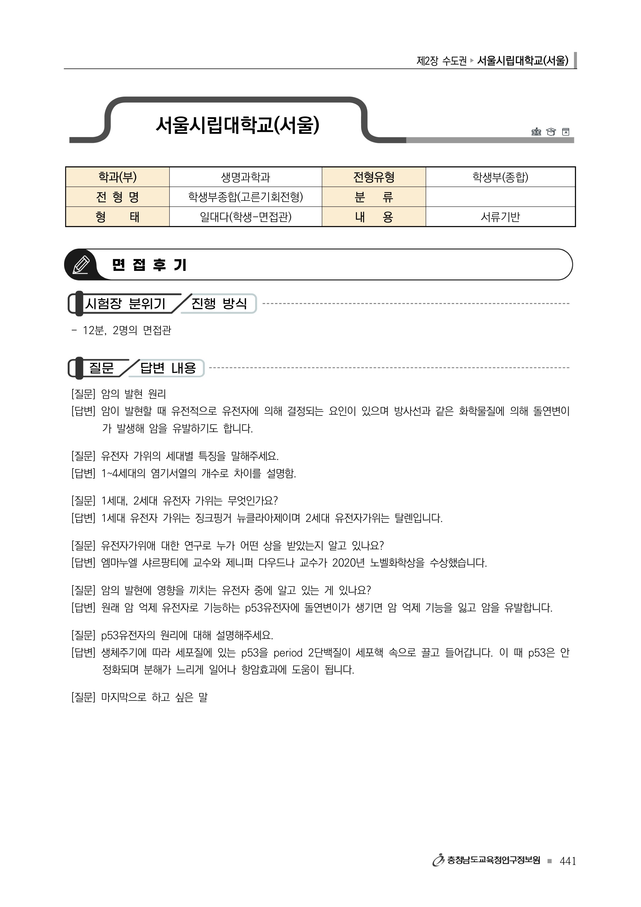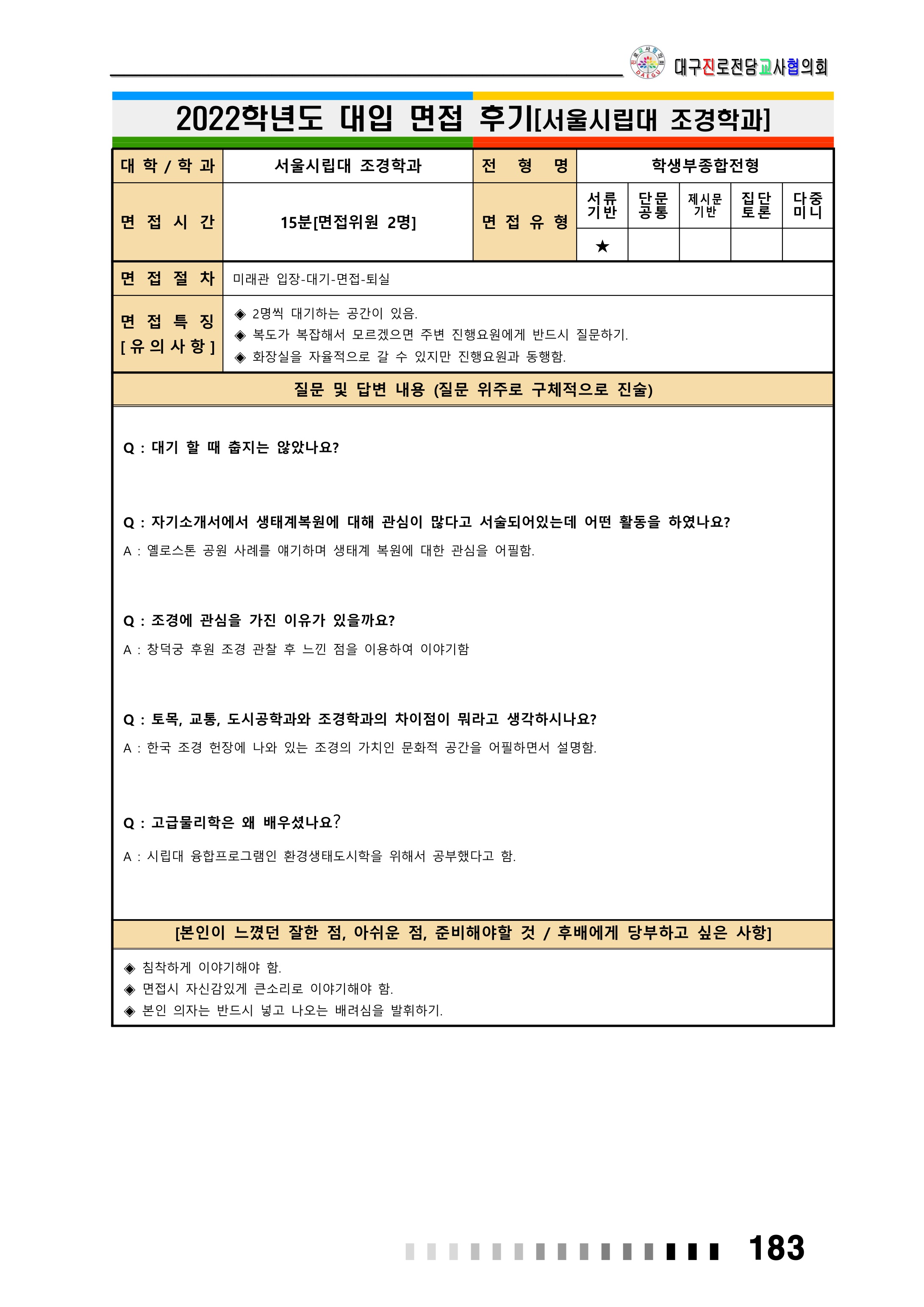 2022학년도 서울시립대학교 면접 후기21 - 융합응용화학과 2022학년도 서울시립대학교 면접 후기22 - 조경학과