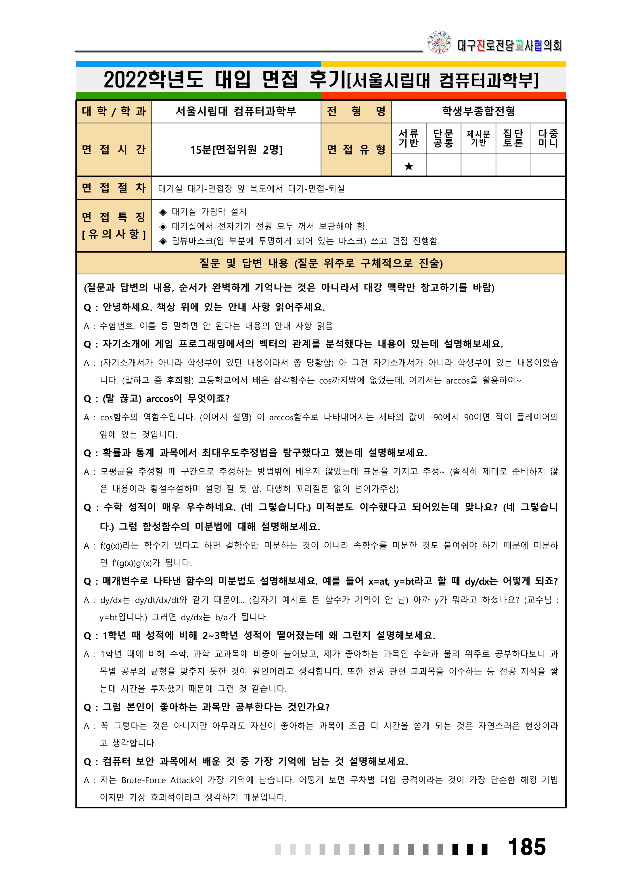 2022학년도 서울시립대학교 면접 후기26 - 컴퓨터과학부