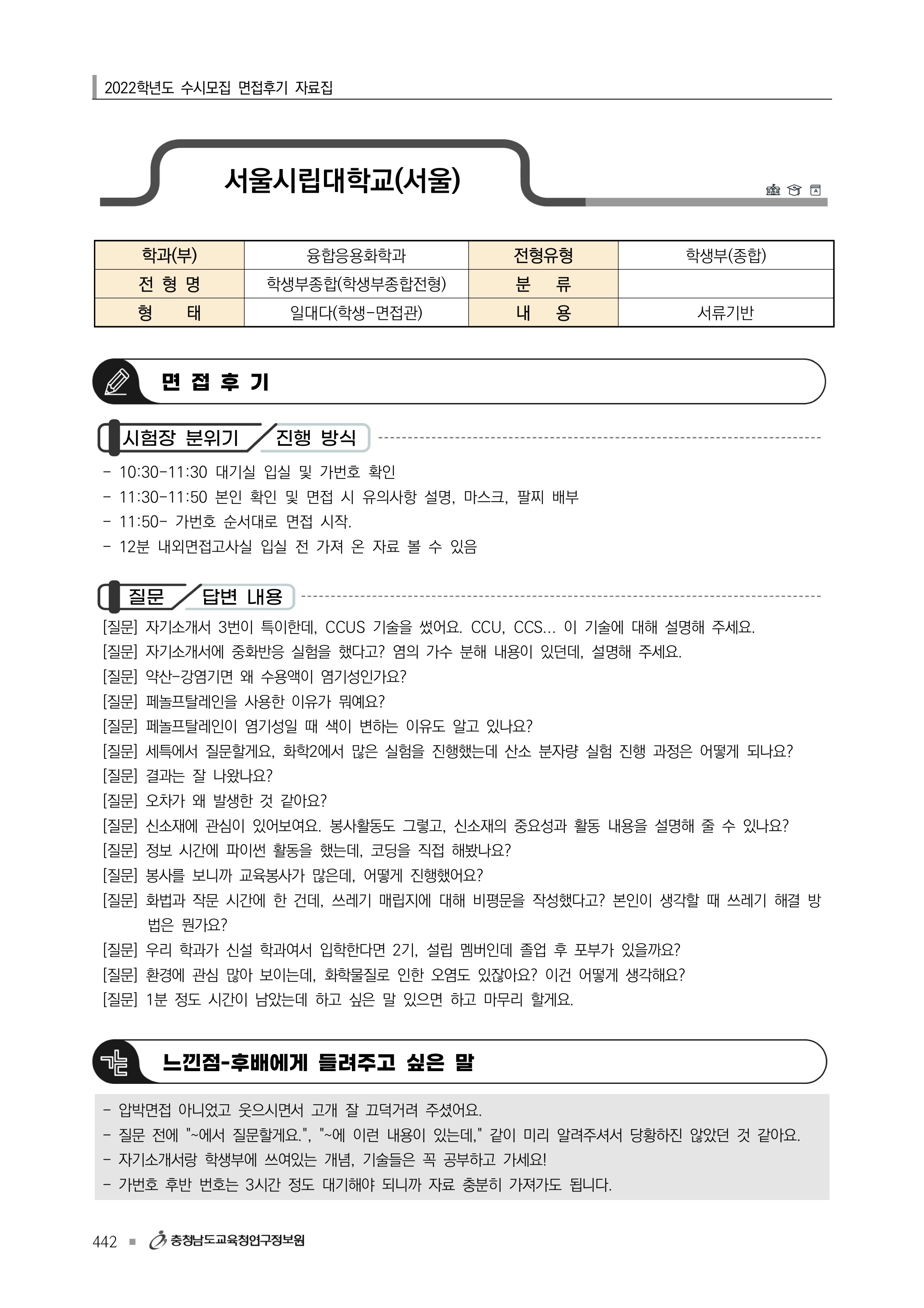 2022학년도 서울시립대학교 면접 후기27 - 화학공학과