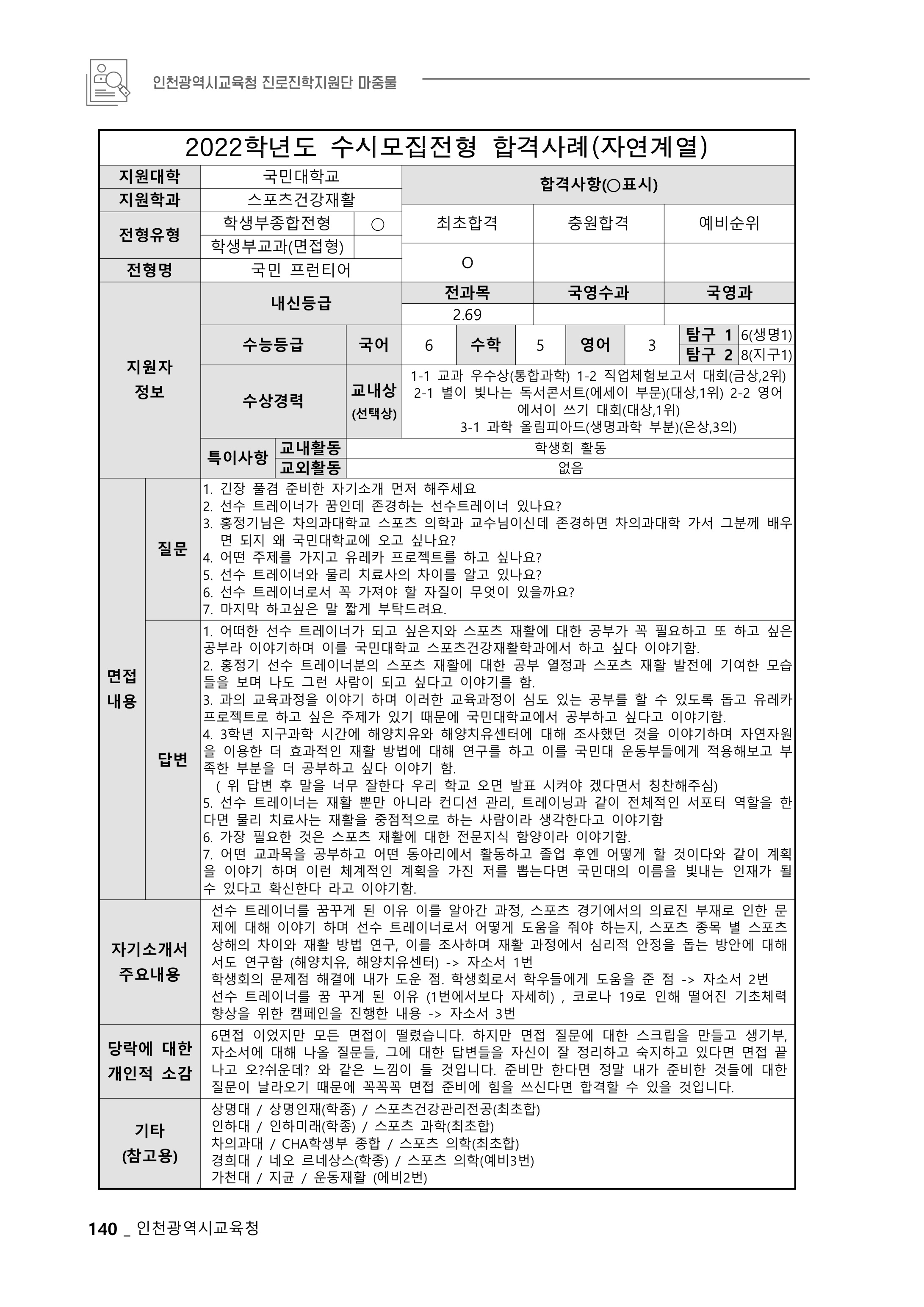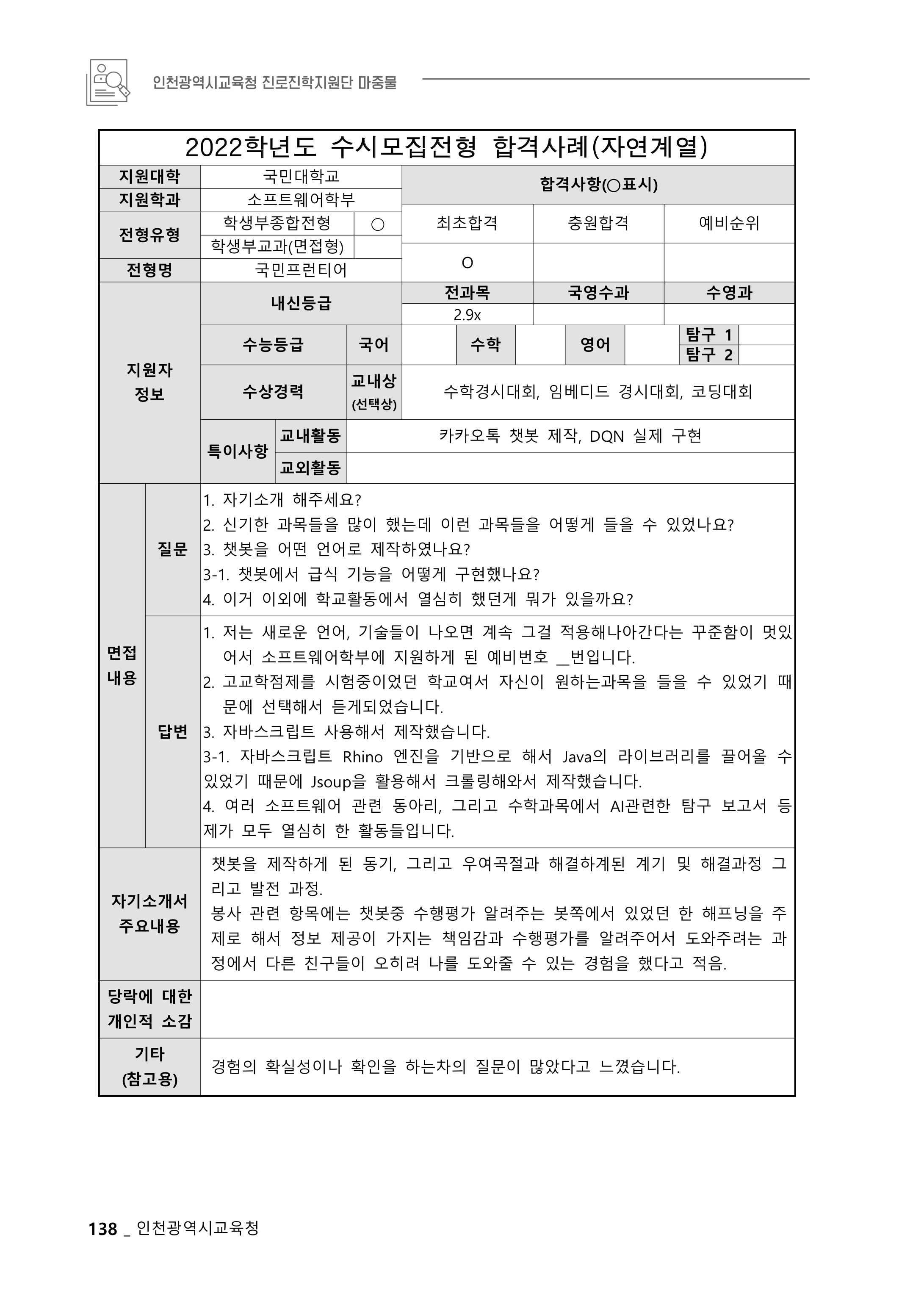 2022학년도 국민대학교 면접 후기16 - 소프트웨어학부 2022학년도 국민대학교 면접 후기17 - 스포츠건강재활학과