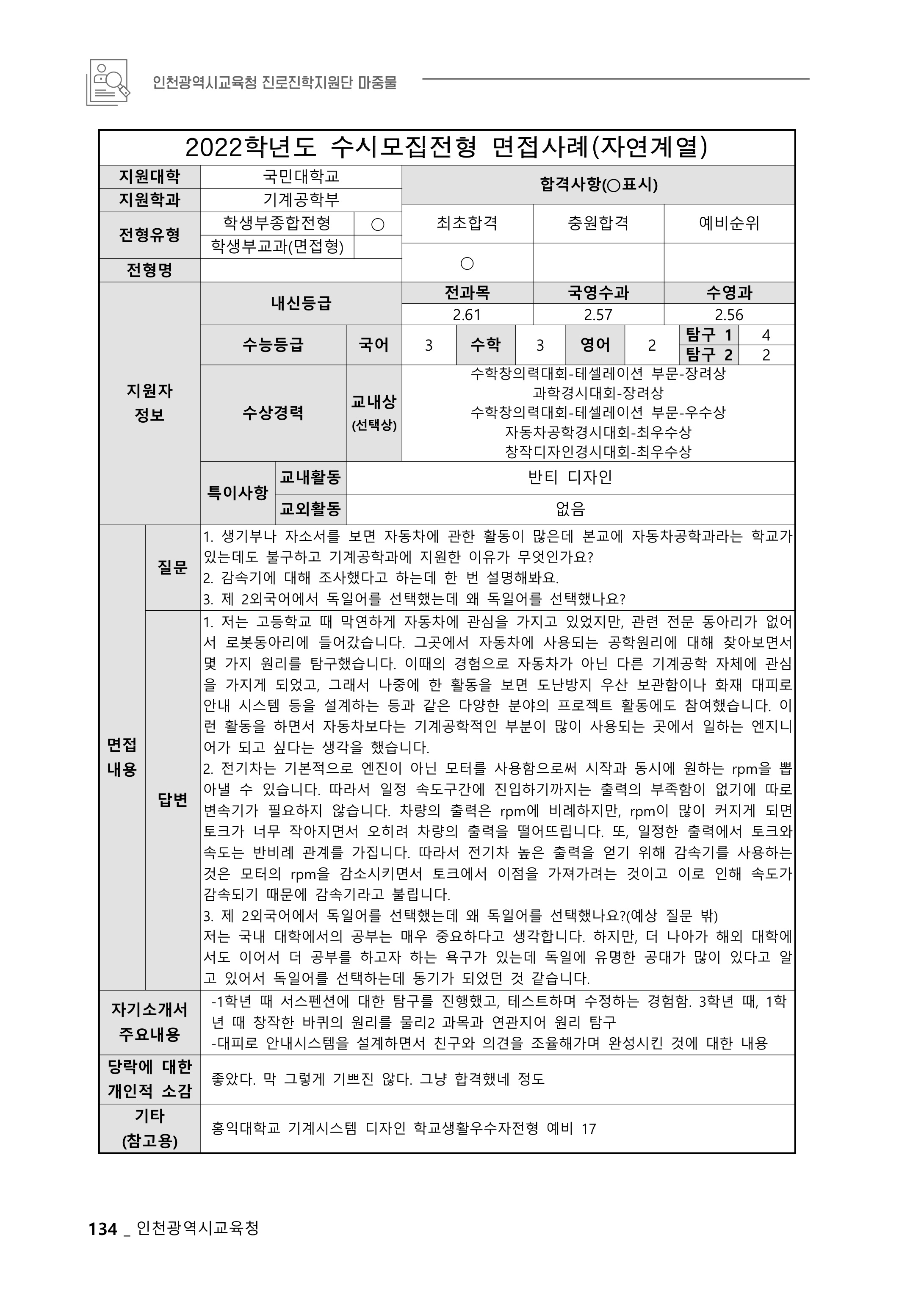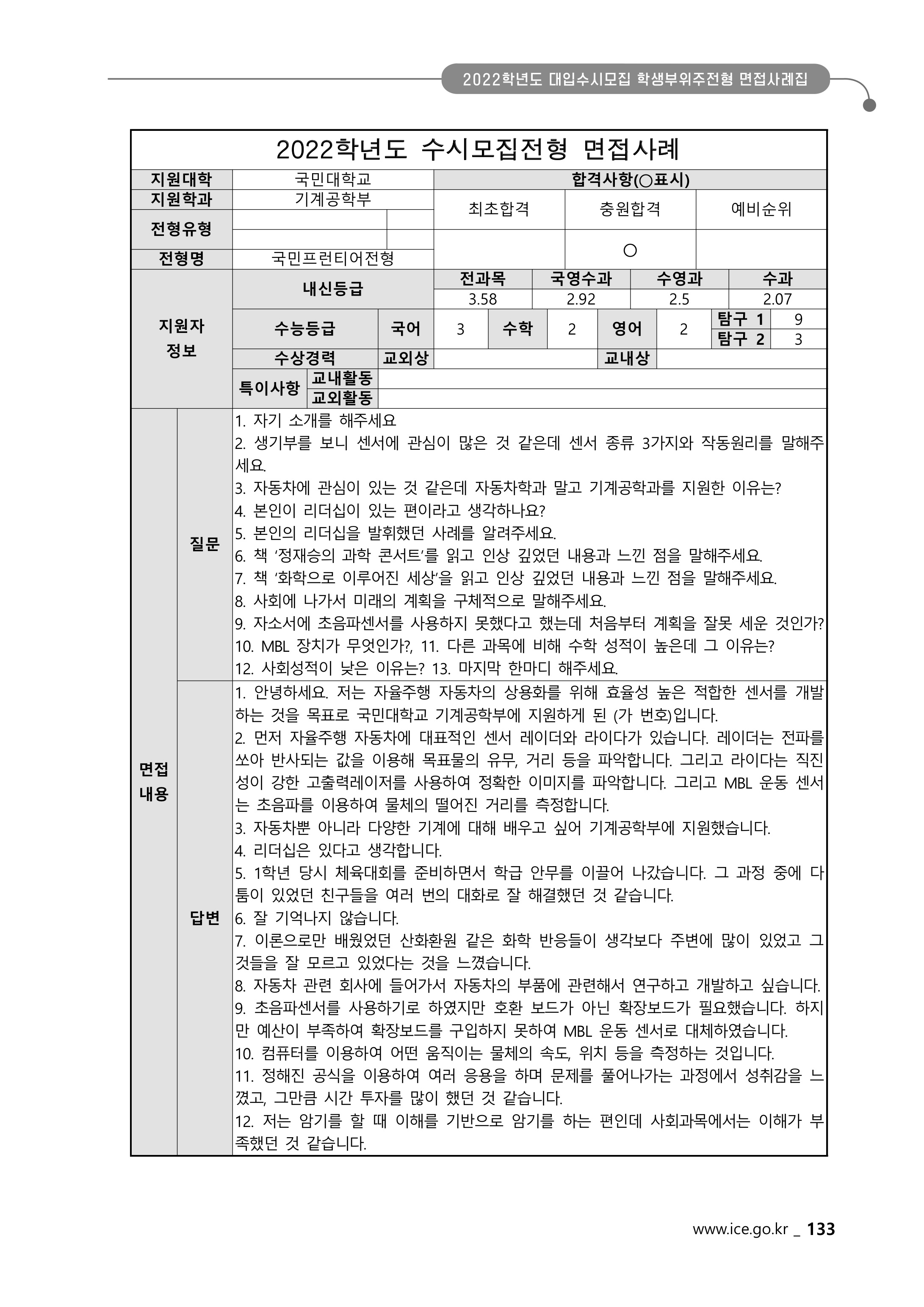 2022학년도 국민대학교 면접 후기10 - 기계공학부 2022학년도 국민대학교 면접 후기11 - 미디어광고학부