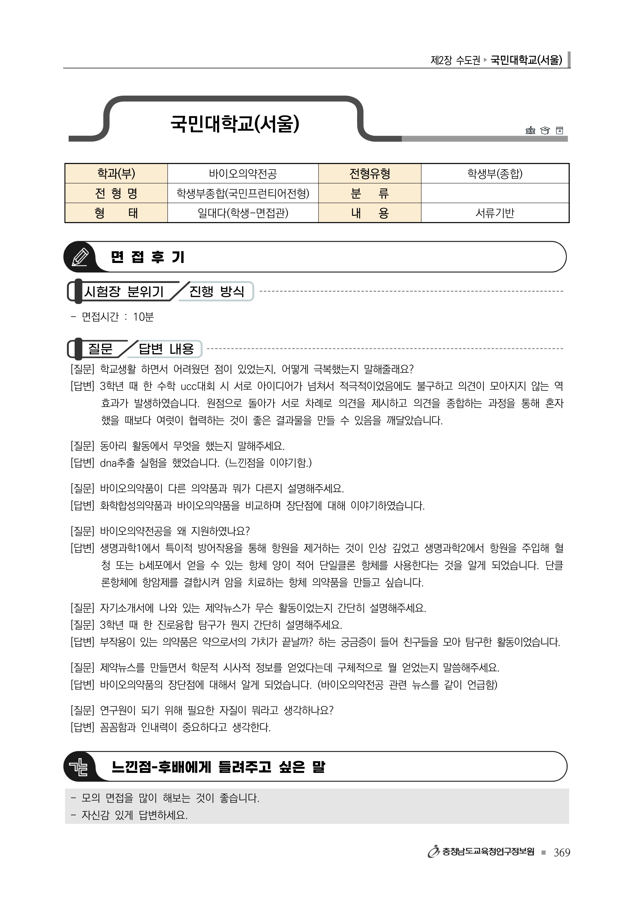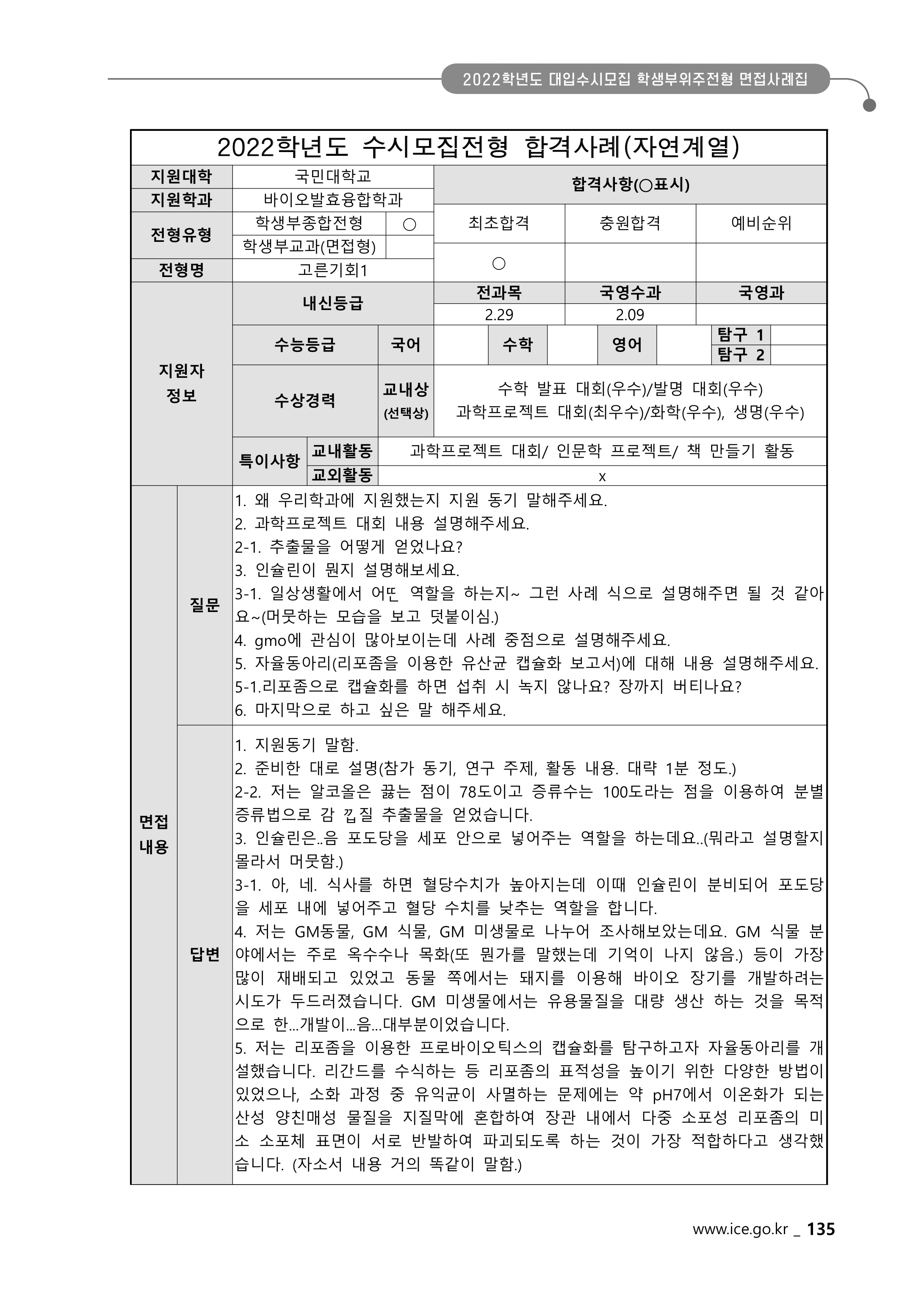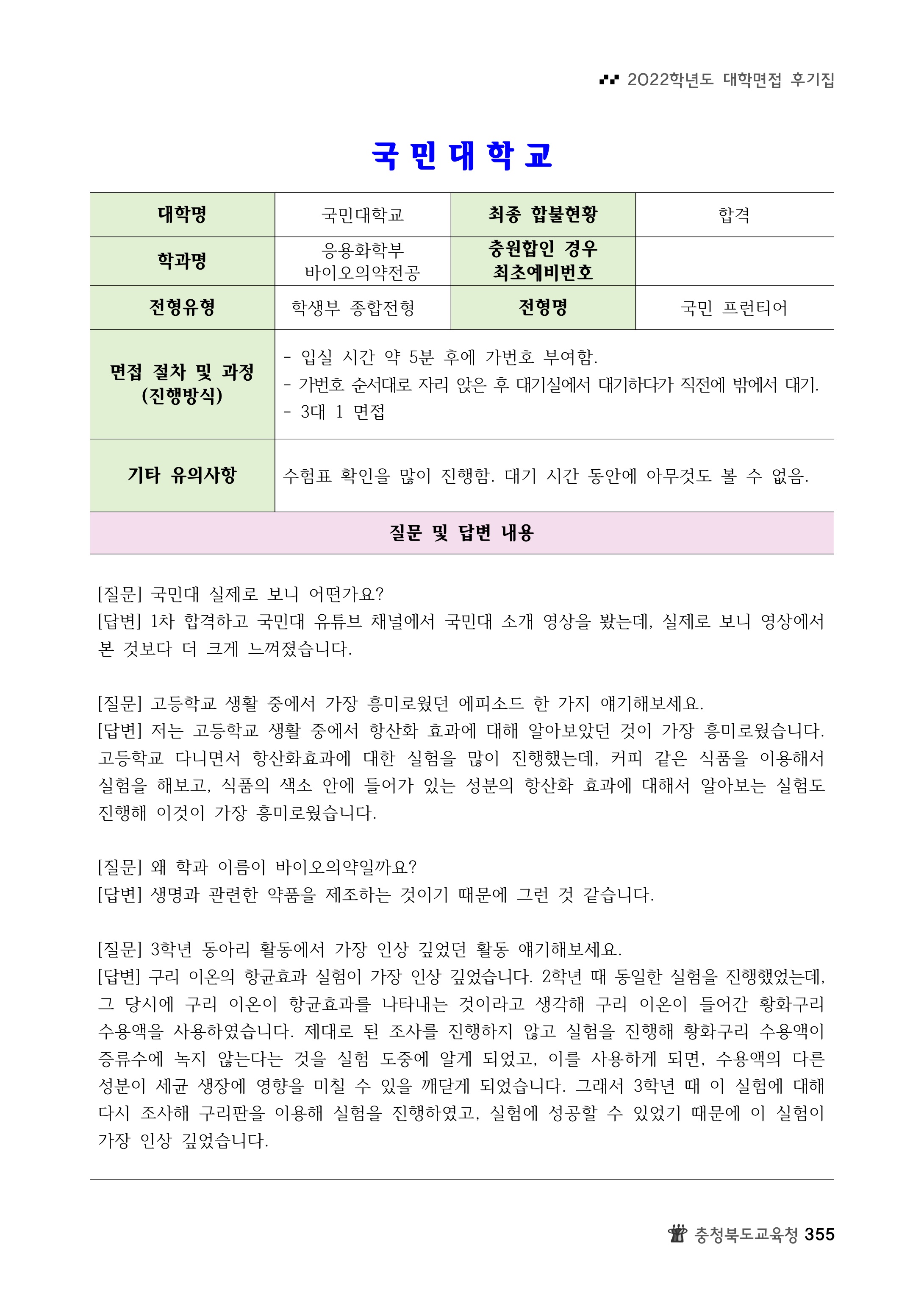 2022학년도 국민대학교 면접 후기12 - 바이오발효융합학과