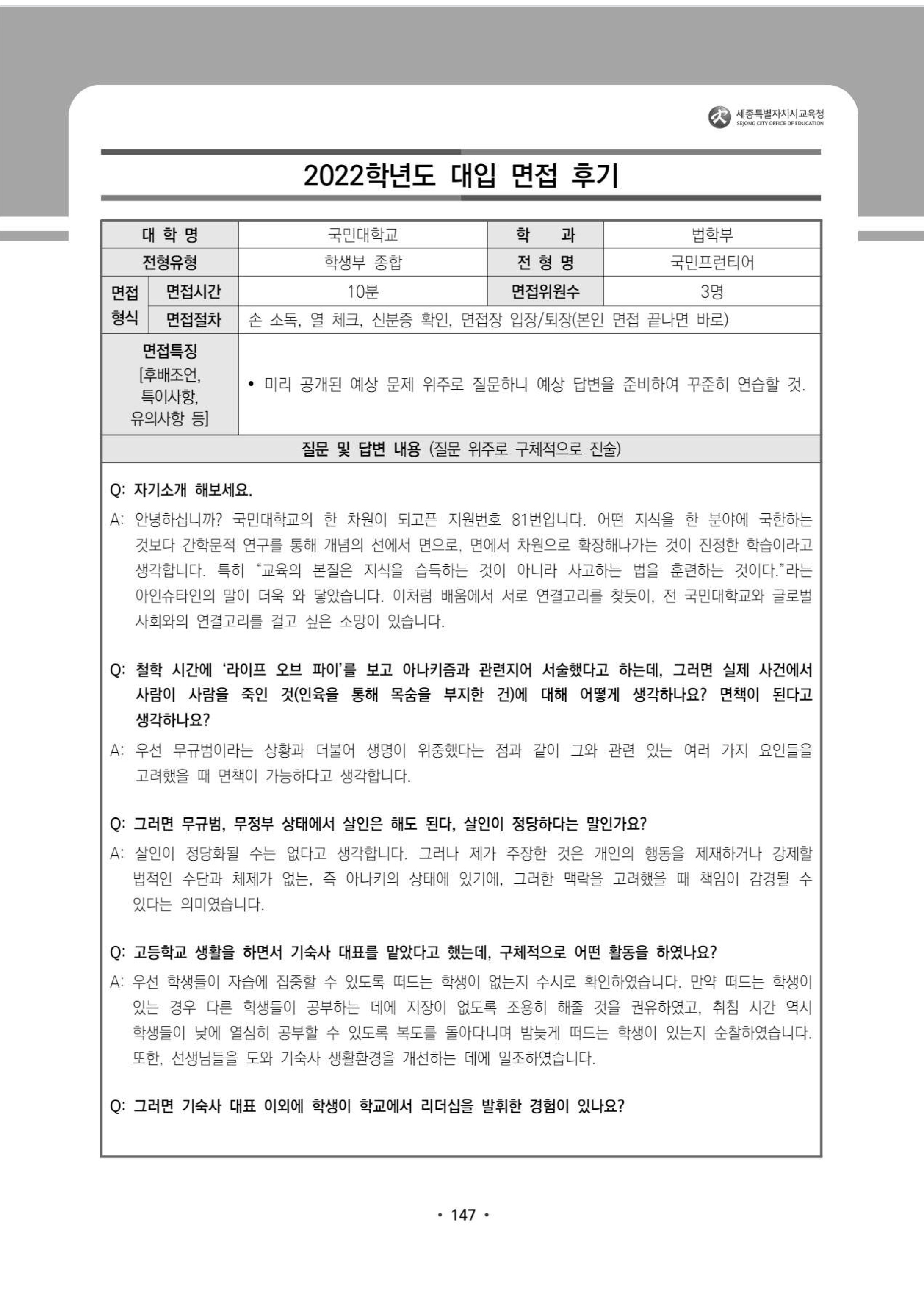 2022학년도 국민대학교 면접 후기13 - 법학부