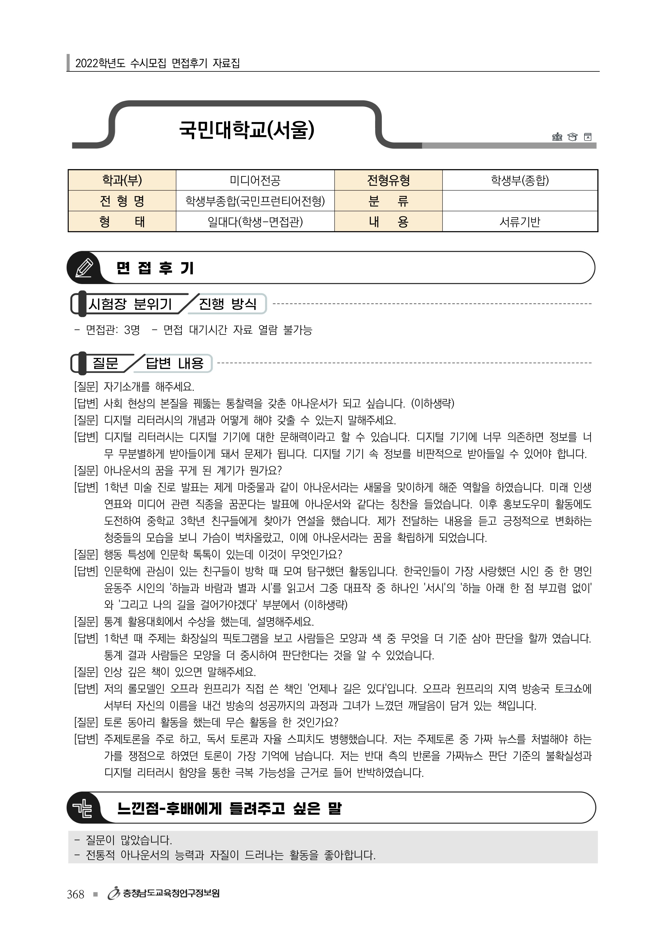 2022학년도 국민대학교 면접 후기11 - 미디어광고학부 2022학년도 국민대학교 면접 후기12 - 바이오발효융합학과