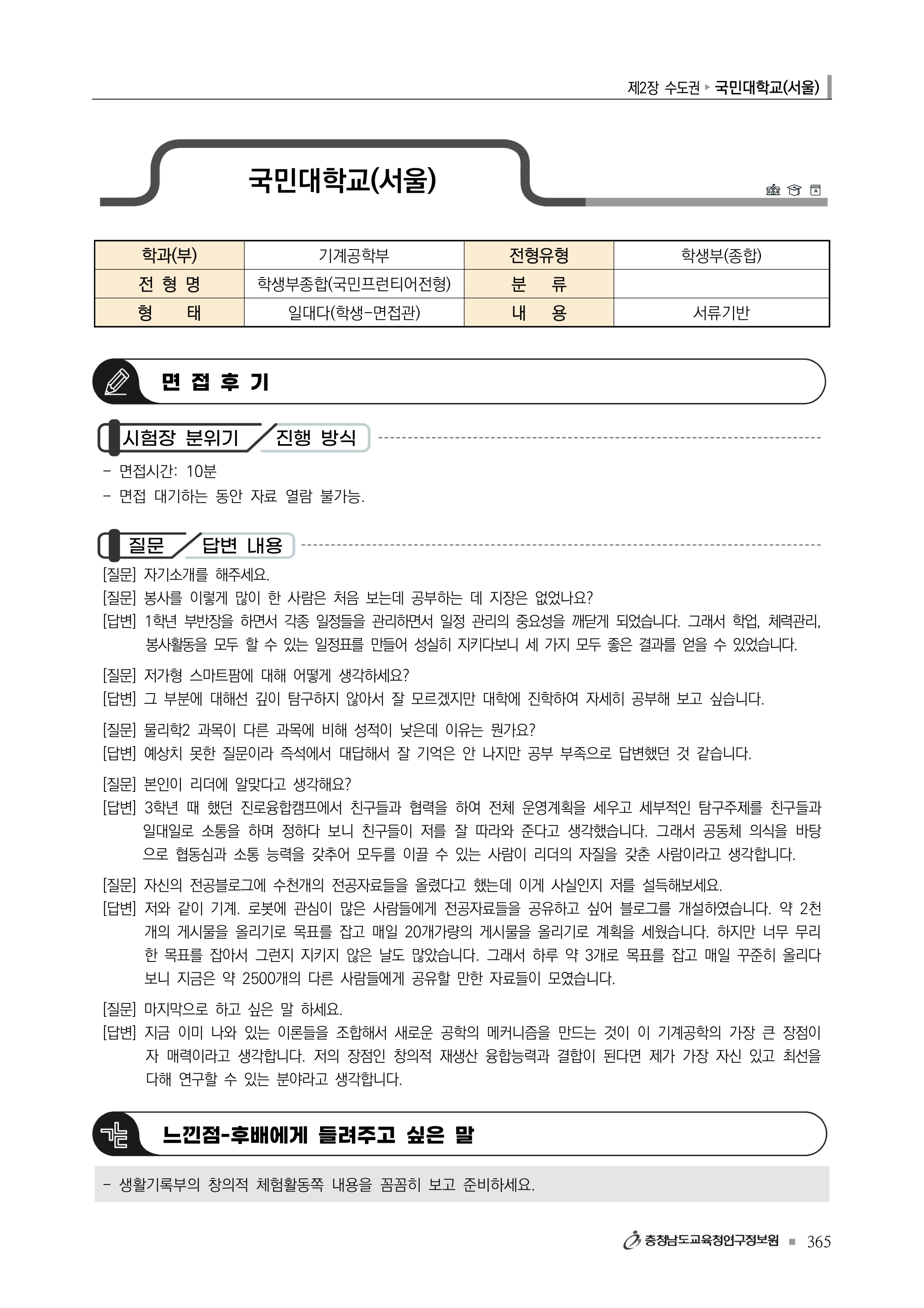 2022학년도 국민대학교 면접 후기6 - 국어국문학과 2022학년도 국민대학교 면접 후기7 - 기계공학부