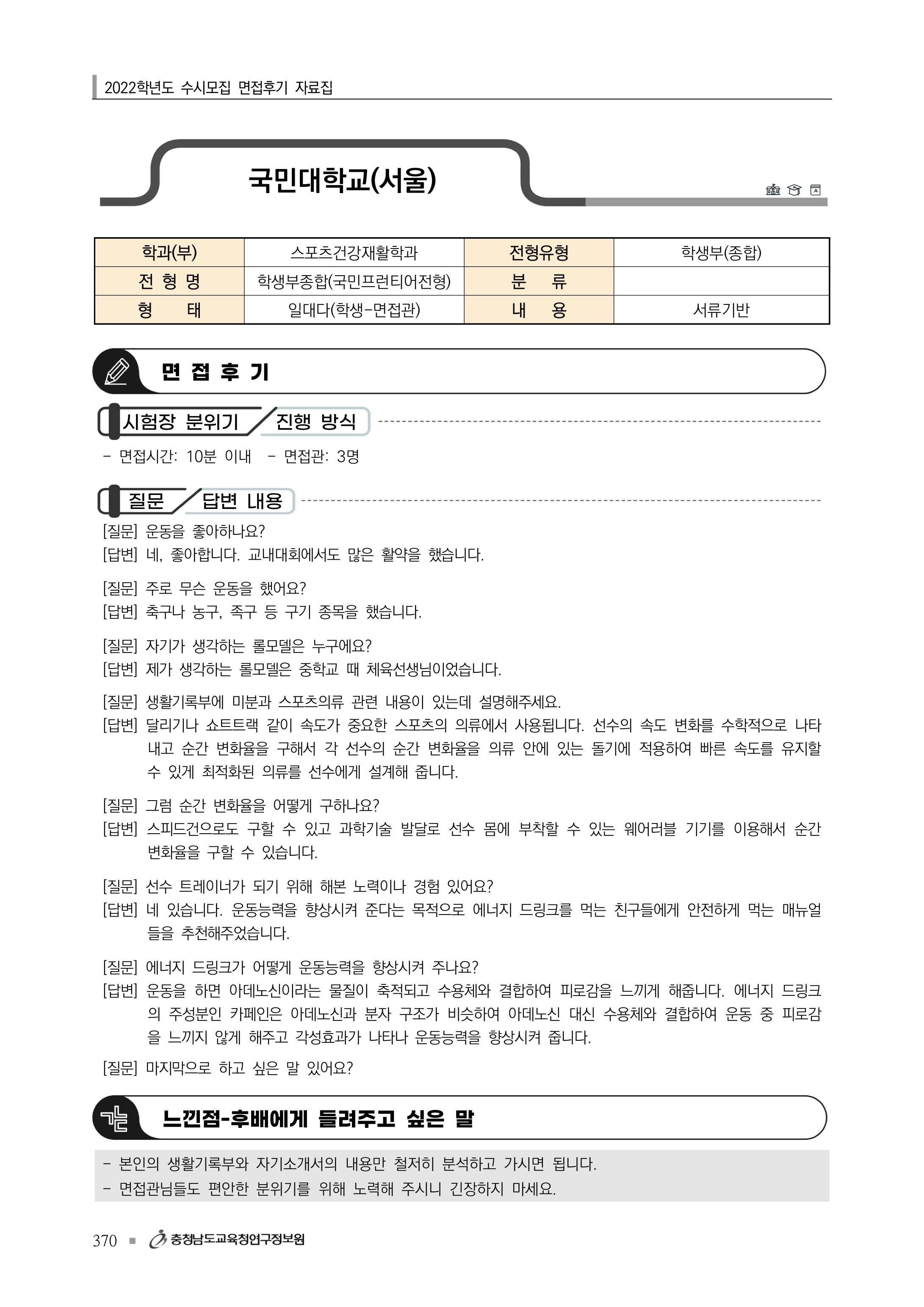 2022학년도 국민대학교 면접 후기17 - 스포츠건강재활학과 2022학년도 국민대학교 면접 후기18 - 스포츠건강재활학과