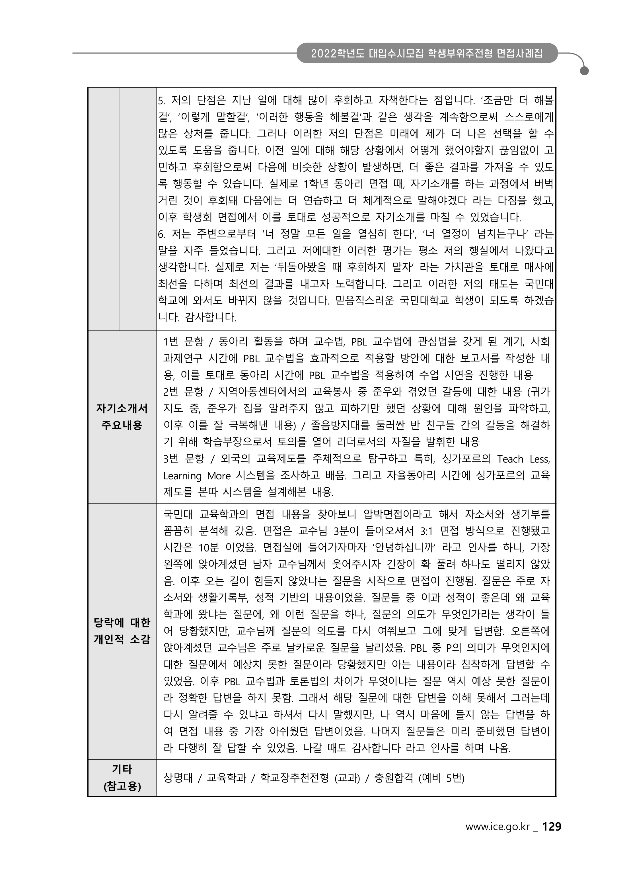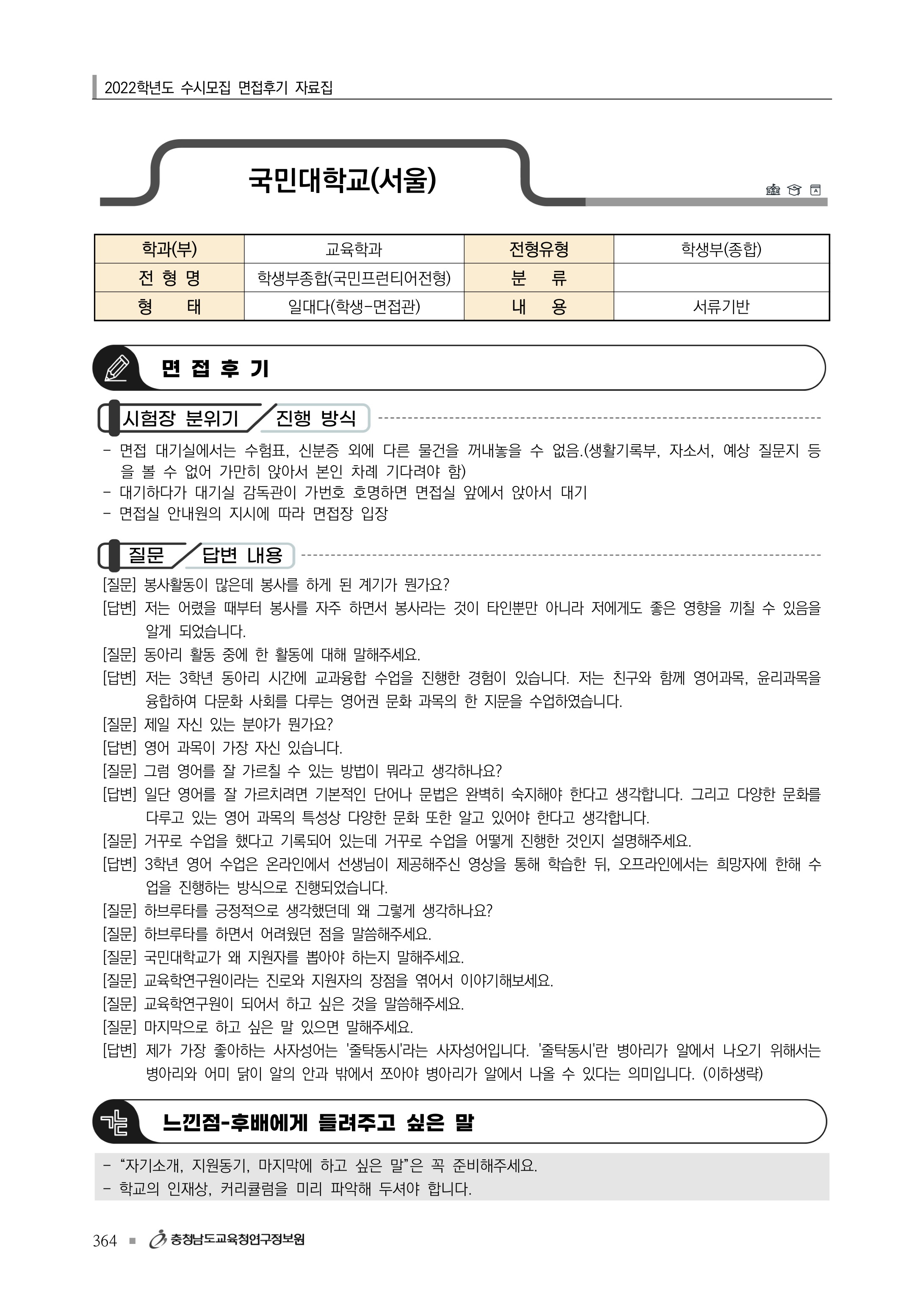 2022학년도 국민대학교 면접 후기4 - 교육학과 2022학년도 국민대학교 면접 후기5 - 교육학과