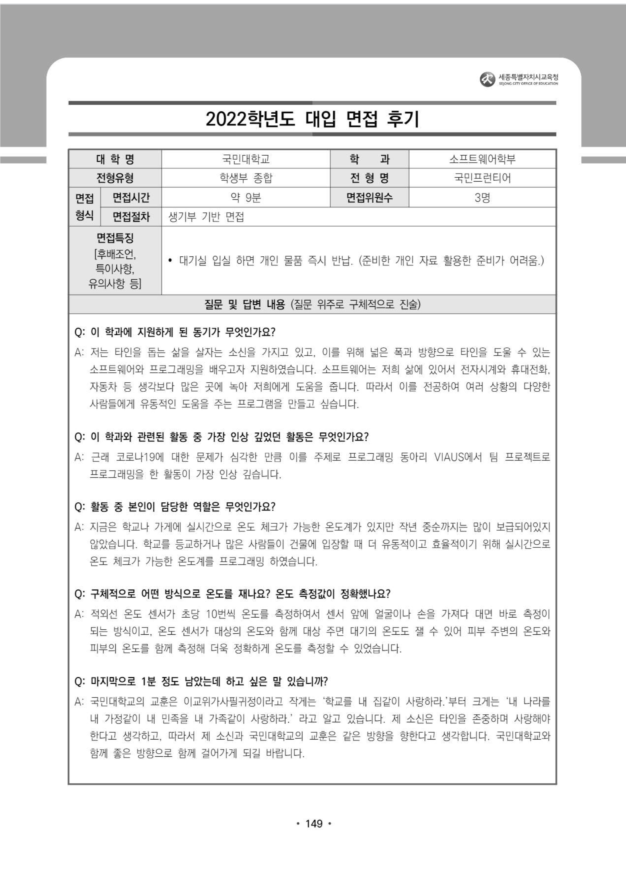 2022학년도 국민대학교 면접 후기14 - 산림환경시스템학과 2022학년도 국민대학교 면접 후기15 - 소프트웨어학부