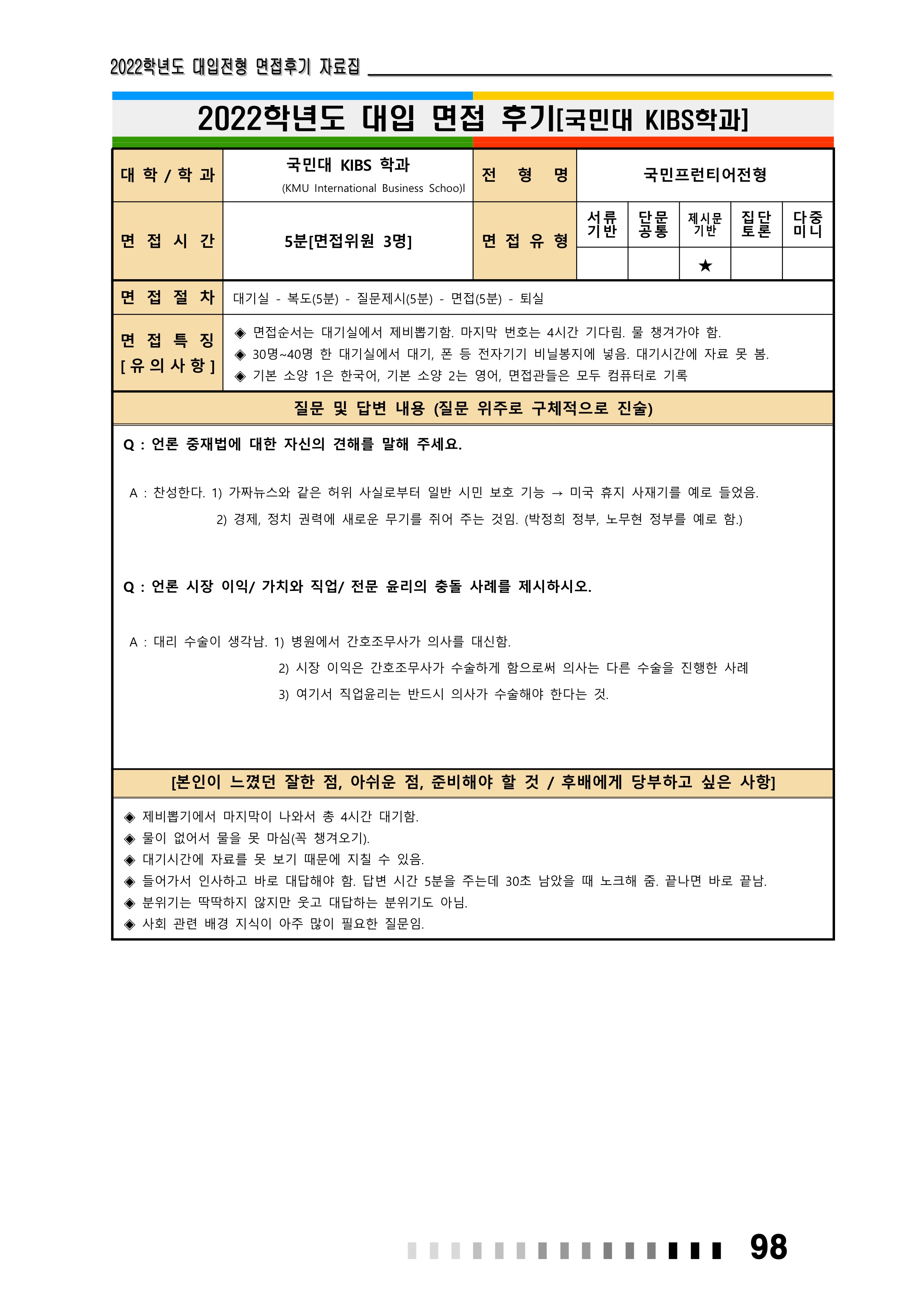2022학년도 국민대학교 면접 후기30 - 행정학과 2022학년도 국민대학교 면접 후기31 - KIBS전공