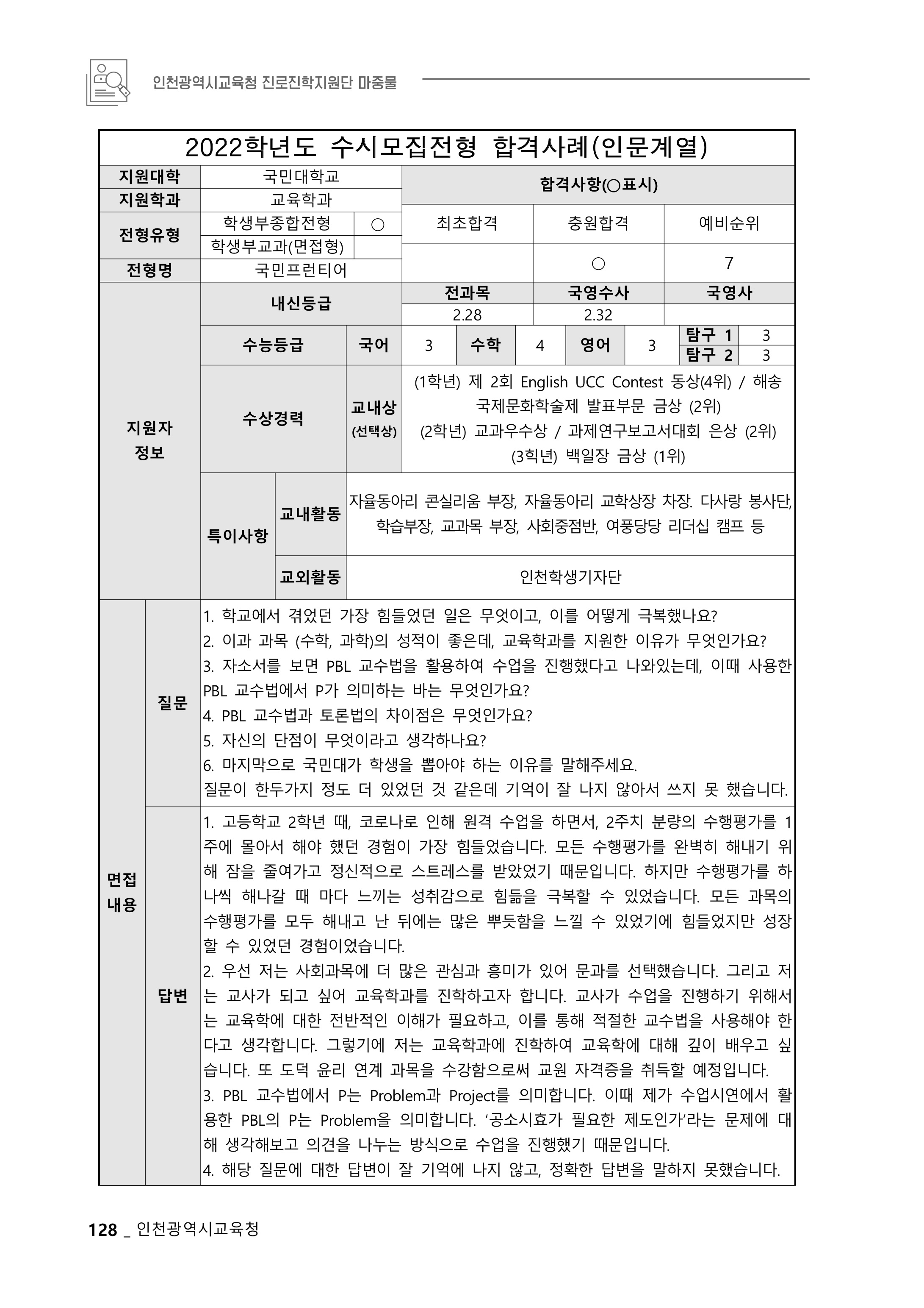 2022학년도 국민대학교 면접 후기5 - 교육학과 2022학년도 국민대학교 면접 후기6 - 국어국문학과
