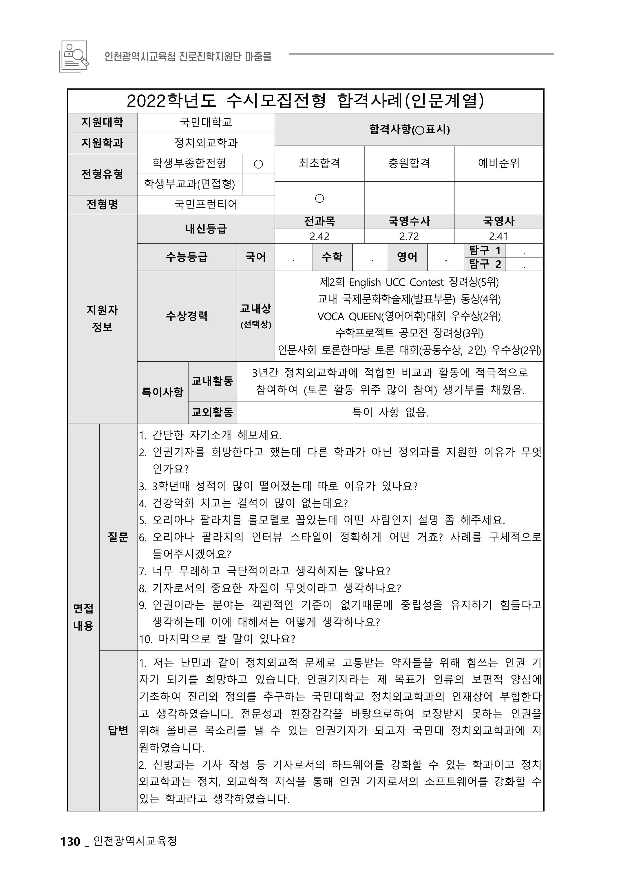 2022학년도 국민대학교 면접 후기28 - 정치외교학과