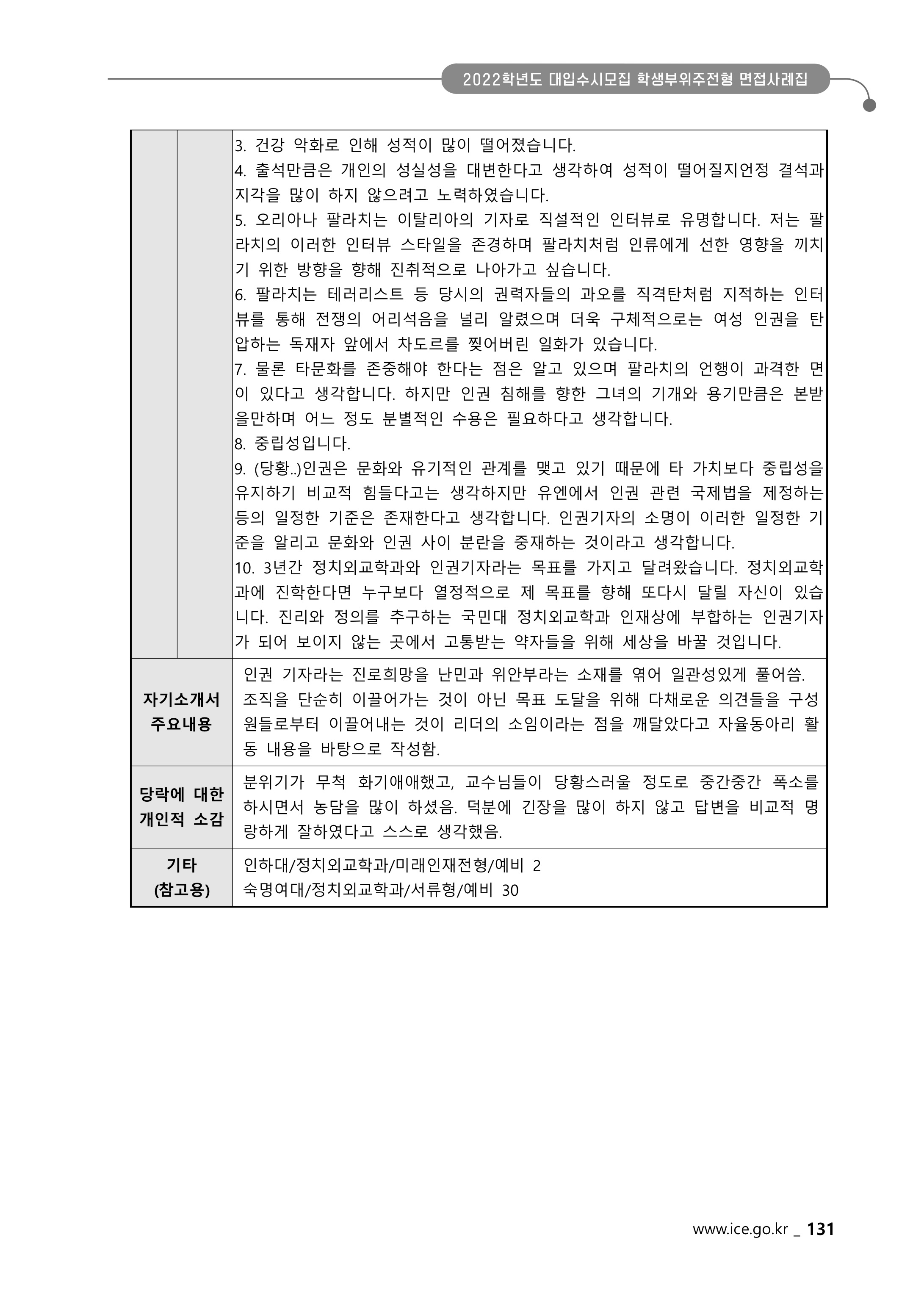 2022학년도 국민대학교 면접 후기27 - 전자공학과 2022학년도 국민대학교 면접 후기28 - 정치외교학과