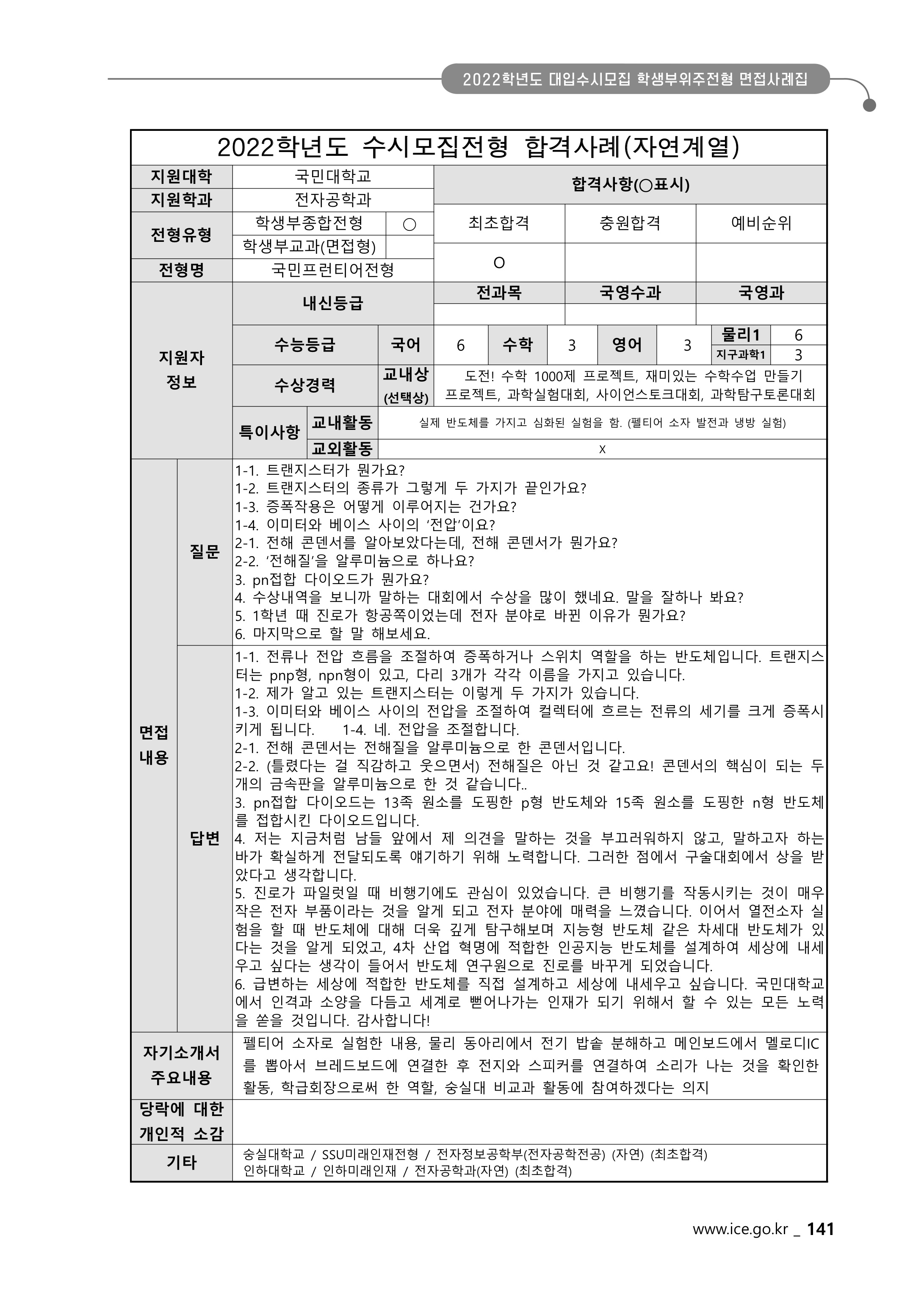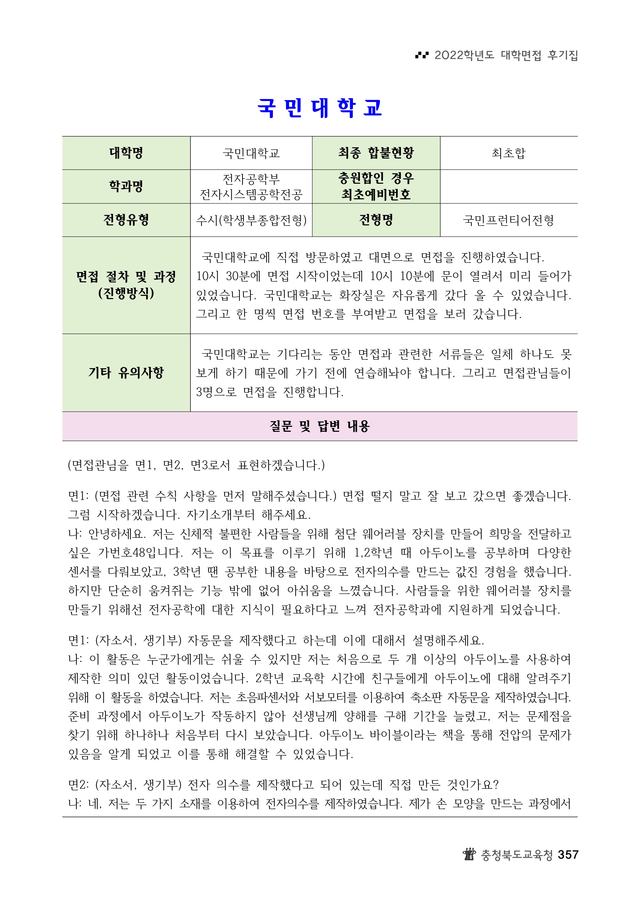 2022학년도 국민대학교 면접 후기27 - 전자공학과