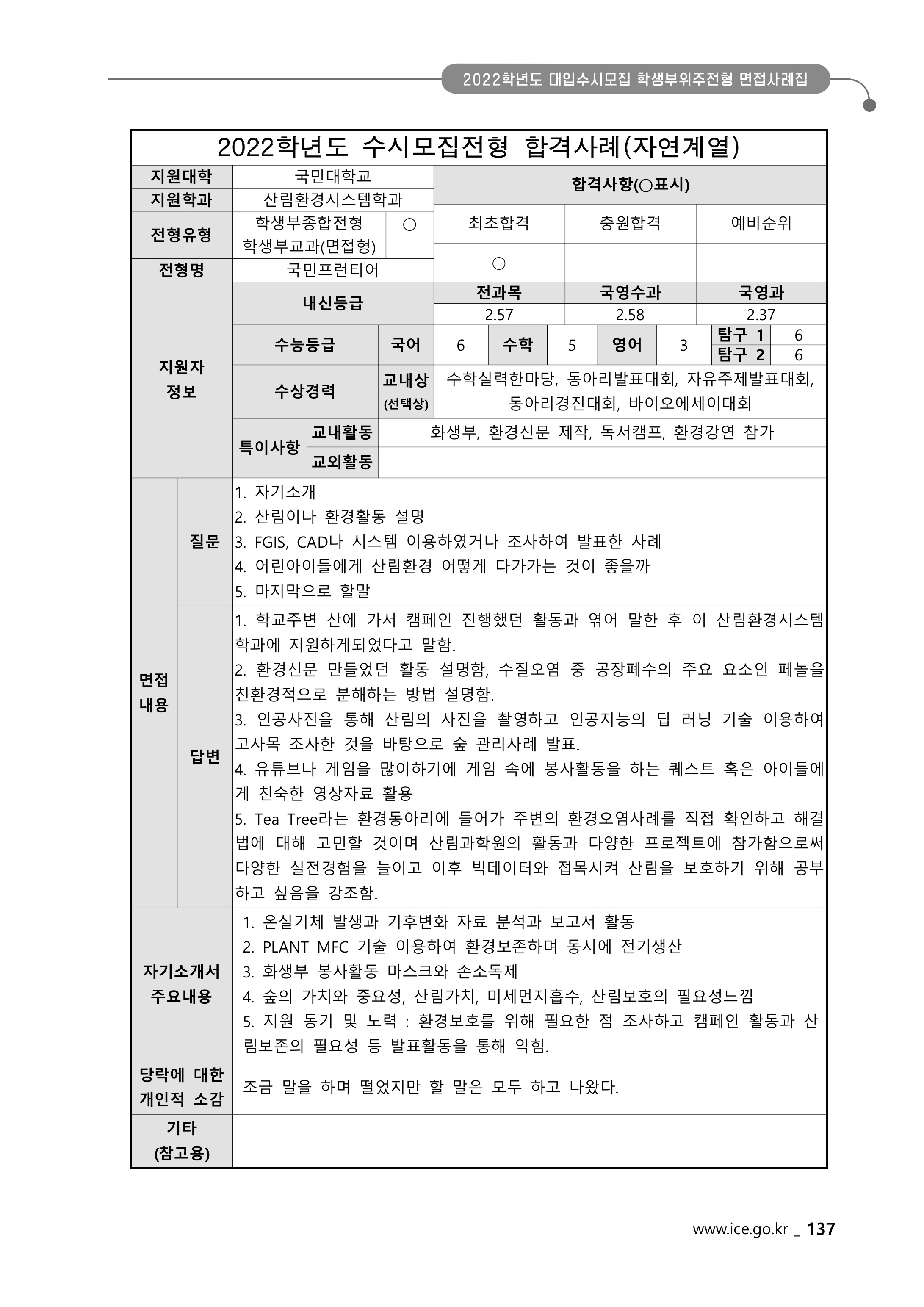 2022학년도 국민대학교 면접 후기13 - 법학부 2022학년도 국민대학교 면접 후기14 - 산림환경시스템학과