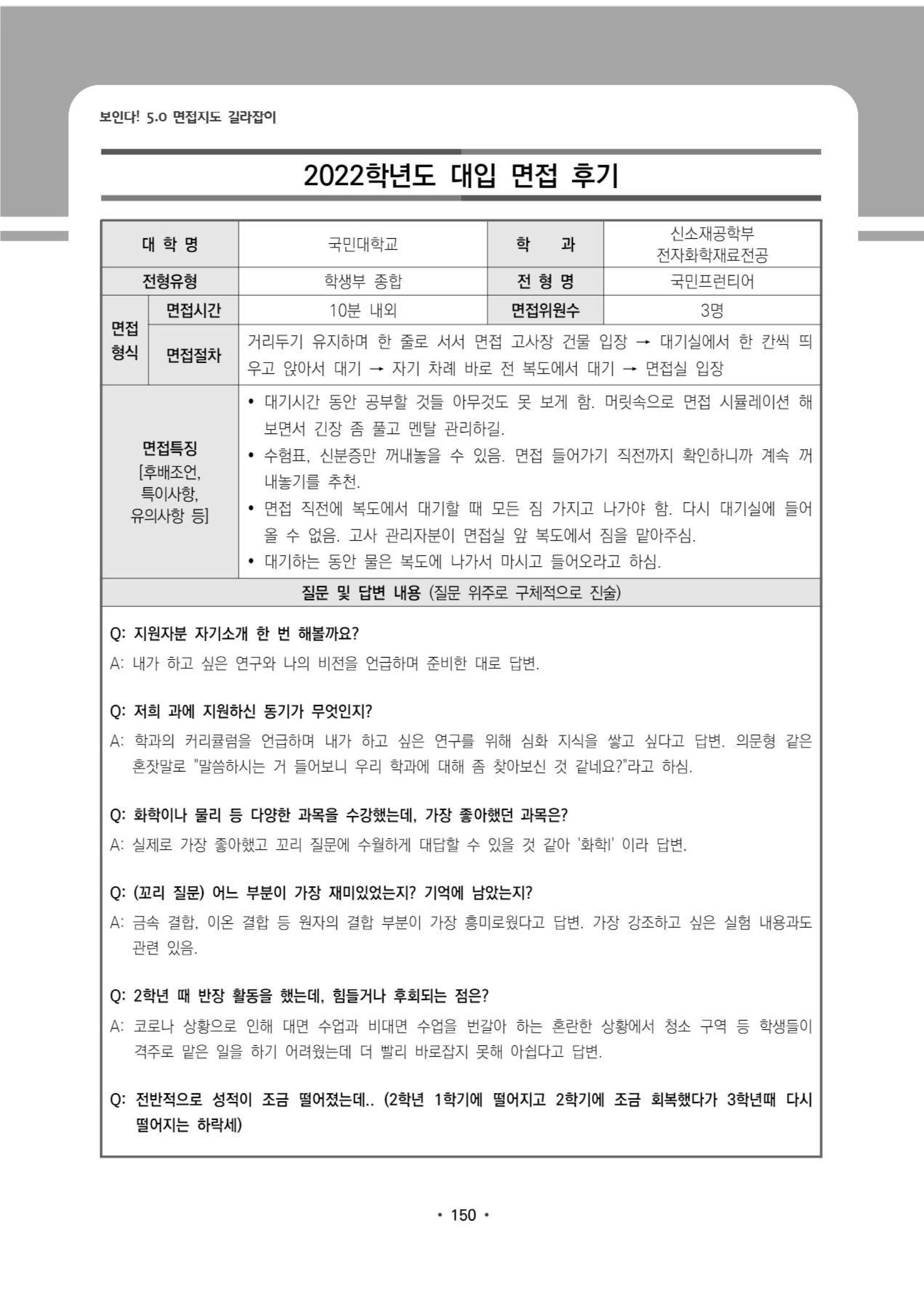 2022학년도 국민대학교 면접 후기20 - 신소재공학부