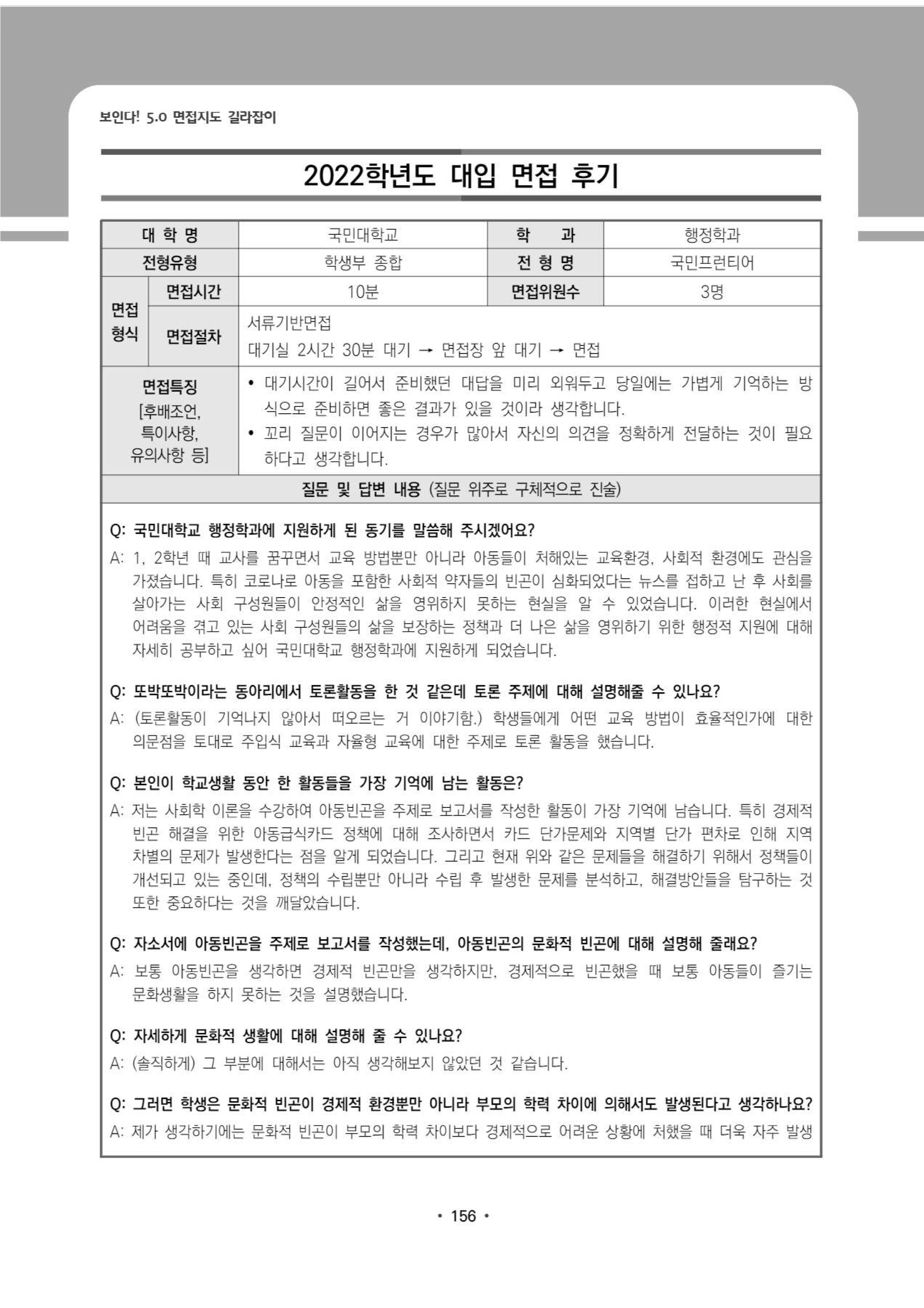 2022학년도 국민대학교 면접 후기30 - 행정학과