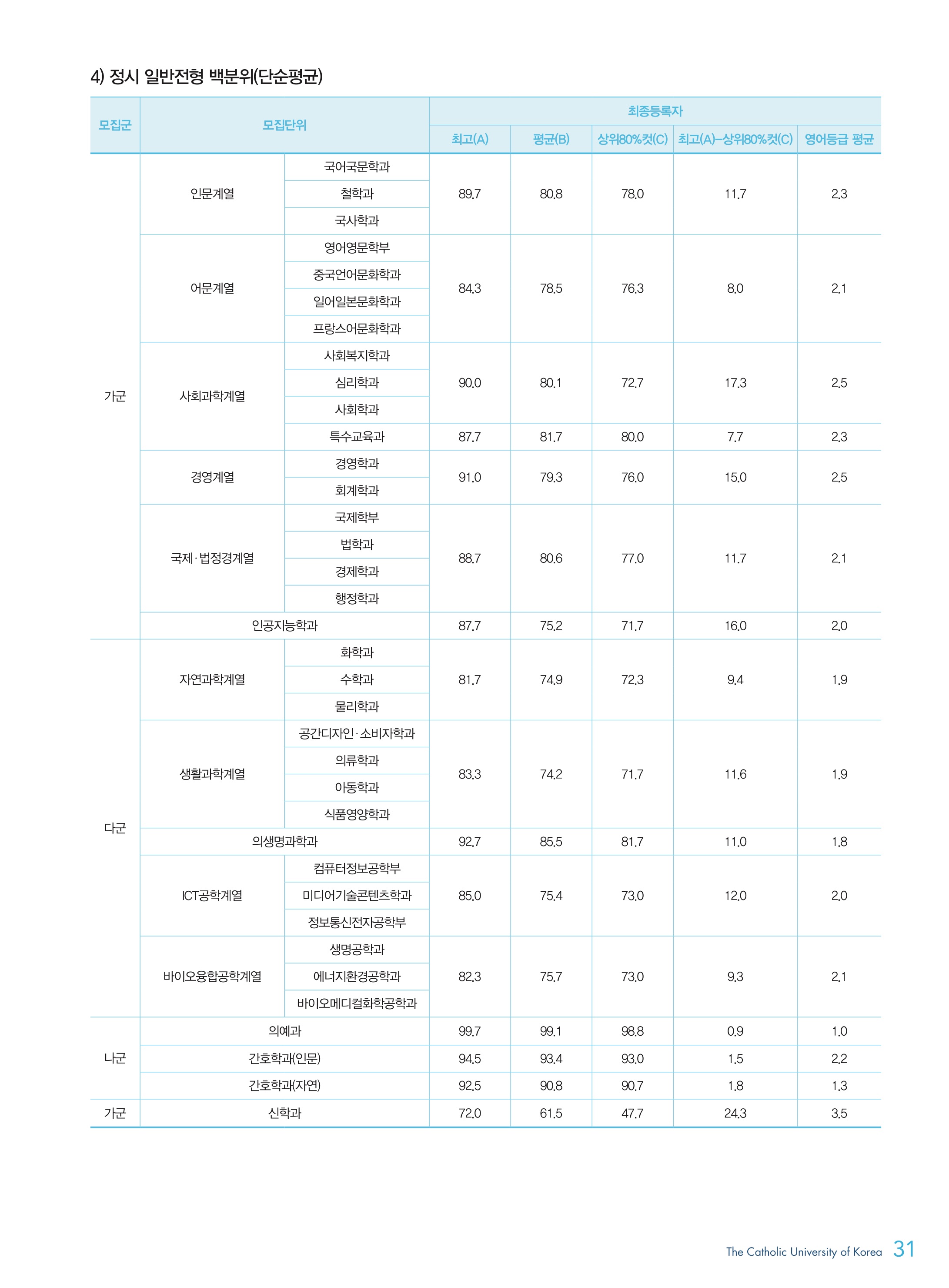 2021학년도 가톨릭대학교 정시등급