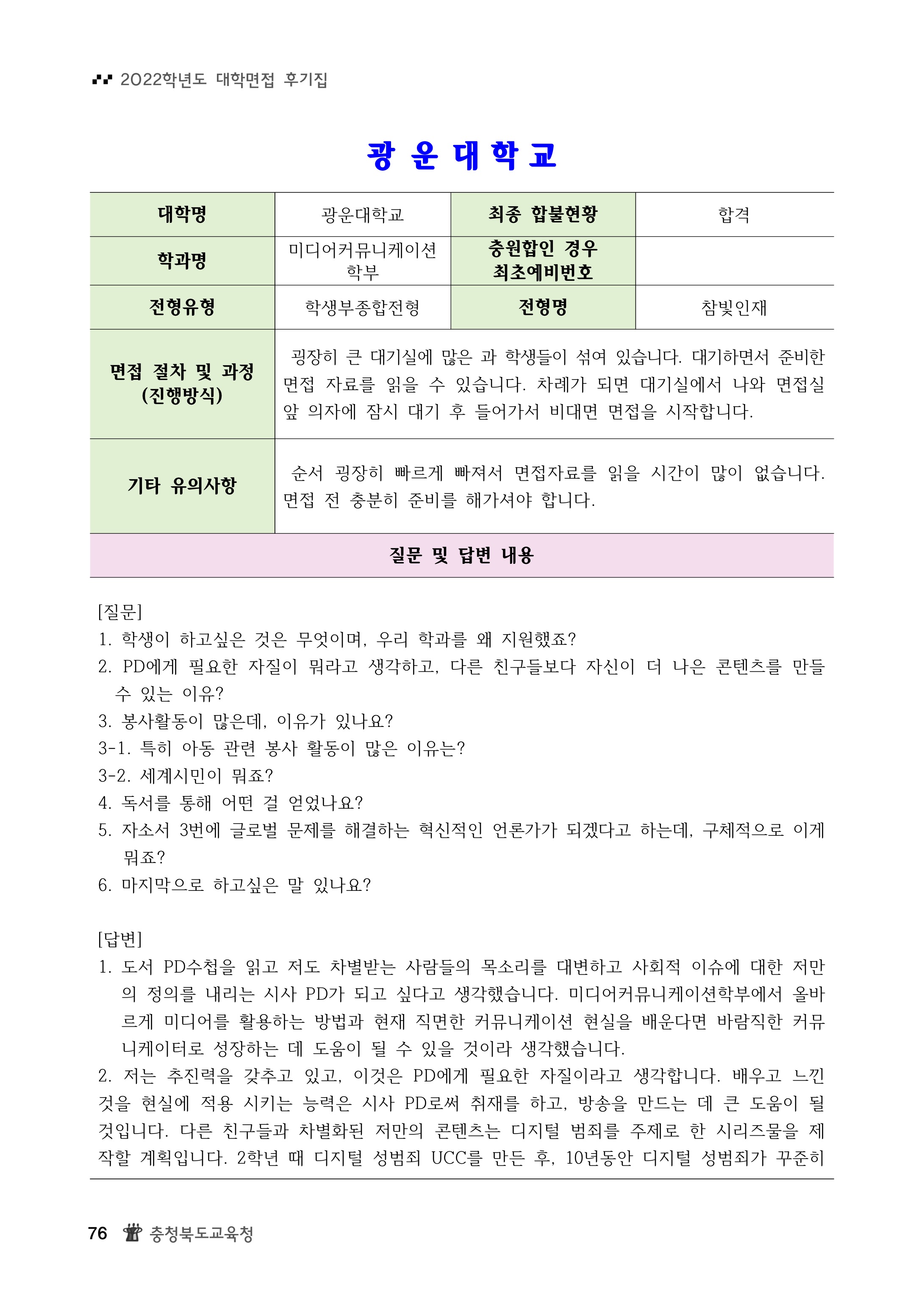2022학년도 광운대학교 면접 후기8 - 미디어커뮤니케이션학부