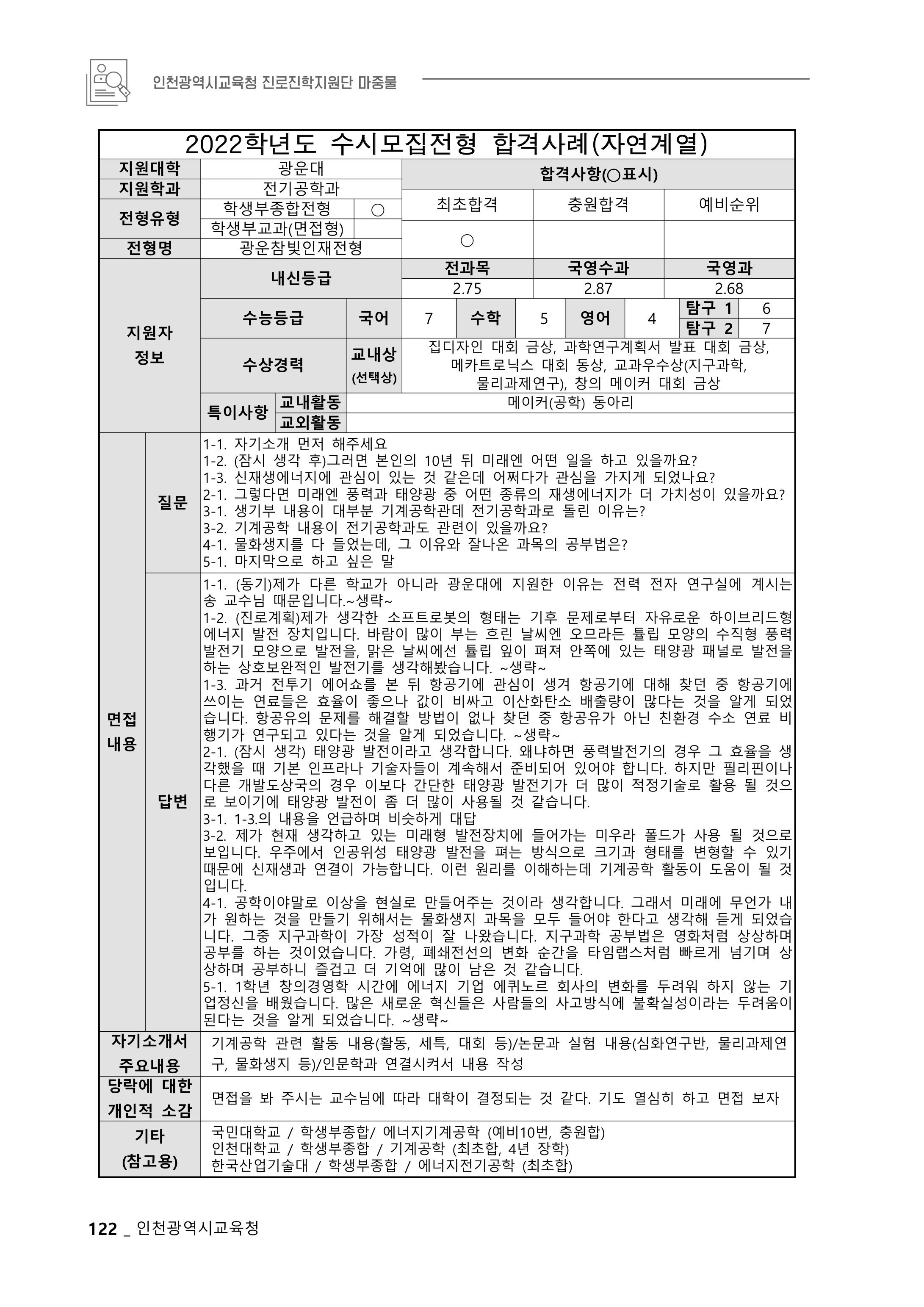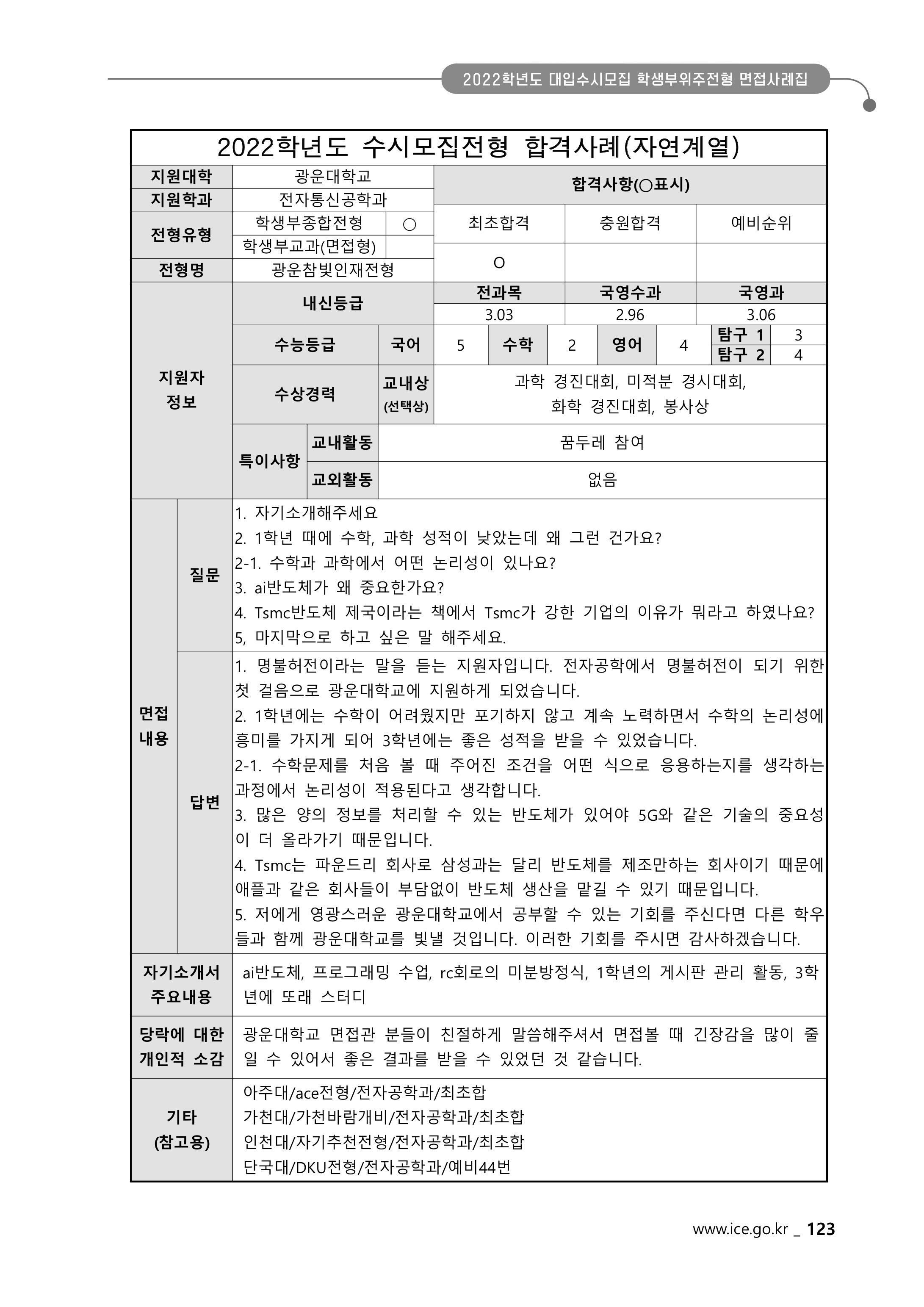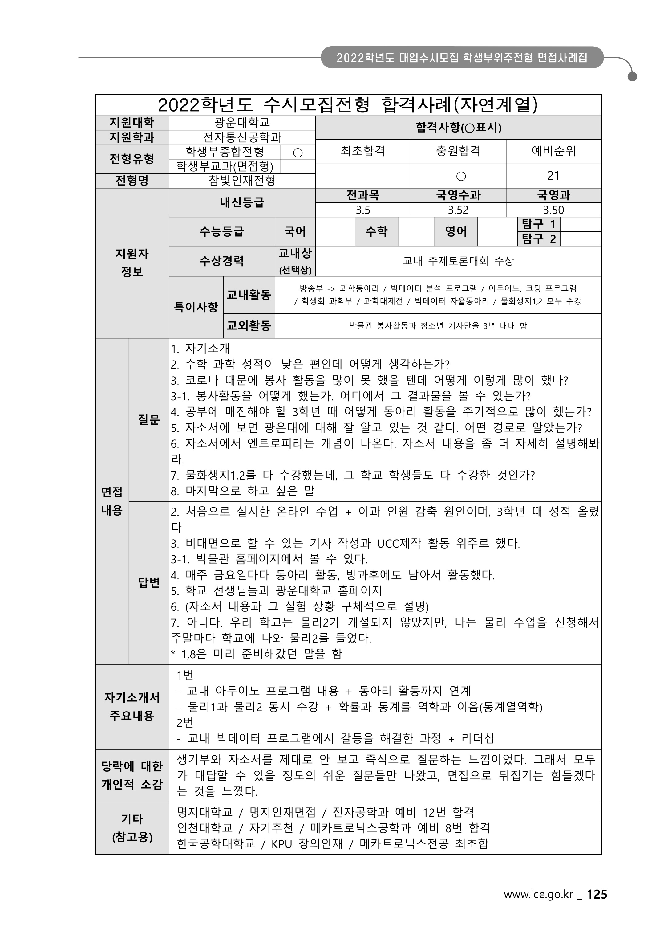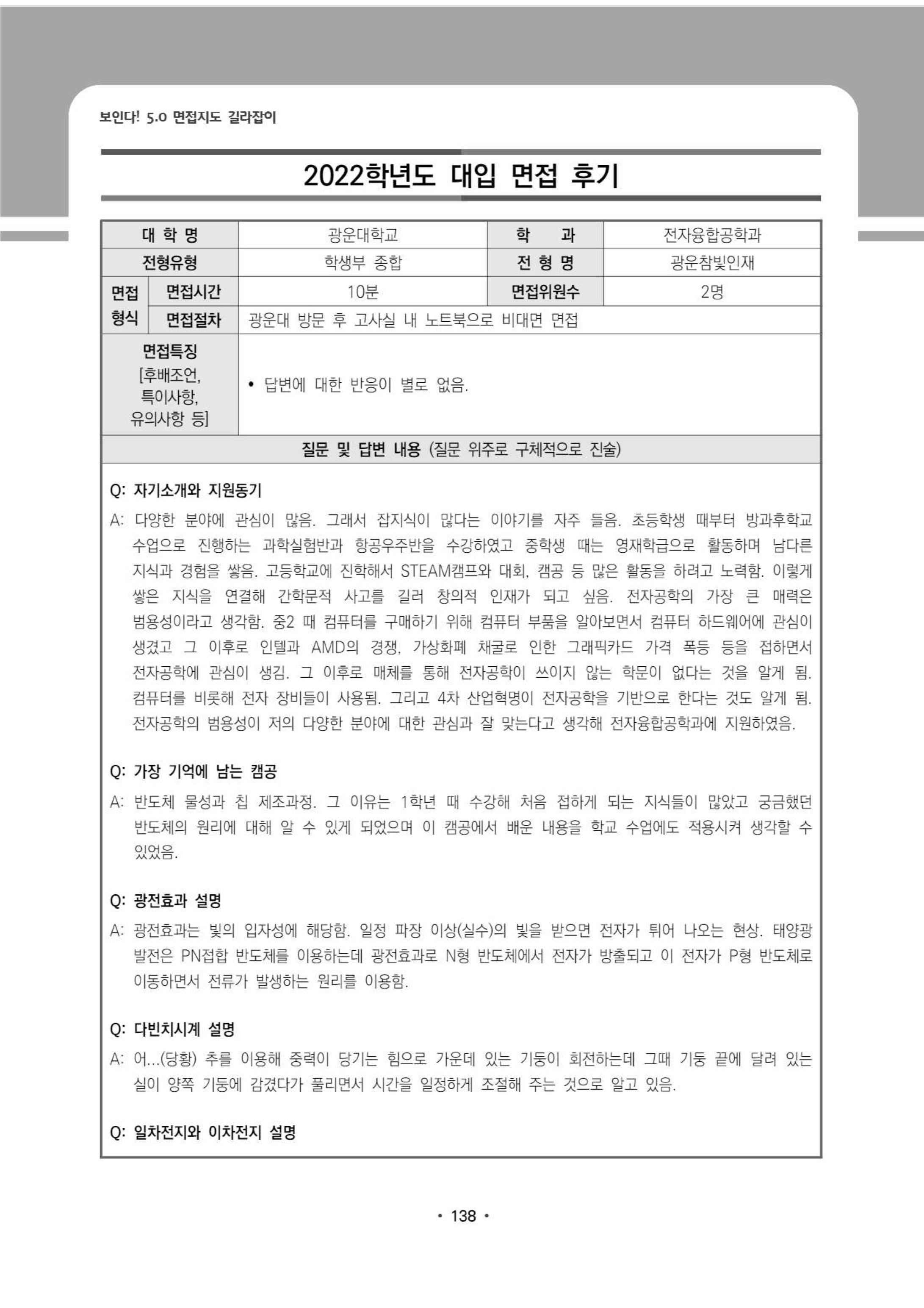 2022학년도 광운대학교 면접 후기19 - 전자융합공학과 2022학년도 광운대학교 면접 후기20 - 전자재료공학과