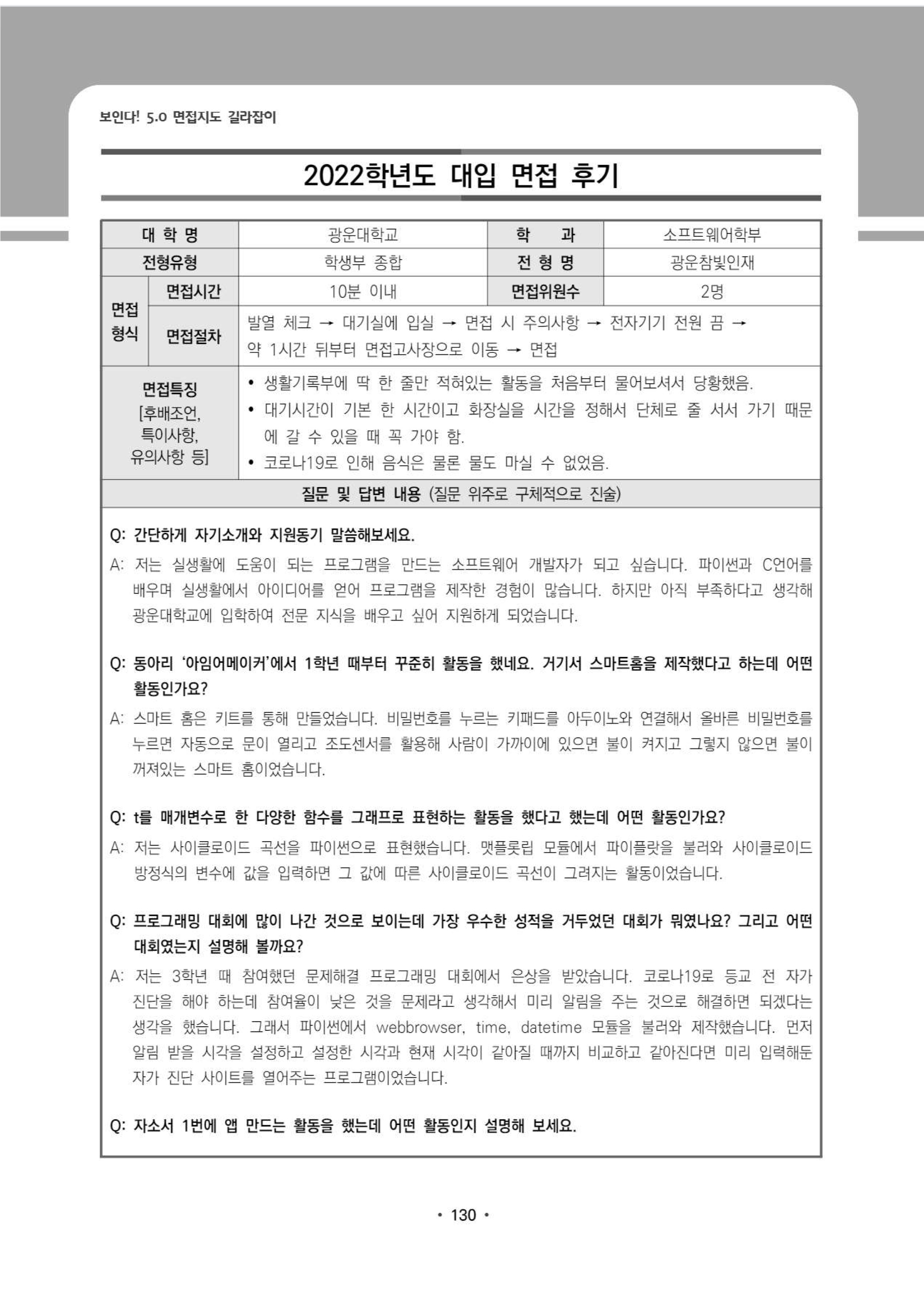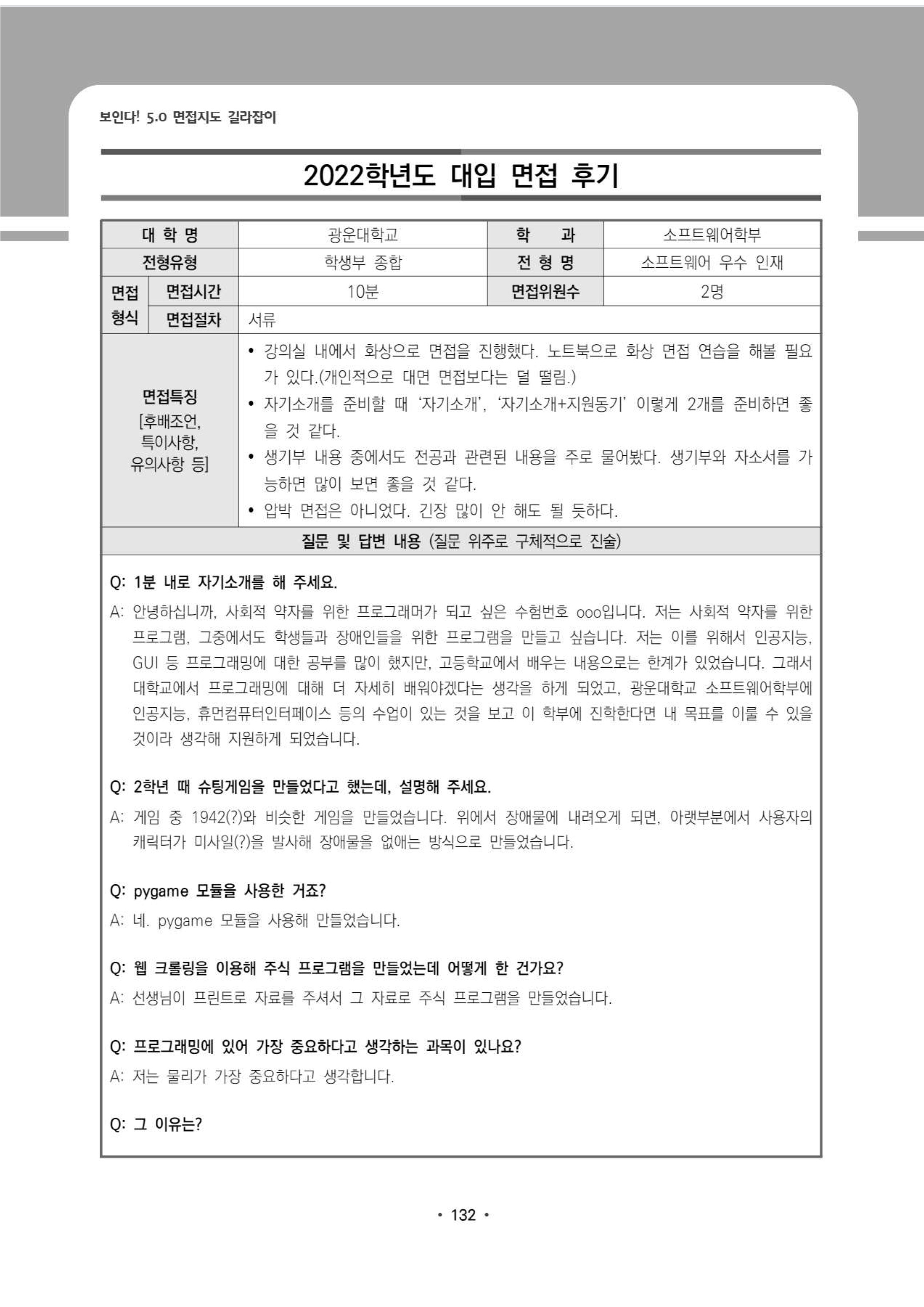 2022학년도 광운대학교 면접 후기11 - 소프트웨어학부