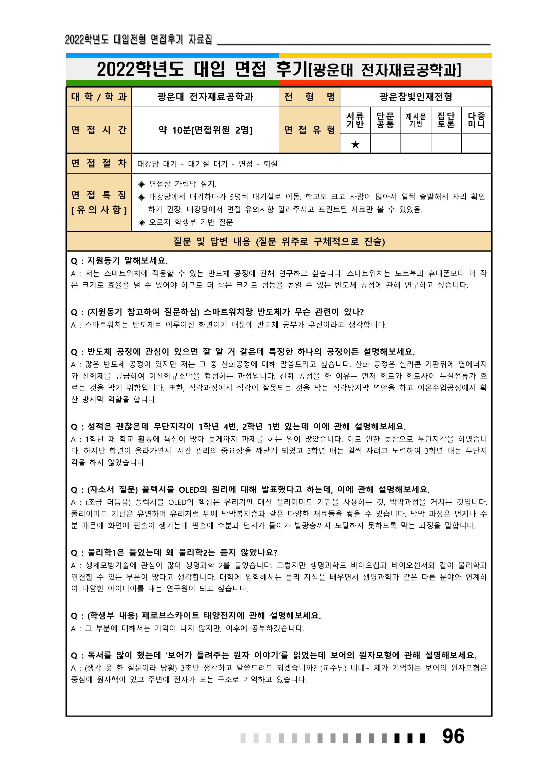 2022학년도 광운대학교 면접 후기20 - 전자재료공학과