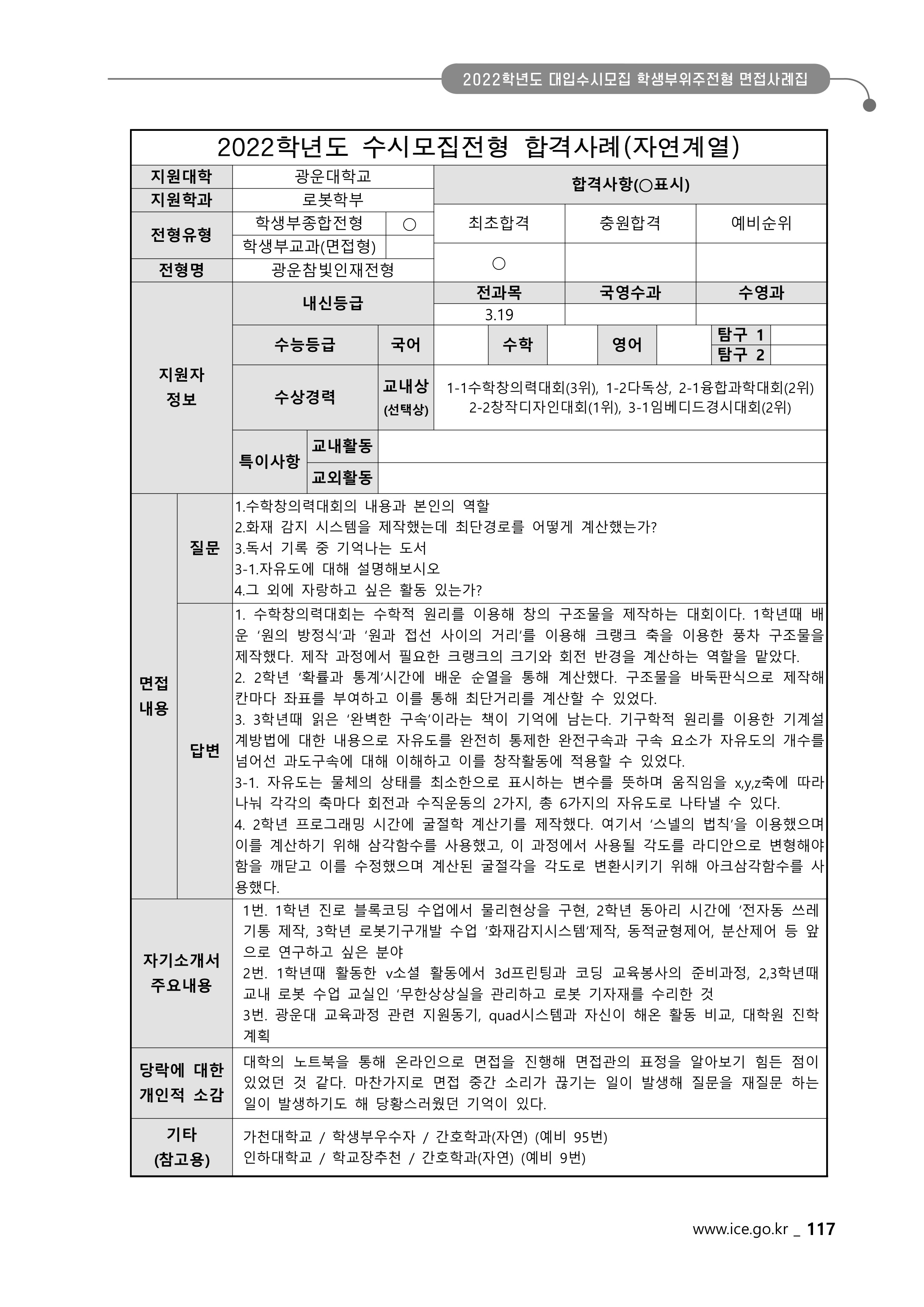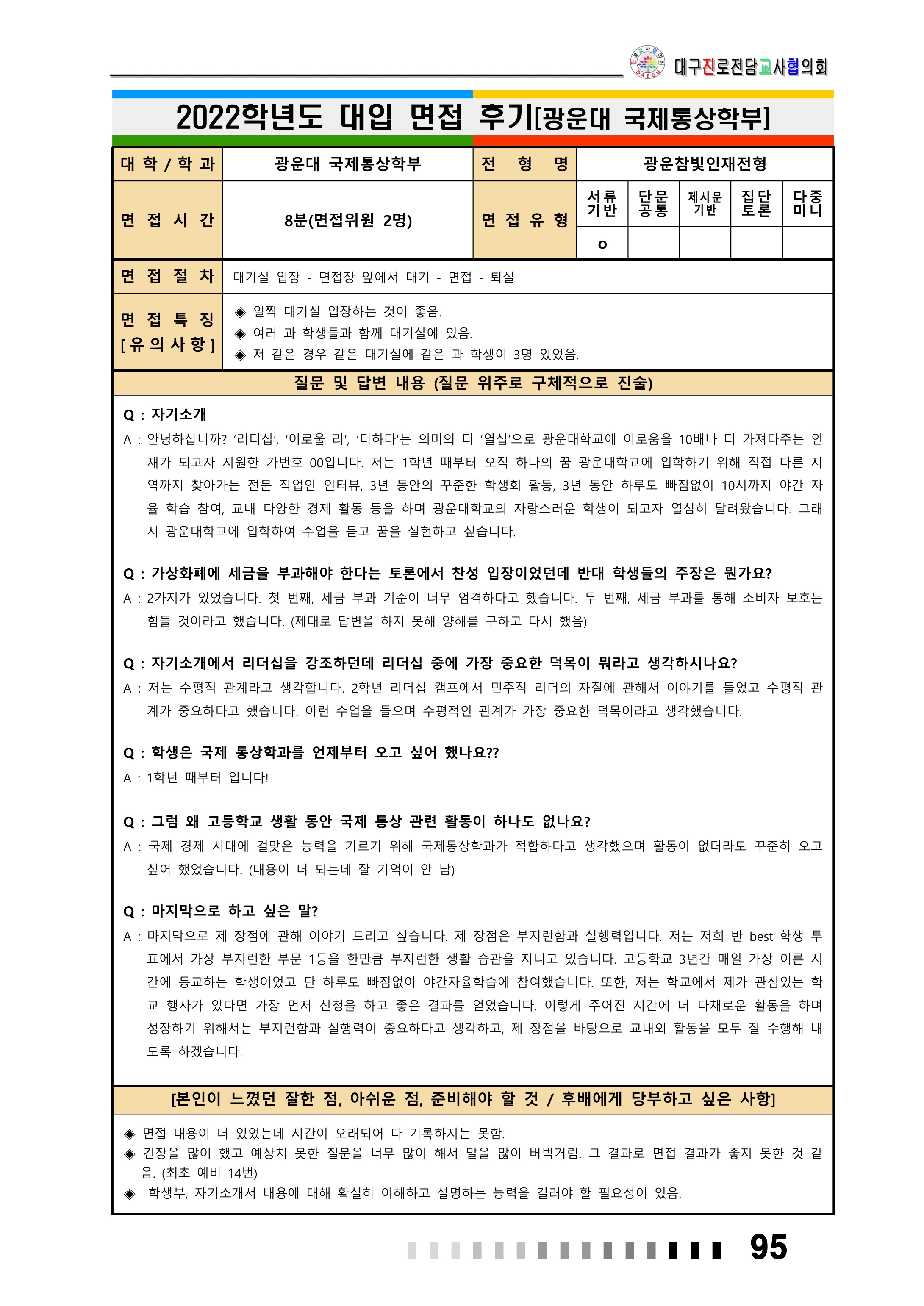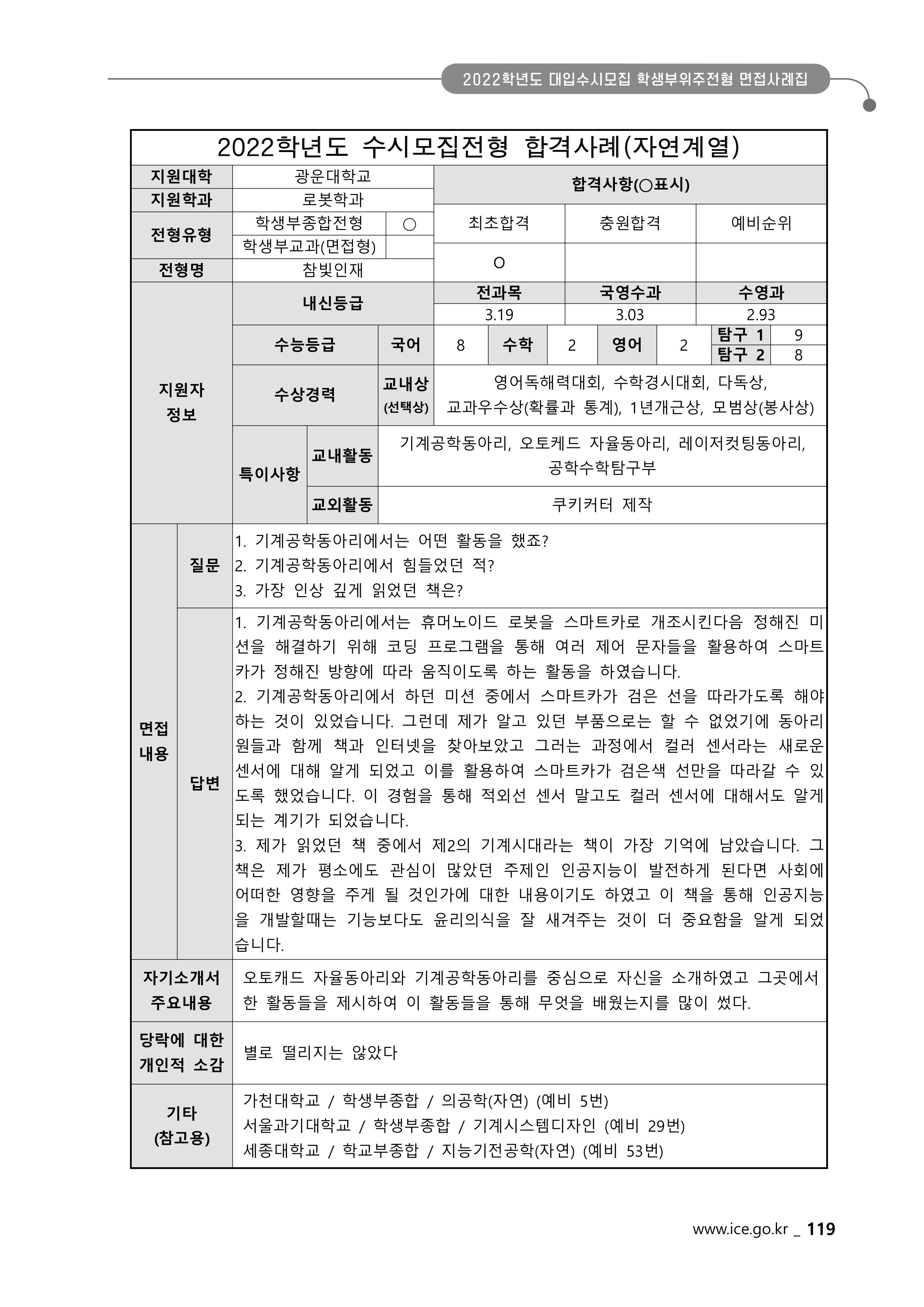 2022학년도 광운대학교 면접 후기4 - 국제통상학부 2022학년도 광운대학교 면접 후기5 - 로봇학부