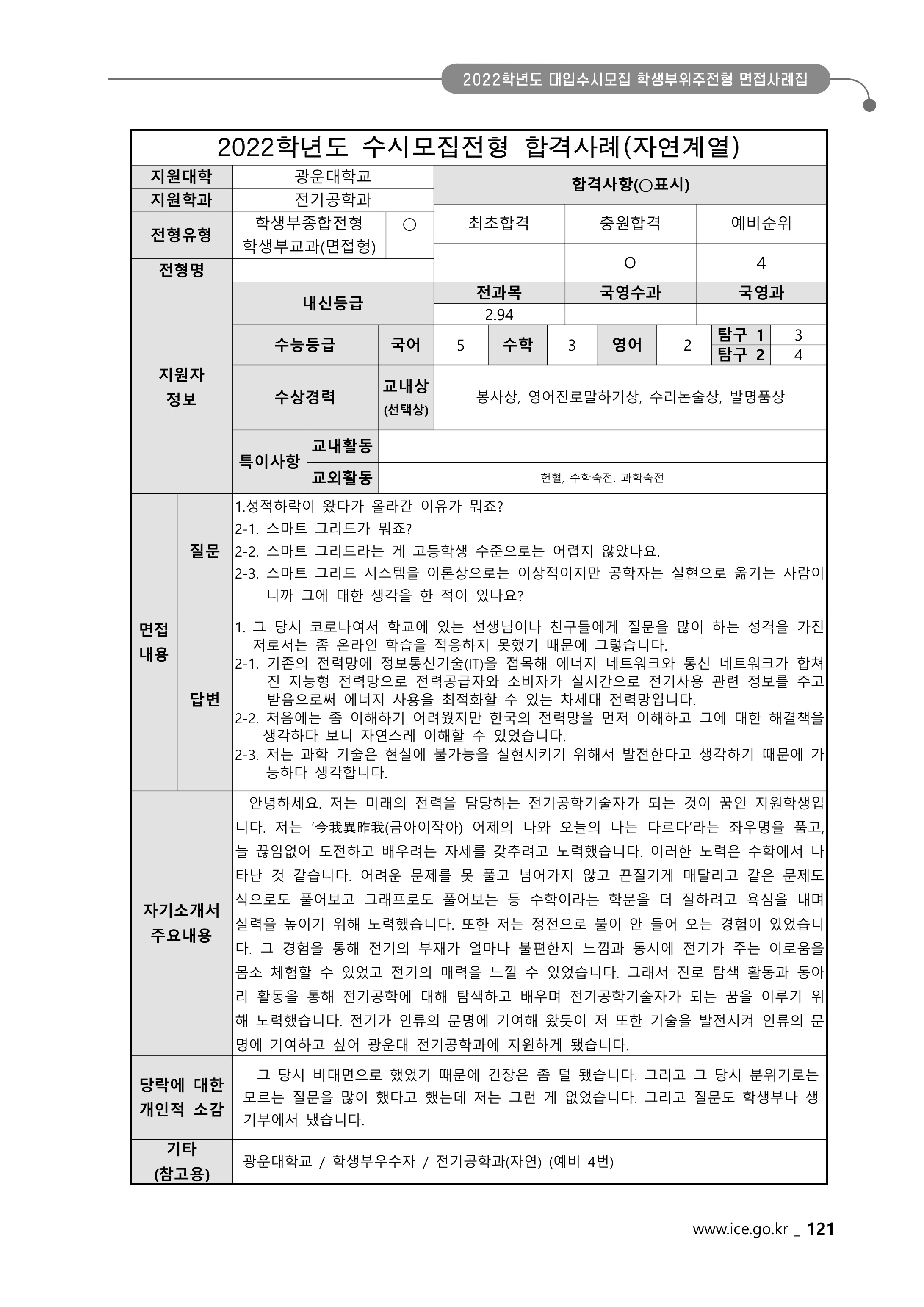 2022학년도 광운대학교 면접 후기15 - 전기공학과 2022학년도 광운대학교 면접 후기16 - 전기공학과