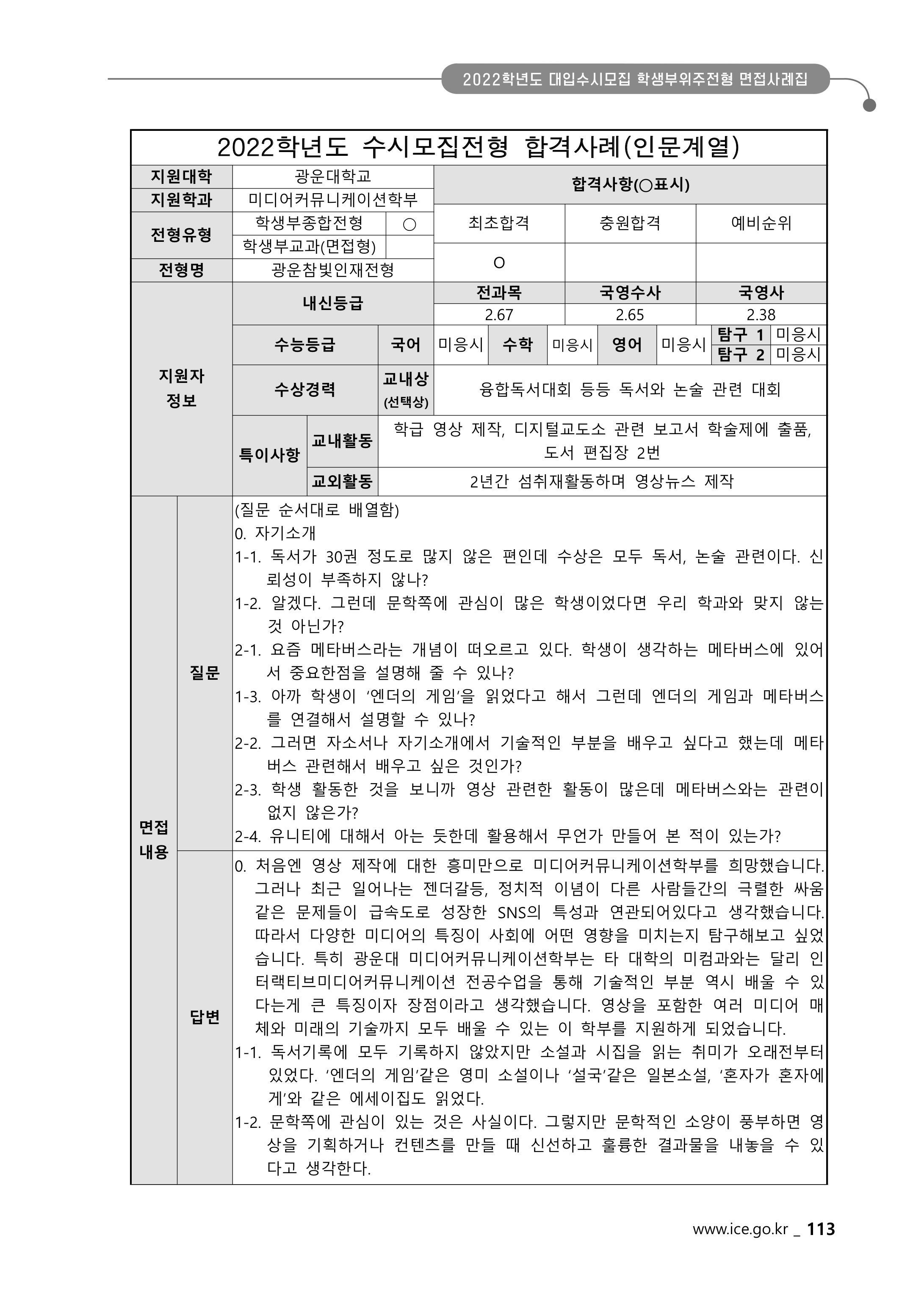 2022학년도 광운대학교 면접 후기9 - 미디어커뮤니케이션학부