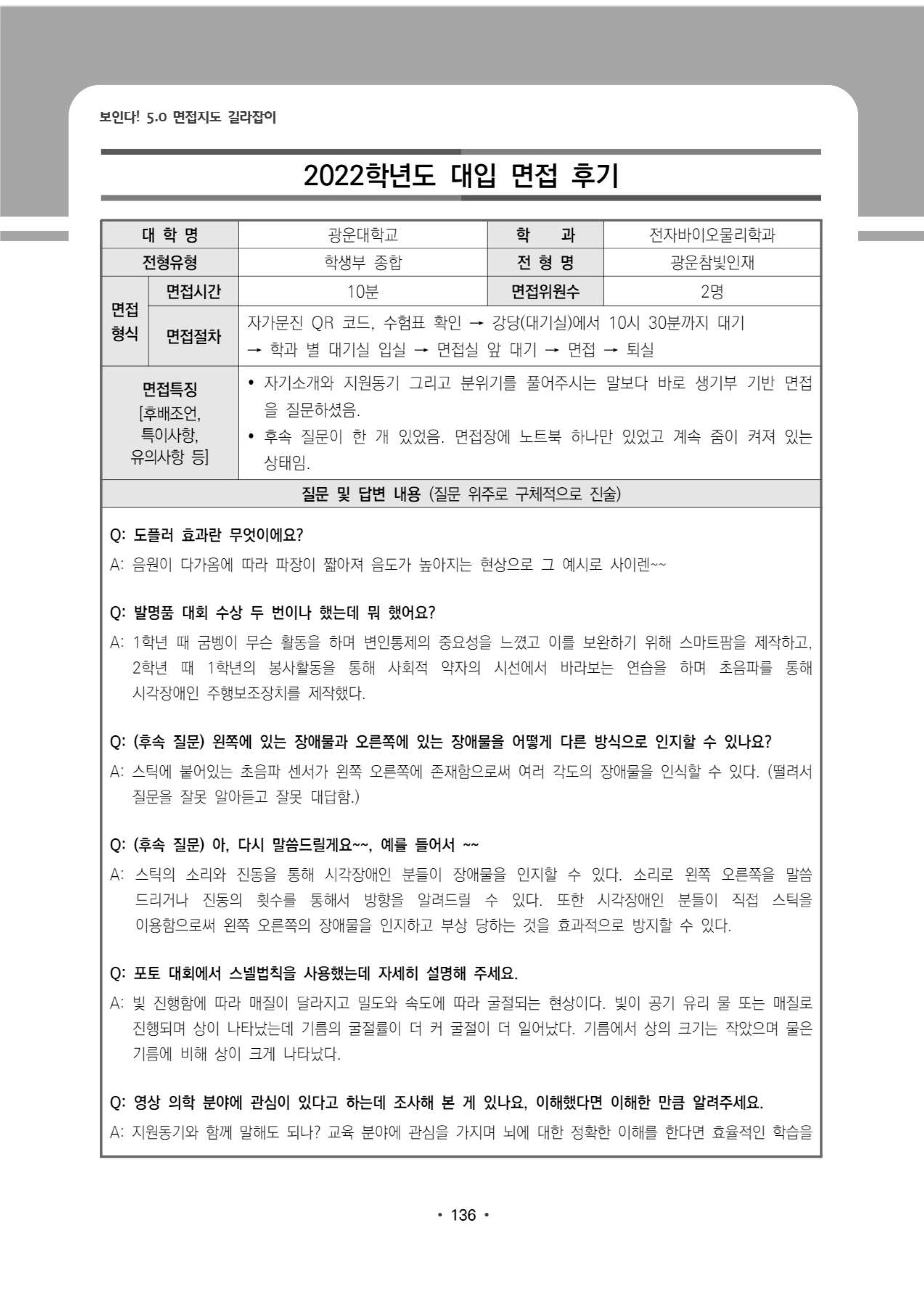 2022학년도 광운대학교 면접 후기17 - 전자바이오물리학과
