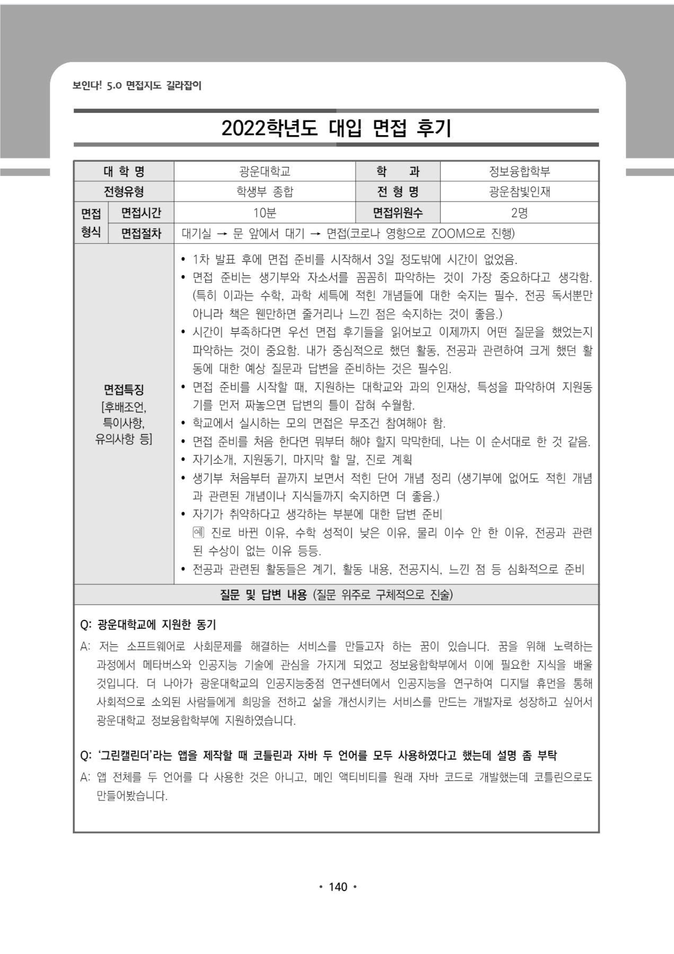 2022학년도 광운대학교 면접 후기24 - 정보융합학부