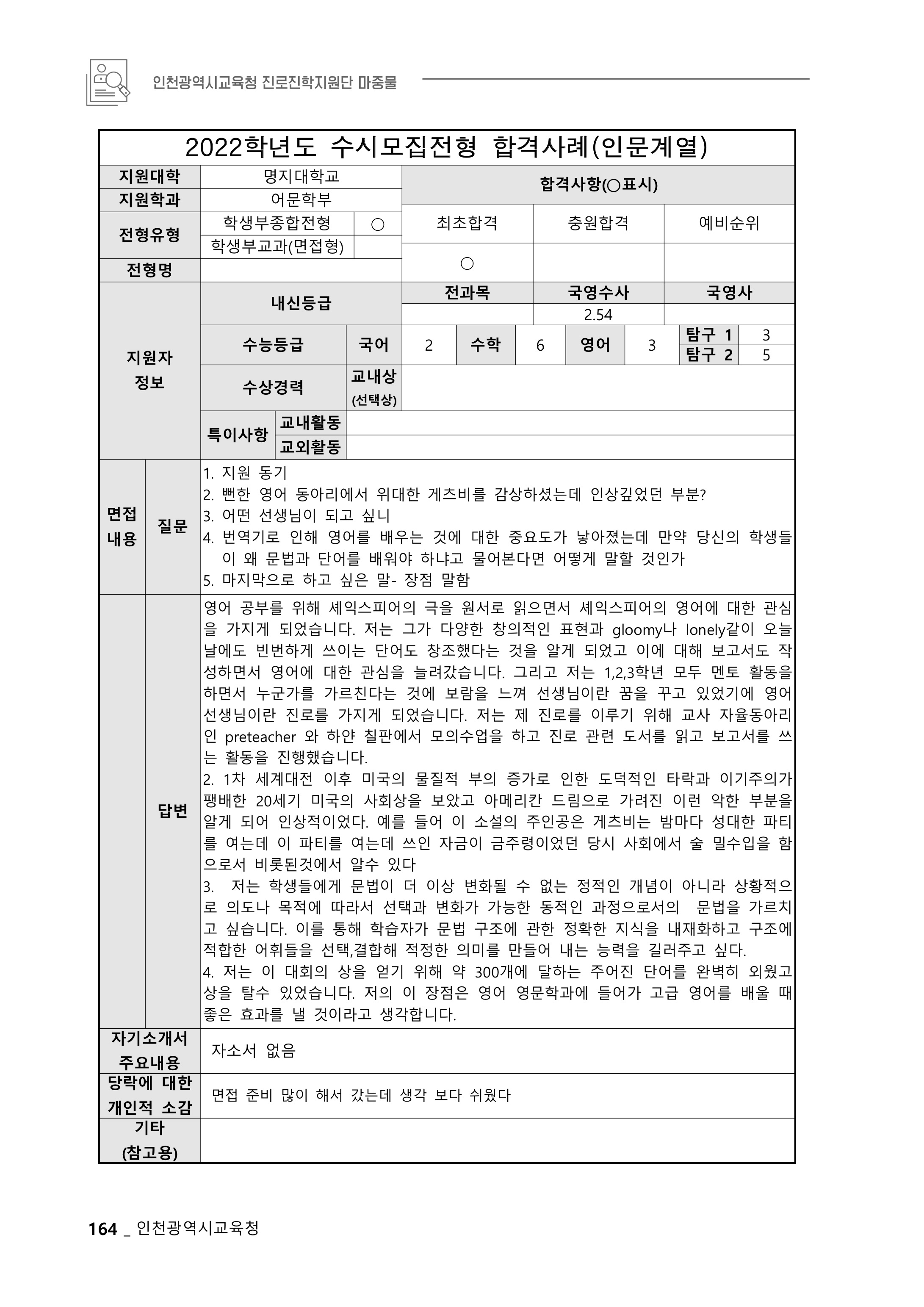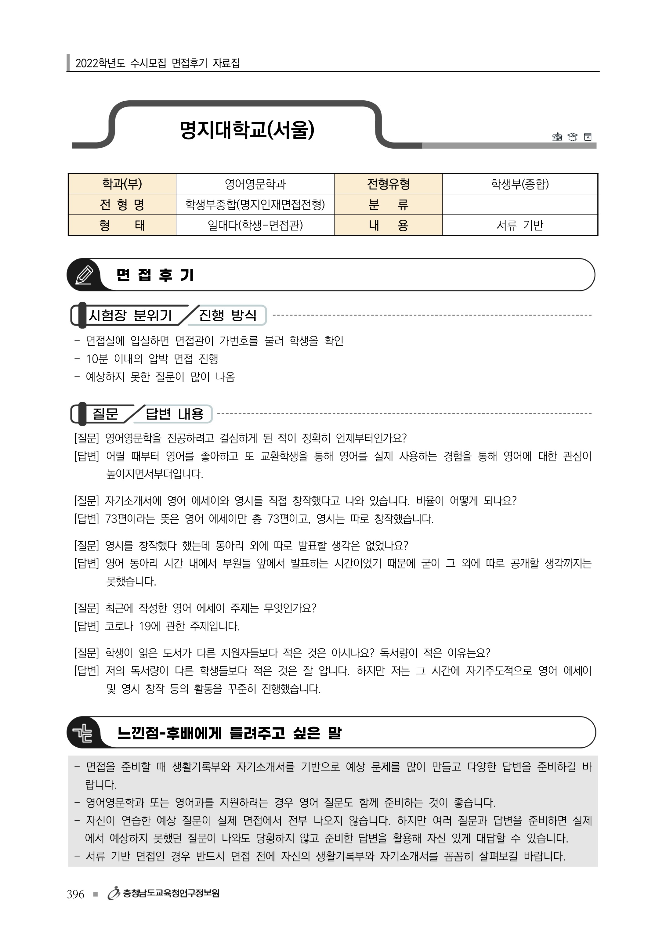 2022학년도 명지대학교 면접 후기20 - 인문학부