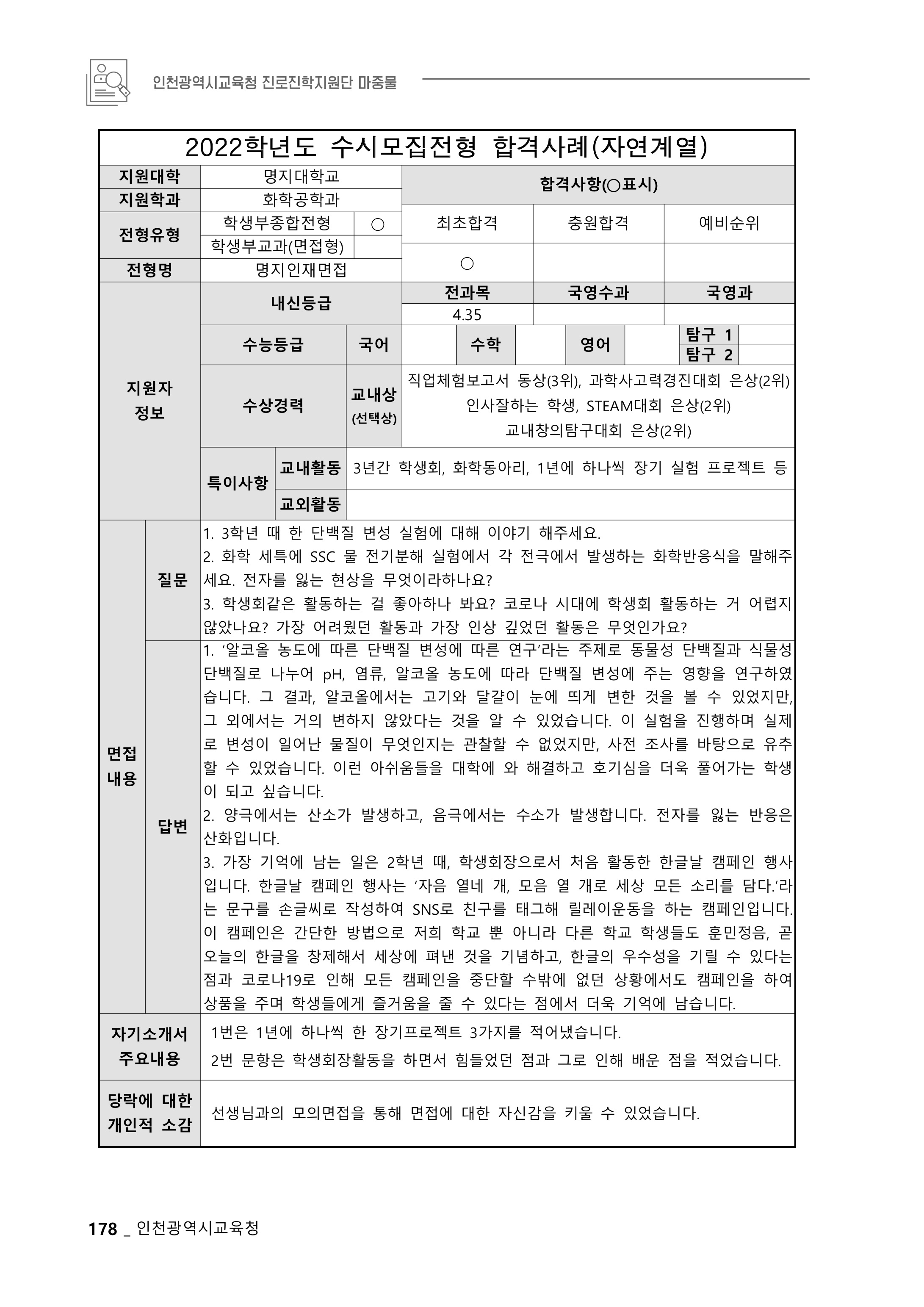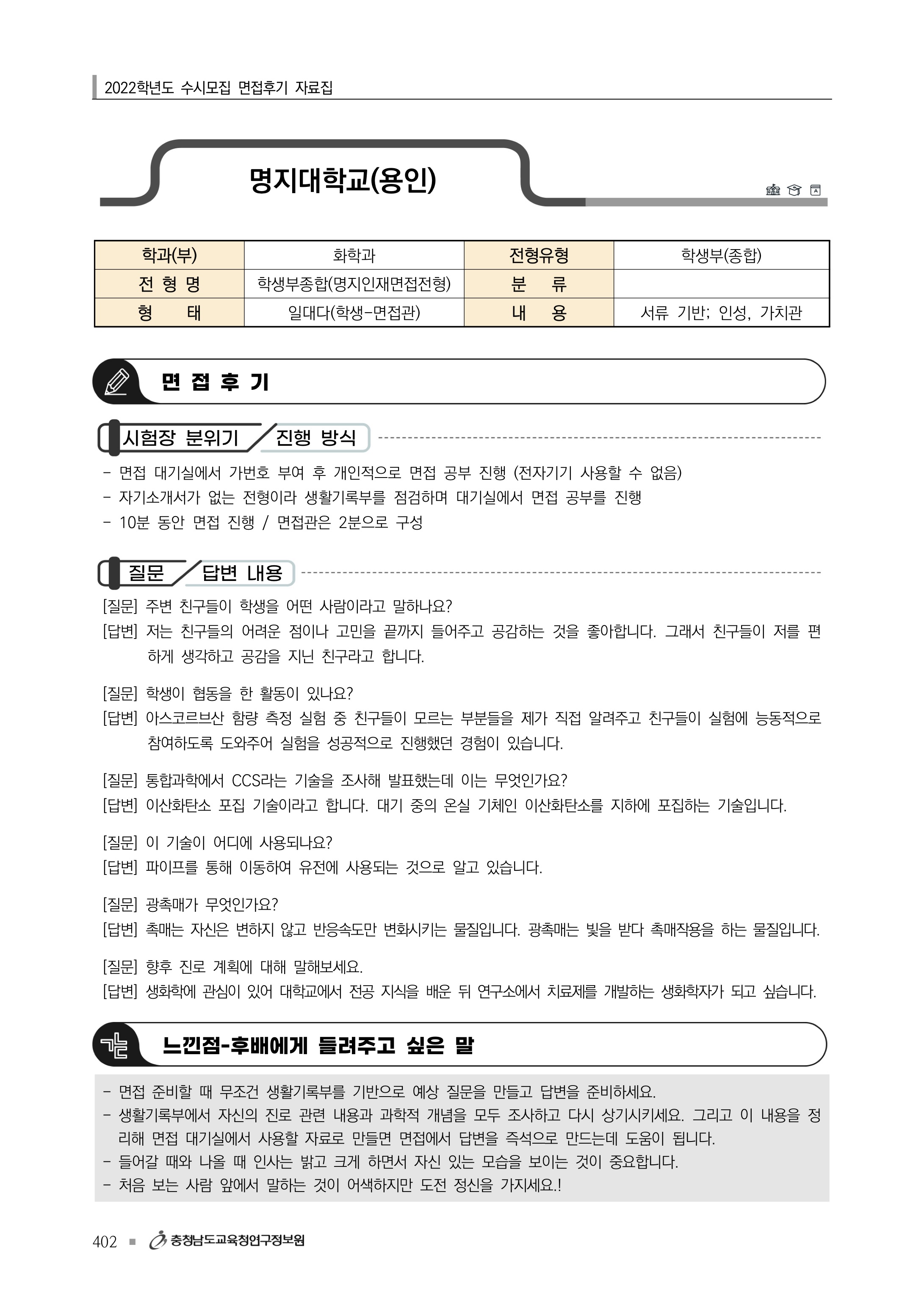 2022학년도 명지대학교 면접 후기34 - 화학과 2022학년도 명지대학교 면접 후기35 - 환경에너지공학과