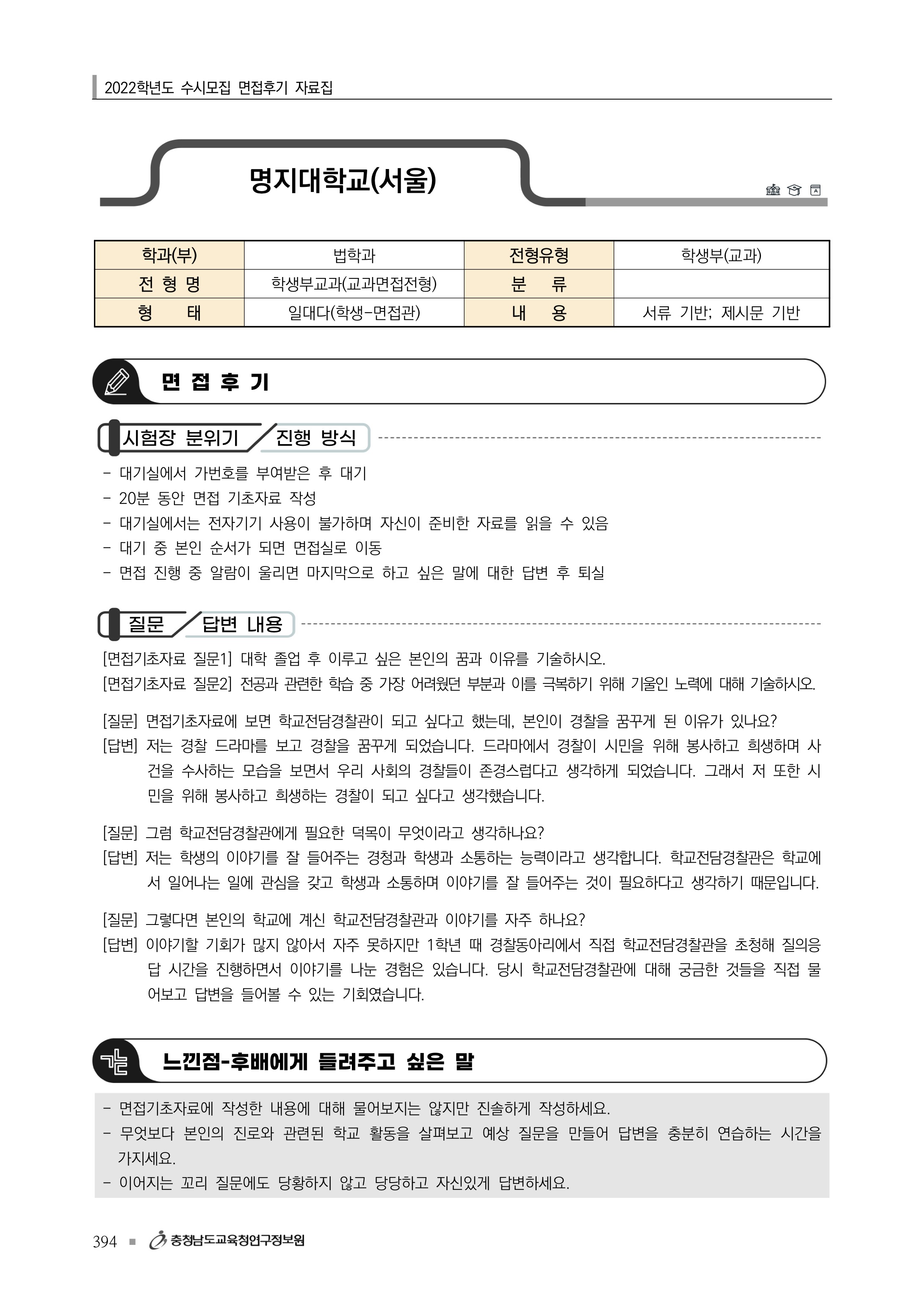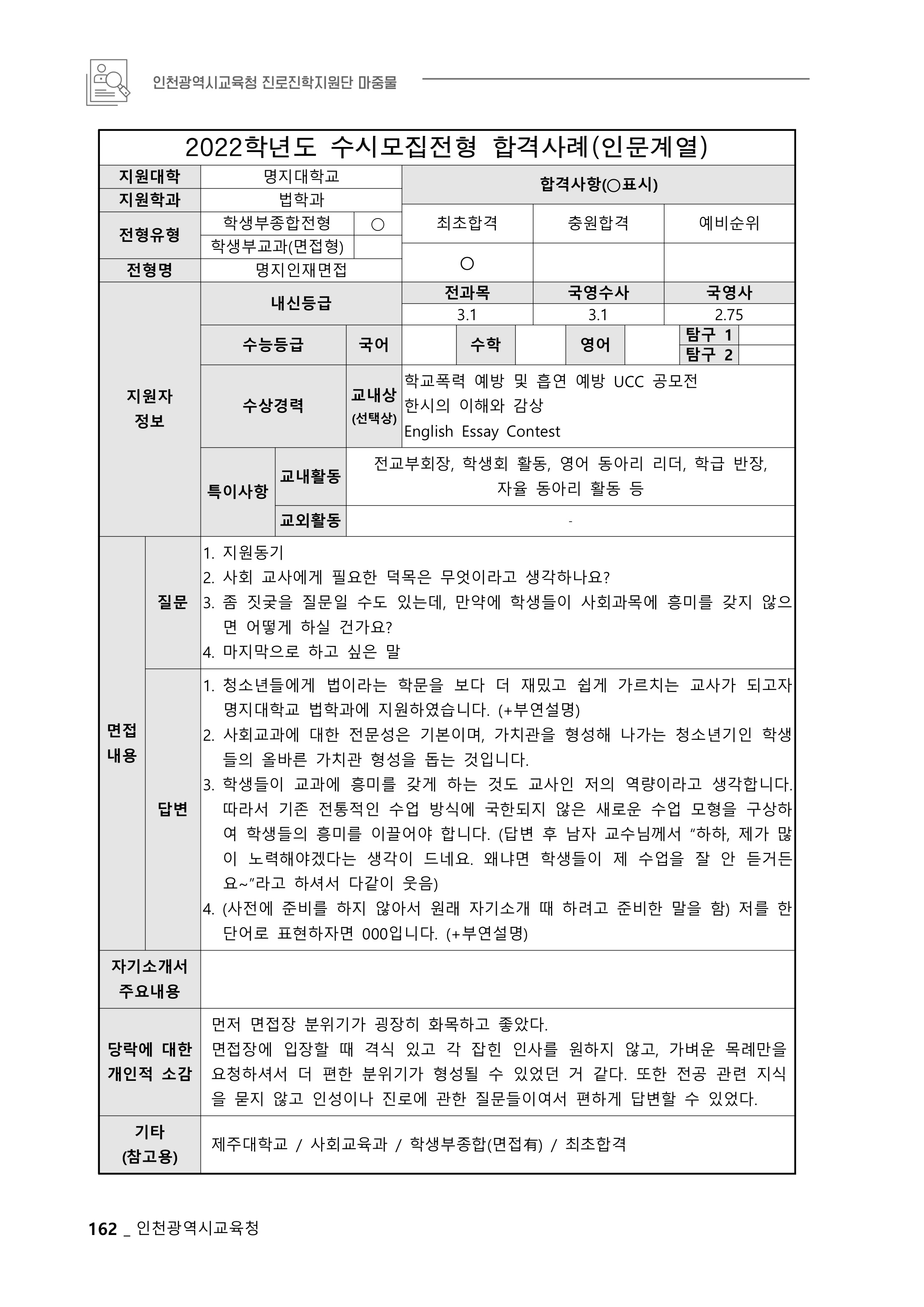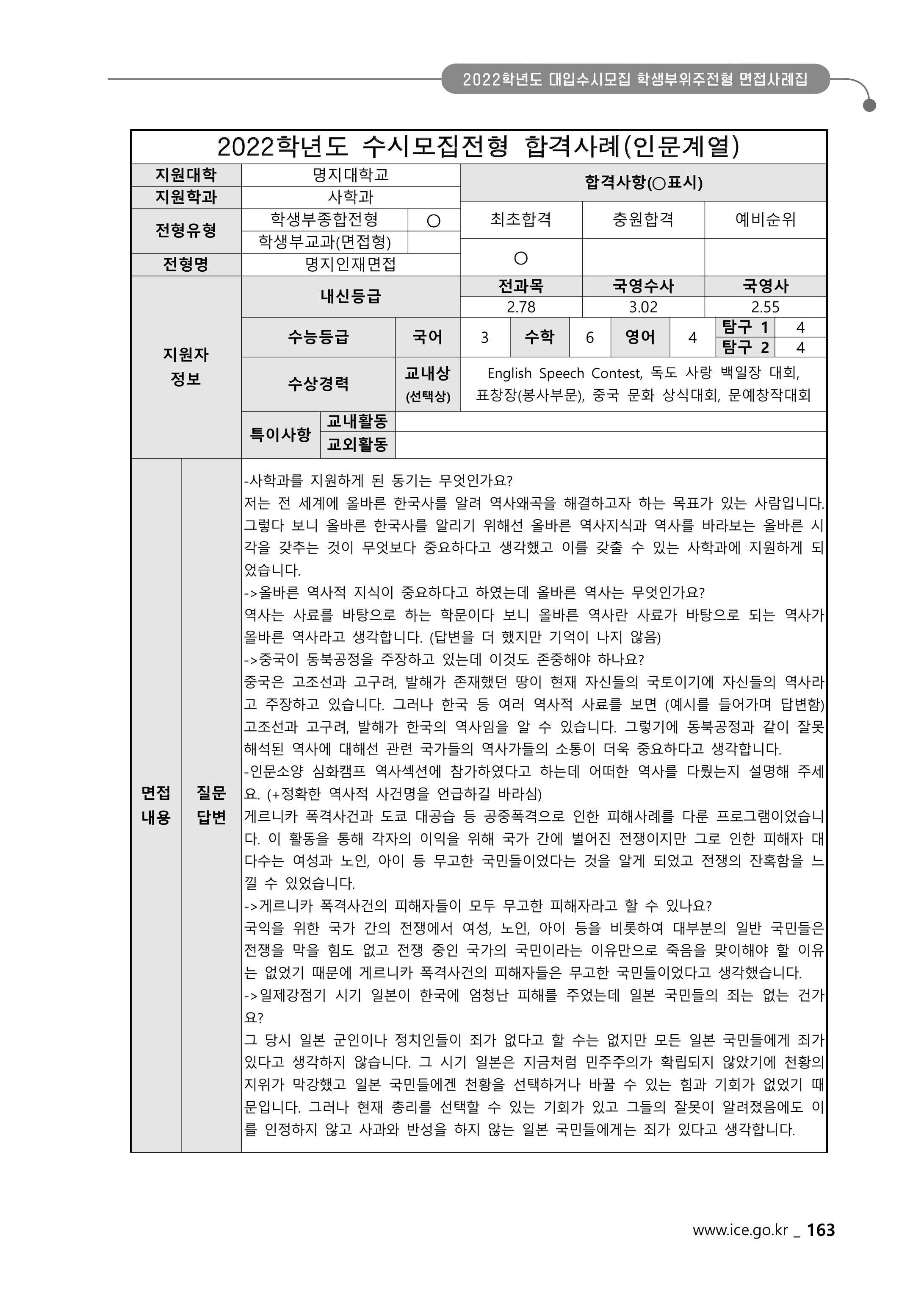 2022학년도 명지대학교 면접 후기12 - 사회과학대학
