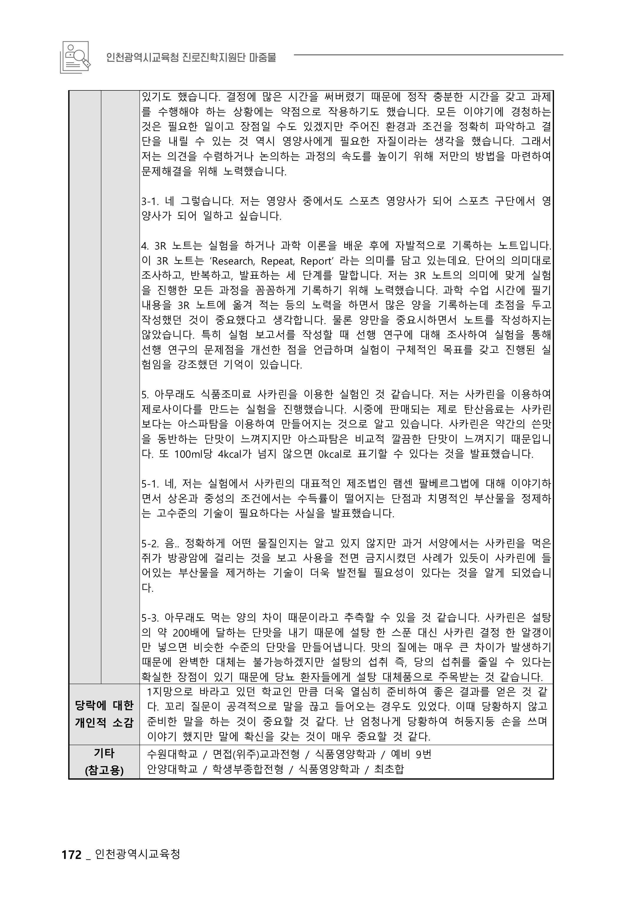 - 고등학교시절 어려움(슬럼프)에 대한 극복사례는?