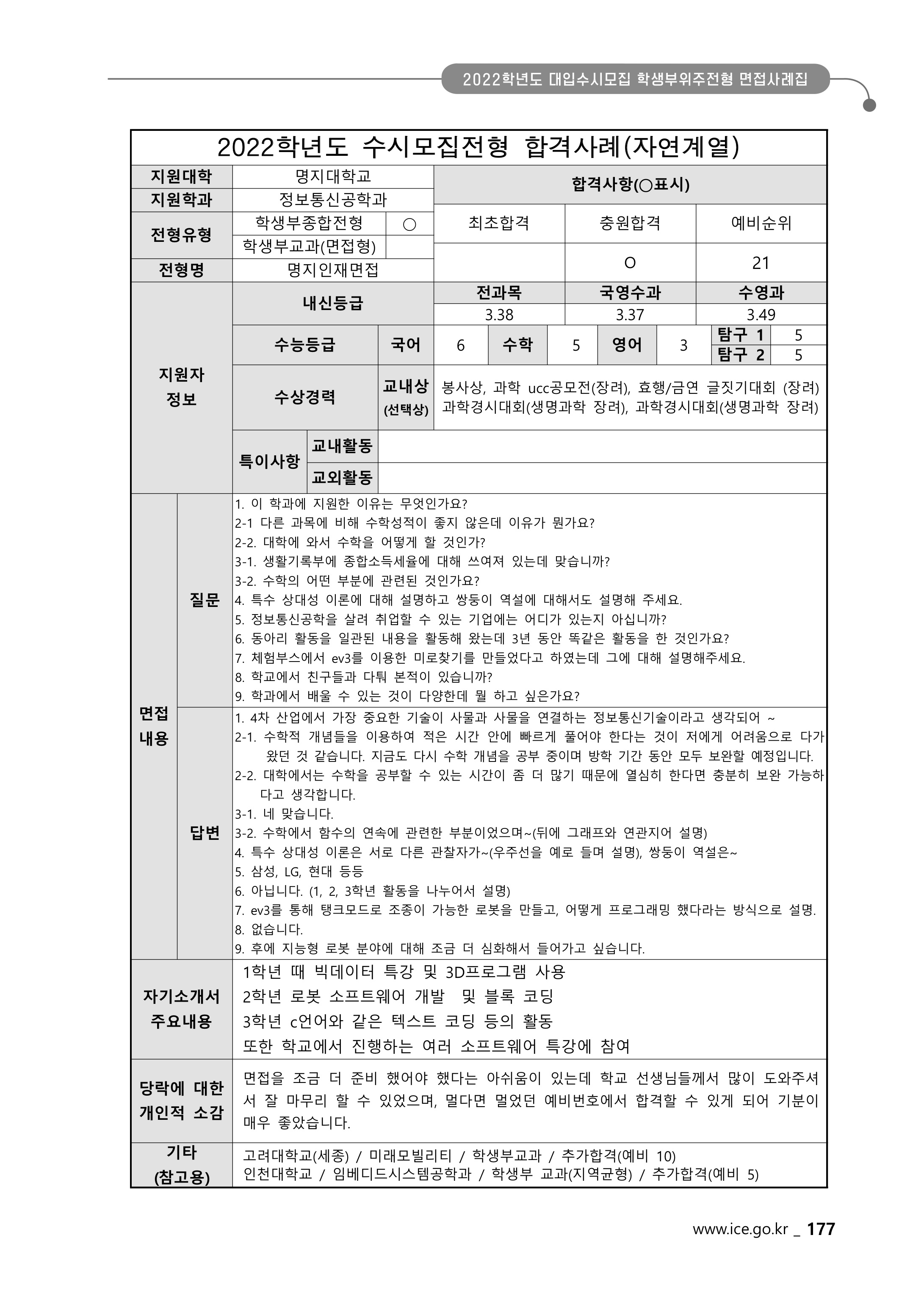 2022학년도 명지대학교 면접 질문입시 정보/면접 2022. 10. 14. 13:48