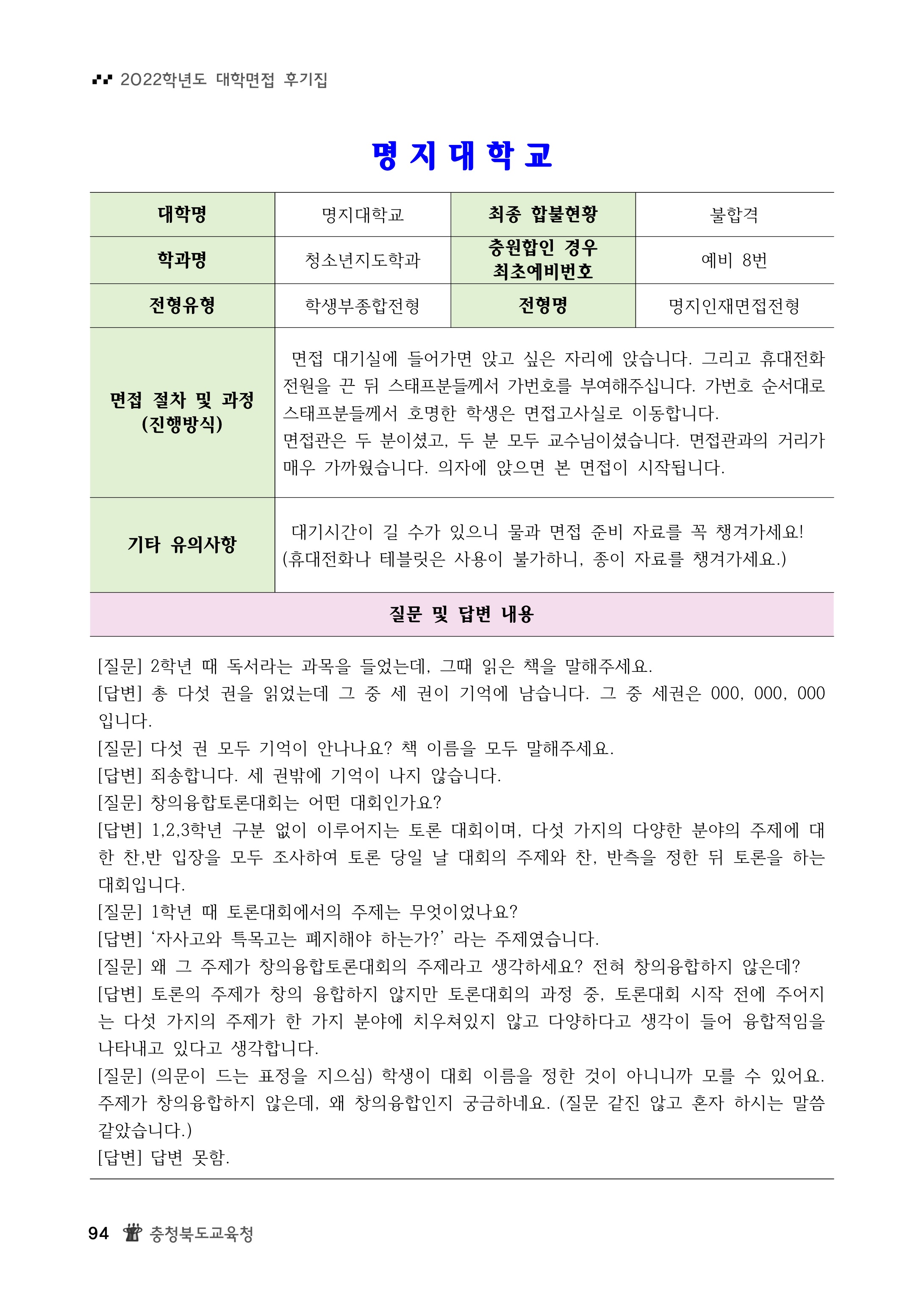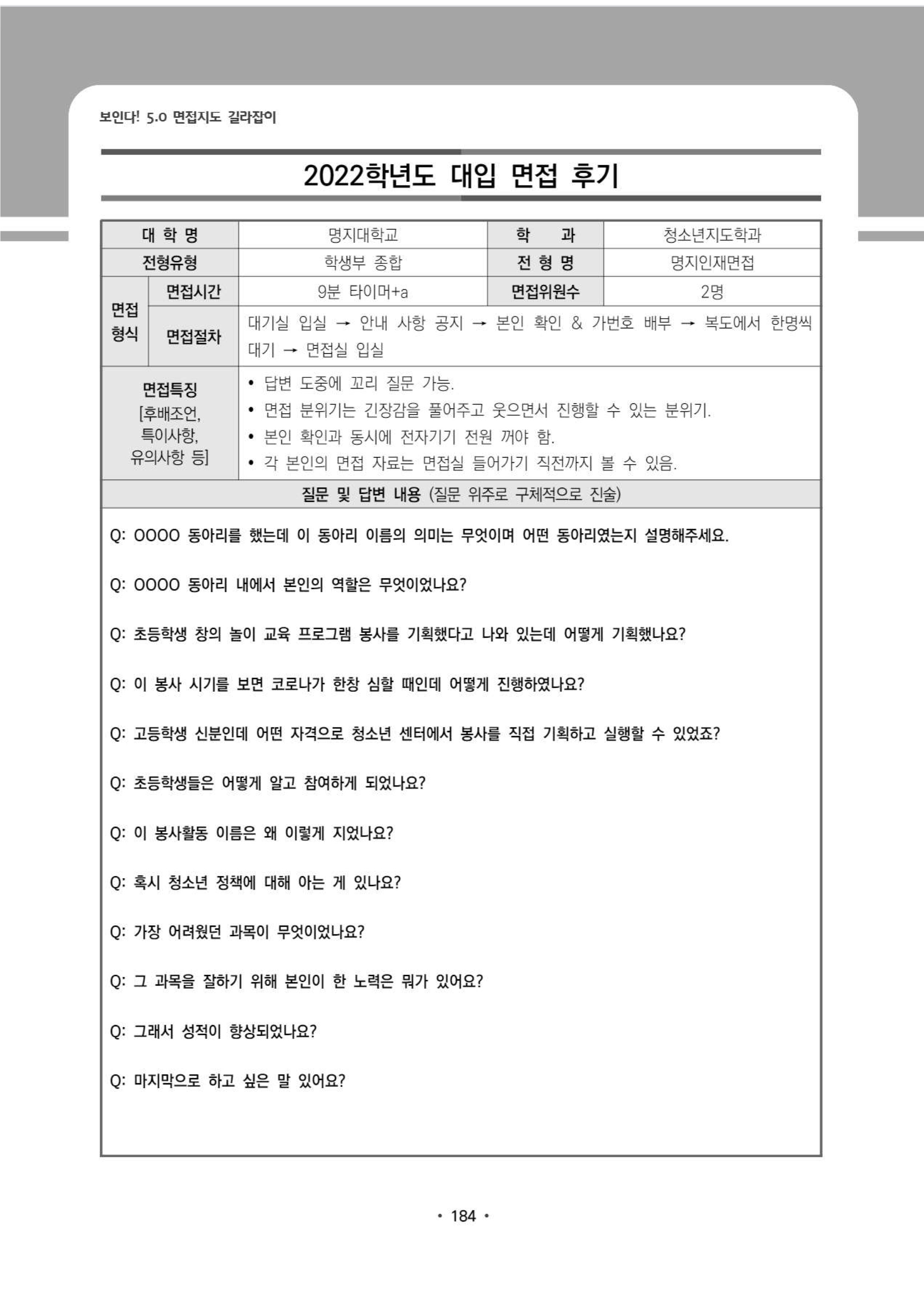 2022학년도 명지대학교 면접 후기29 - 청소년지도학과