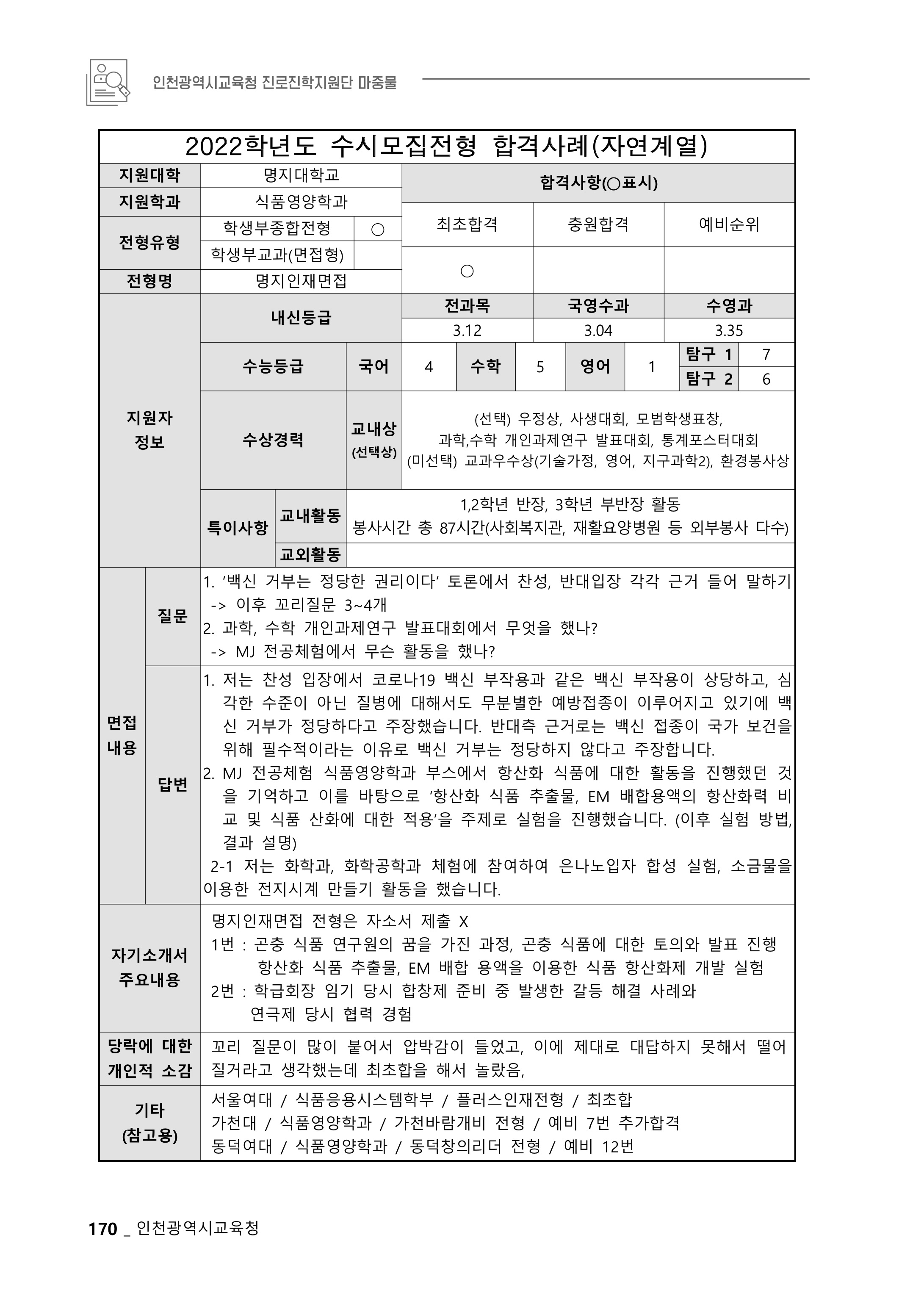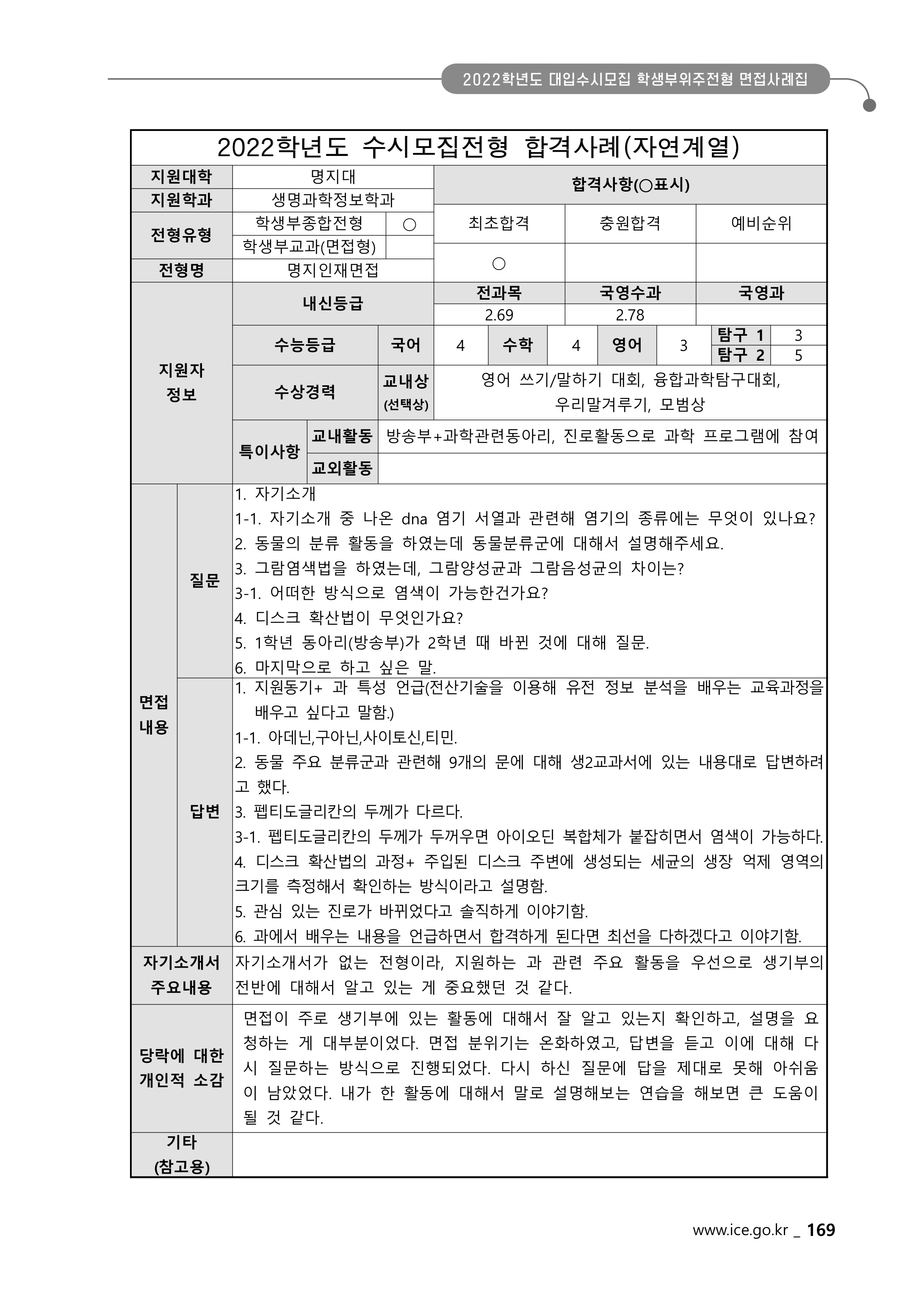 2022학년도 명지대학교 면접 후기17 - 식품영양학과