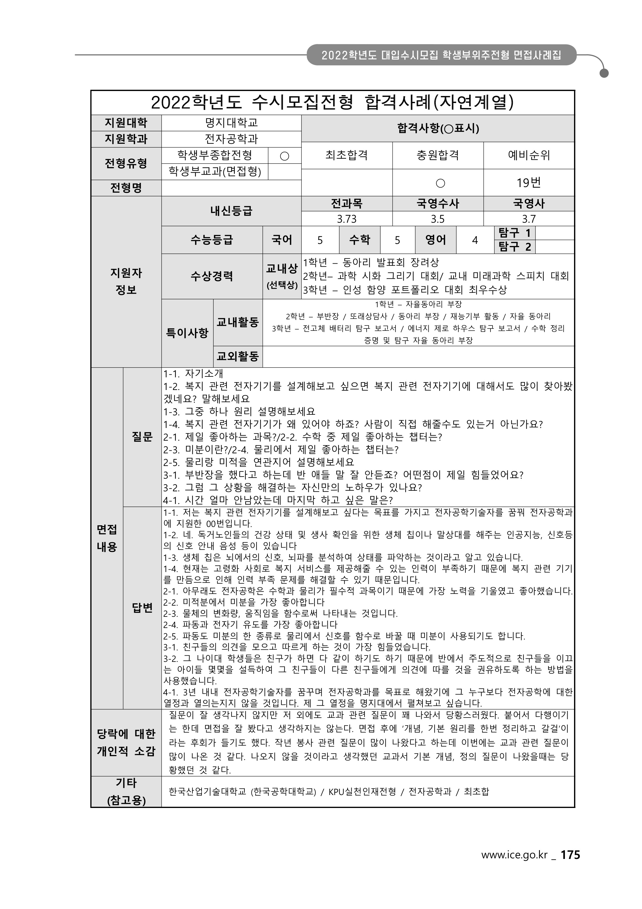 2022학년도 명지대학교 면접 후기23 - 전자공학과 2022학년도 명지대학교 면접 후기24 - 정보통신공학과