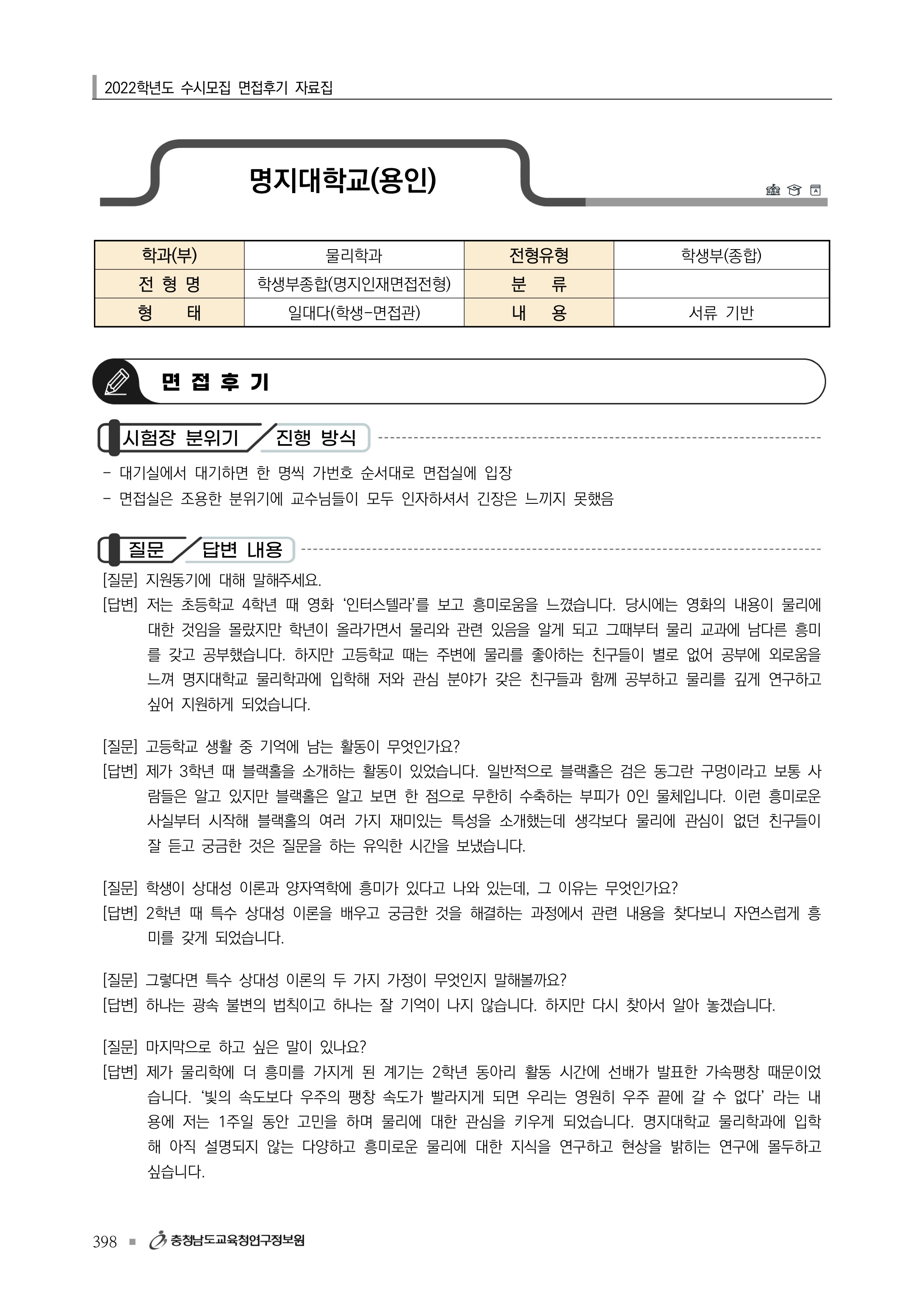 2022학년도 명지대학교 면접 후기7 - 물리학과