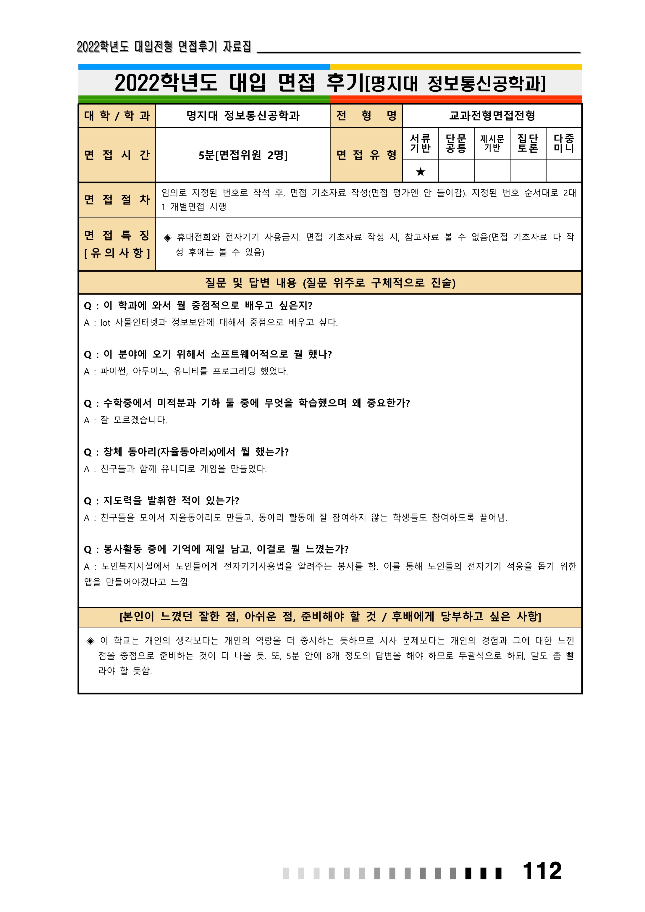 2022학년도 명지대학교 면접 후기25 - 정보통신공학과 2022학년도 명지대학교 면접 후기26 - 정치외교학과